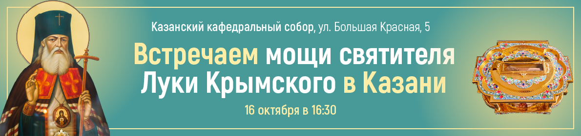 Вечером 16 октября, в канун праздника Собора Казанских святых, в кафедральный собор Казанской иконы Божией Матери в столице Татарстана был принесён ковчег с частицей мощей святителя Луки, архиепископа Симферопольского и Крымского.