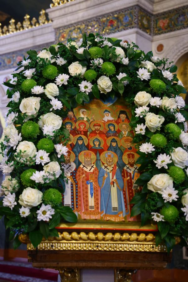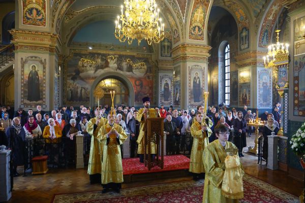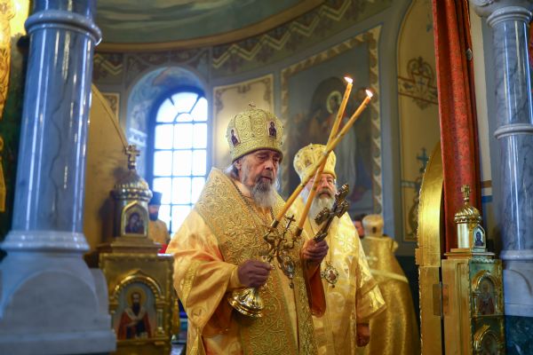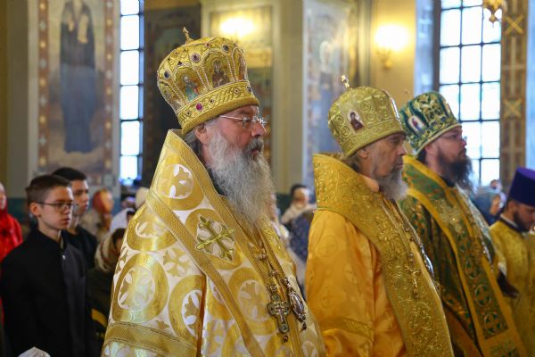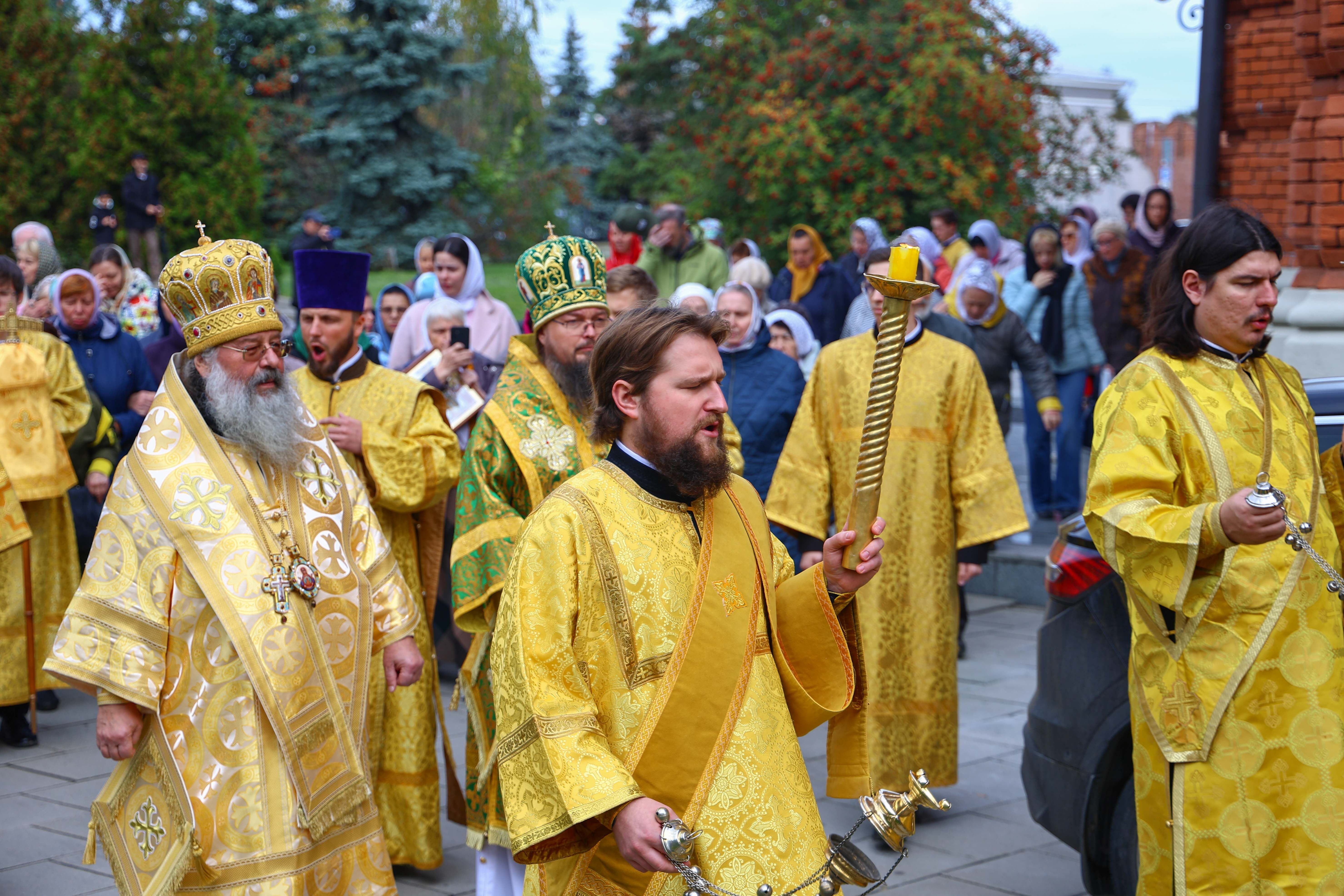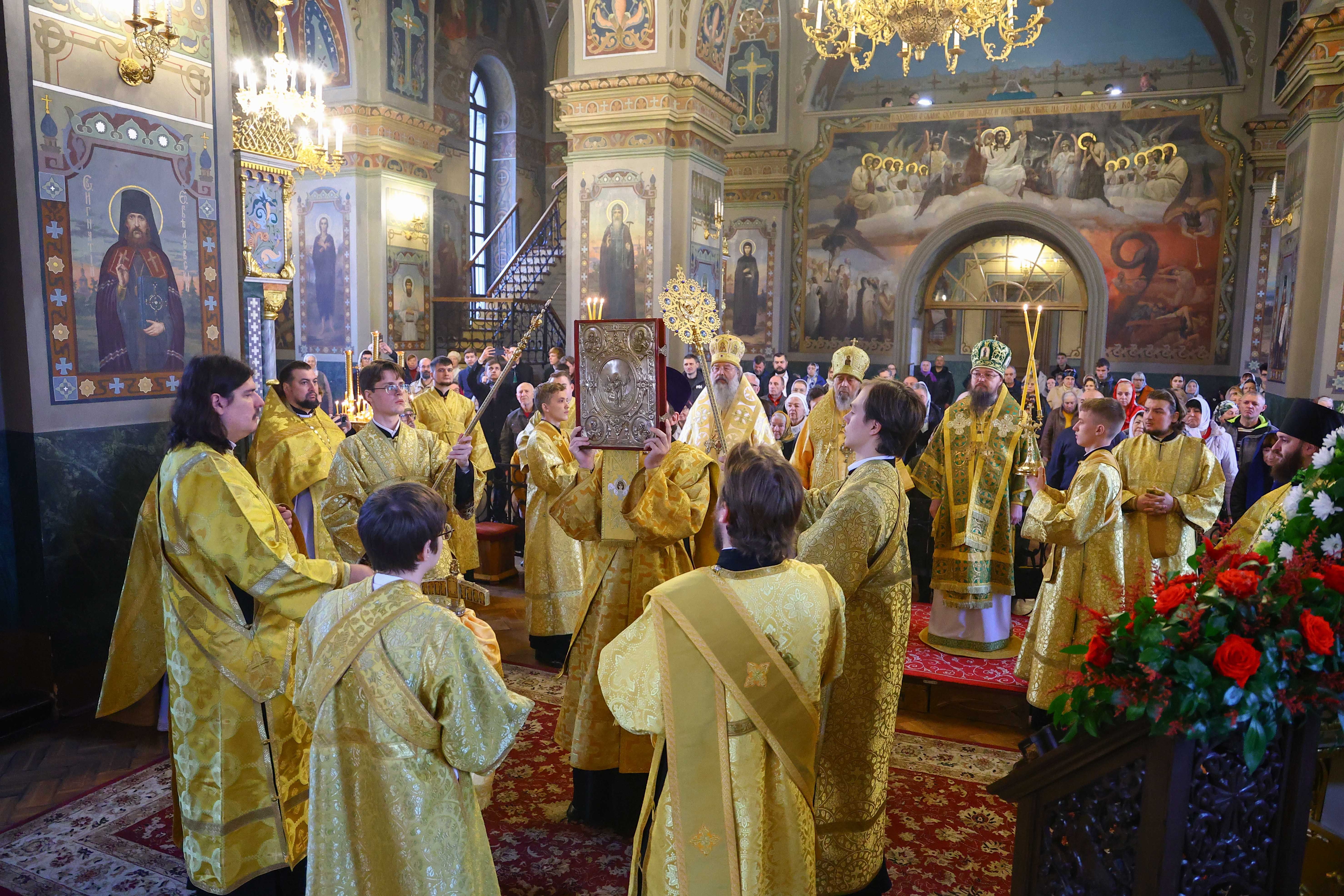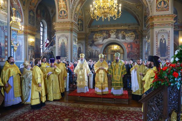 На мирной и сугубой ектениях были вознесены молитвенные прошения о Российском воинстве и о мире. В завершение богослужения состоялся праздничный крестный ход. После отпуста Литургии архипастыри и духовенство совершили славление всем святым, в земле Тульской просиявшим. Митрополит Алексий поздравил Преосвященных владык, духовенство и мирян с праздником и обратился с архипастырским словом.