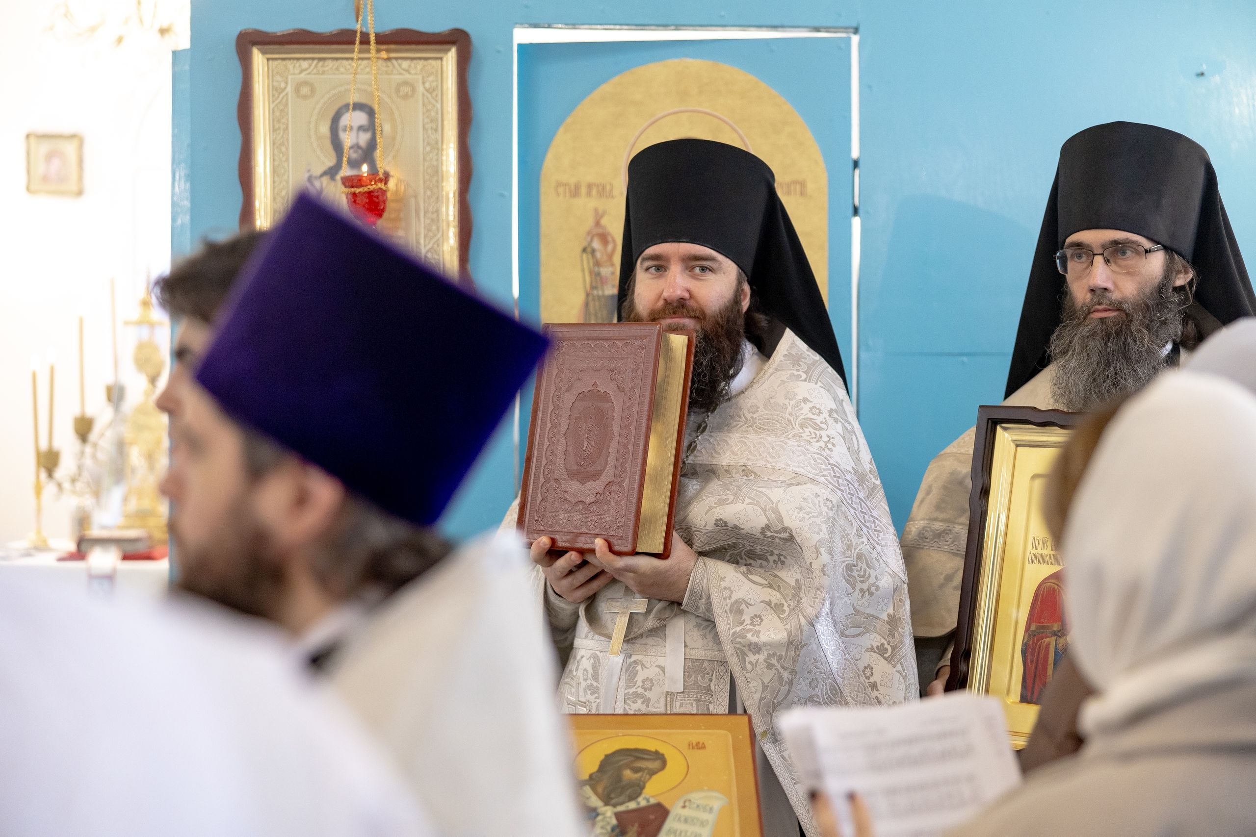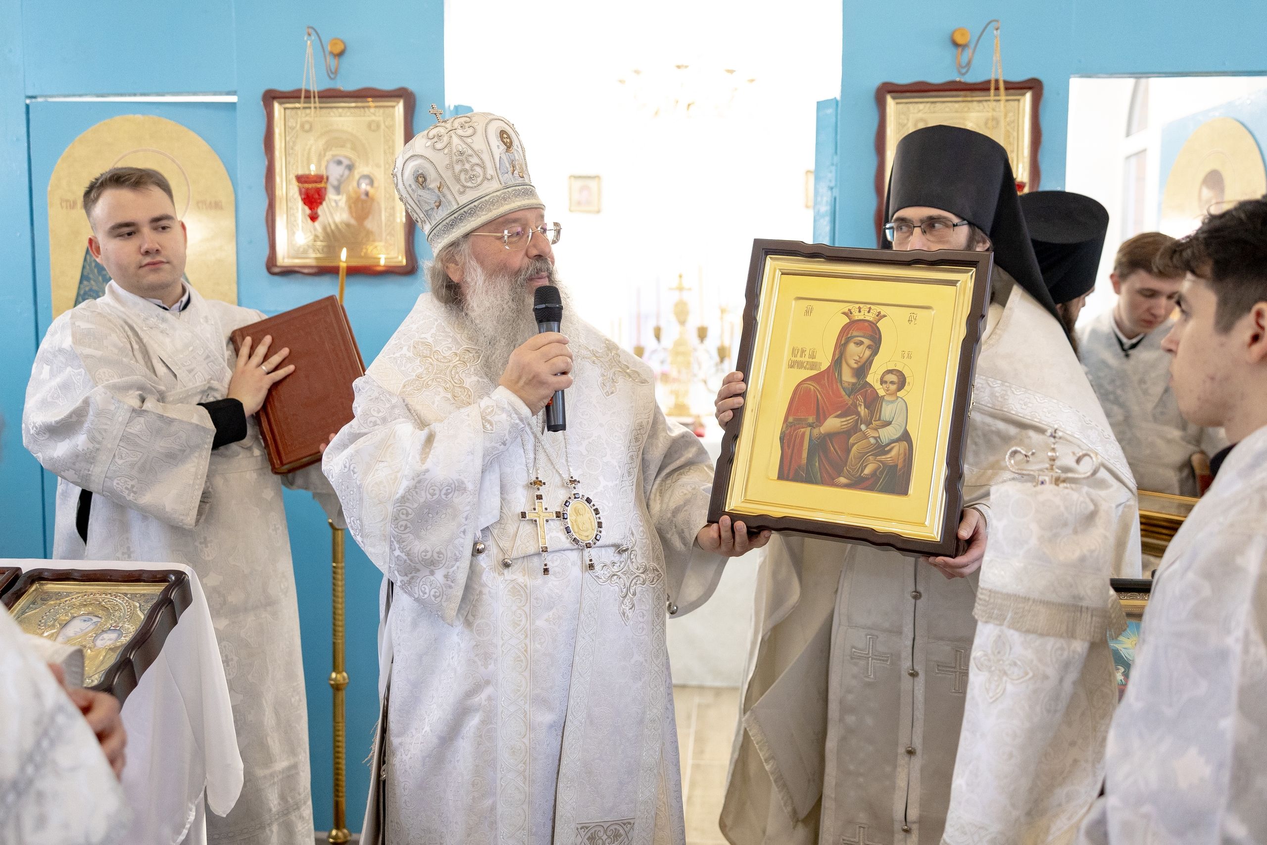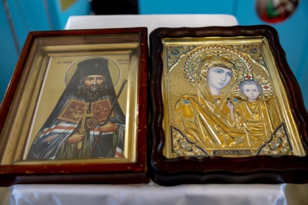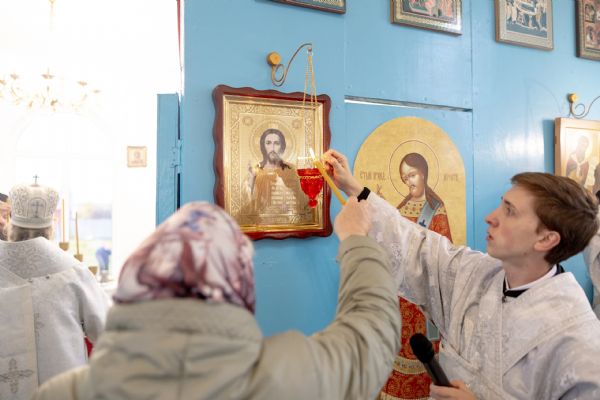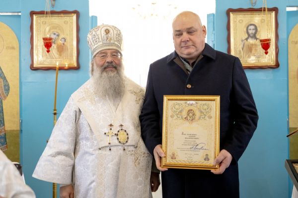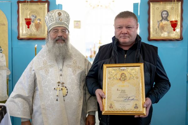 Митрополит Кирилл передал в храм одно из Евангелий, которые Святейший Патриарх Московский и всея Руси Кирилл в ходе Первосвятительского визита в Татарстанскую митрополию благословил раздать новым приходам. На молитвенную память владыка преподнёс приходу икону Божией Матери «Скоропослушница». Архипастырь пожелал, чтобы перед чтимым образом Царицы Небесной верующие сугубо молились о защитниках Отечества и о мире на нашей земле.