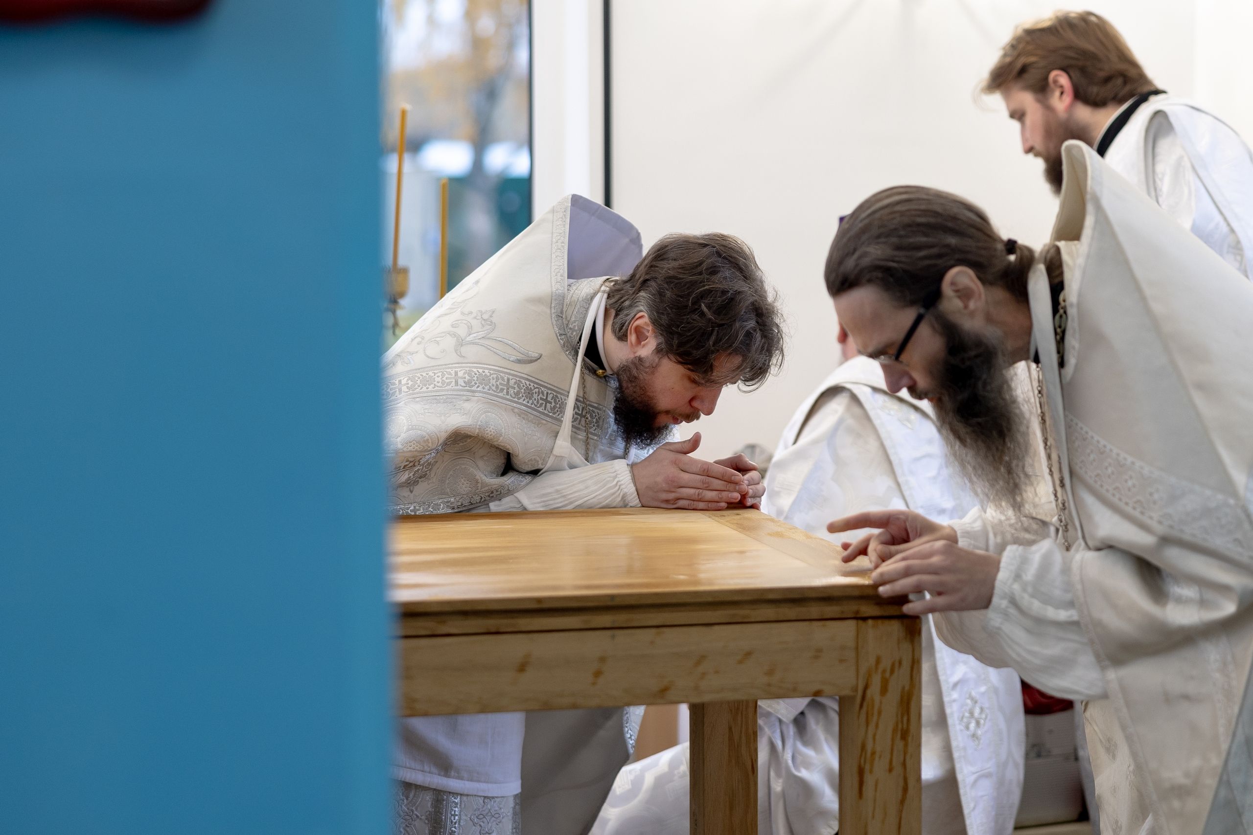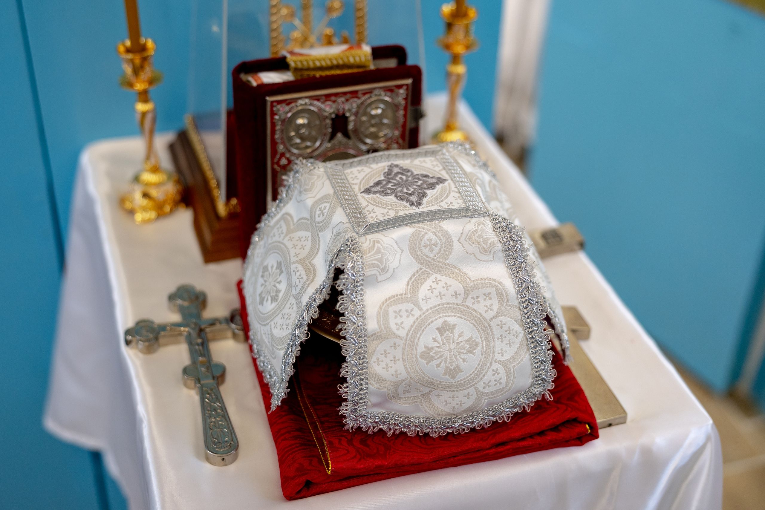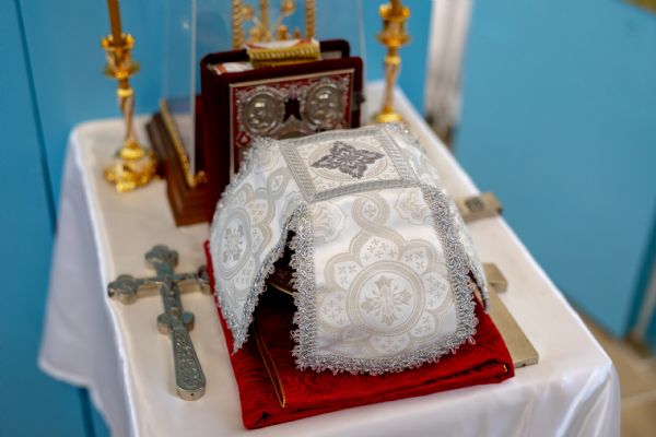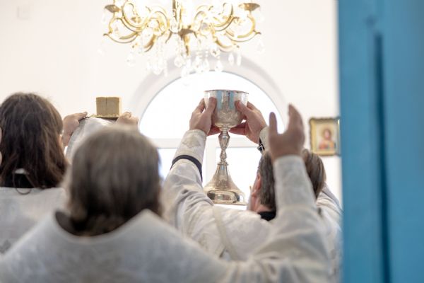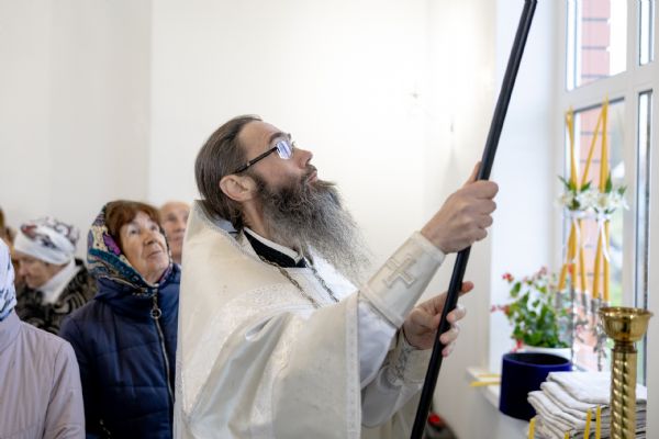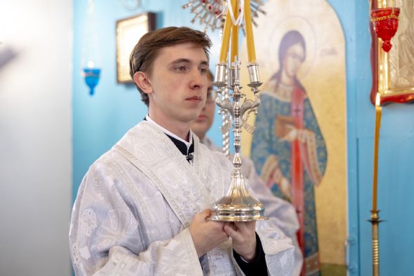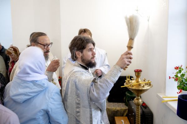 Митрополит Кирилл совершил в новоосвященном храме Божественную литургию. На мирной и сугубой ектениях были вознесены молитвы о Российском воинстве и о мире. По запричастном стихе проповедь произнёс игумен Алексий (Яцейко).