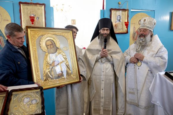 Затем верующих с праздником поздравил игумен Пимен (Ивентьев). Отец Пимен рассказал, что жизнь его семьи связана с селом Ульянково. Уроженкой села является его 90-летняя бабушка Мария, рождённая в день памяти преподобного Серафима Саровского, 1 августа 1935 года. В дар приходу от себя лично и от братии Кизического монастыря игумен Пимен передал образ преподобного Серафима Саровского.