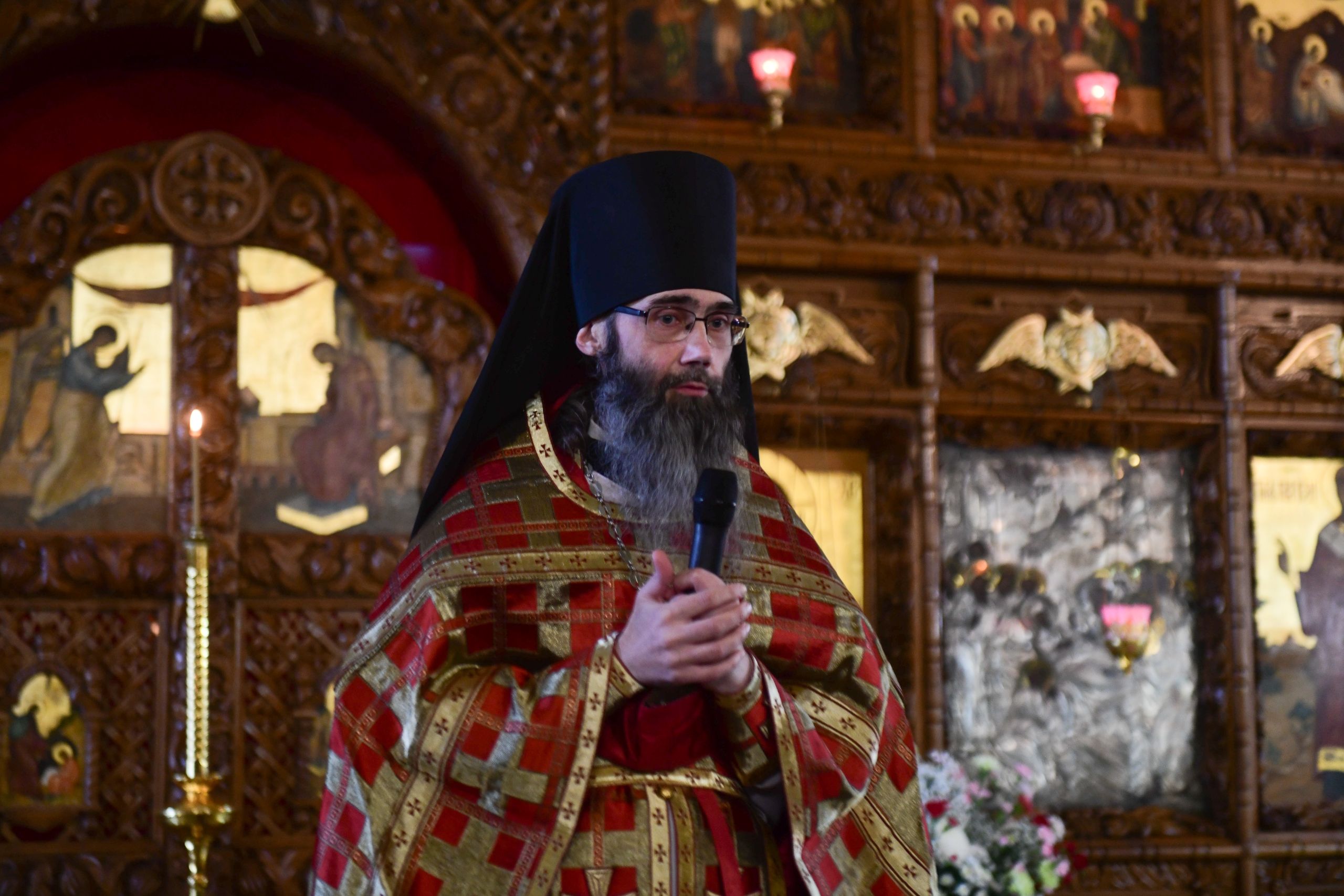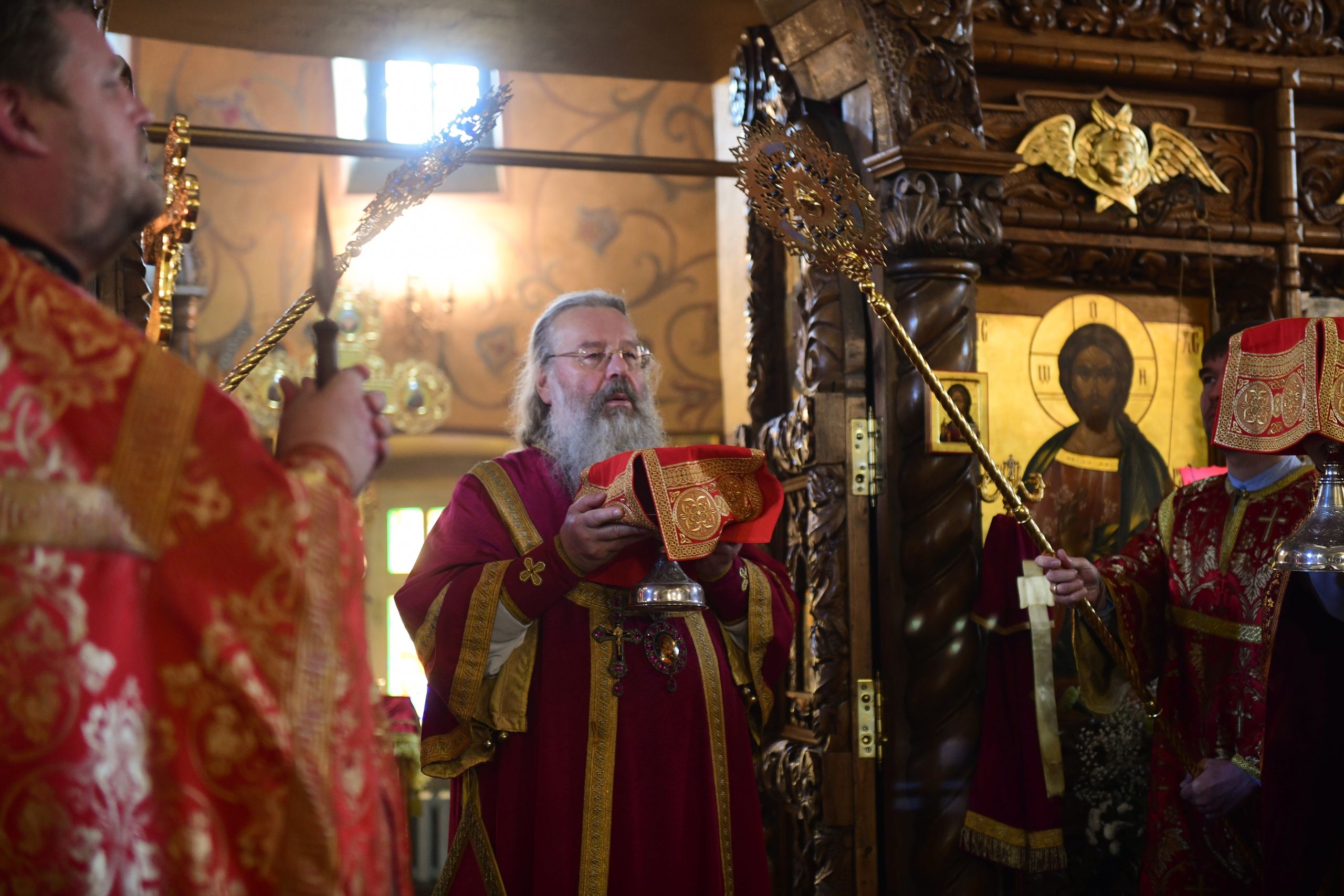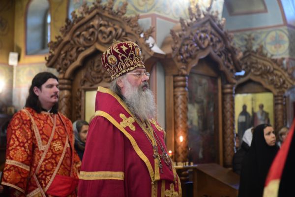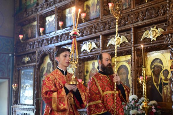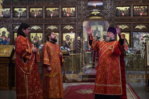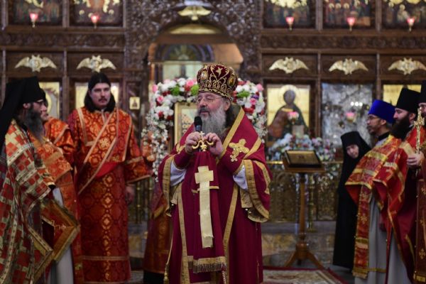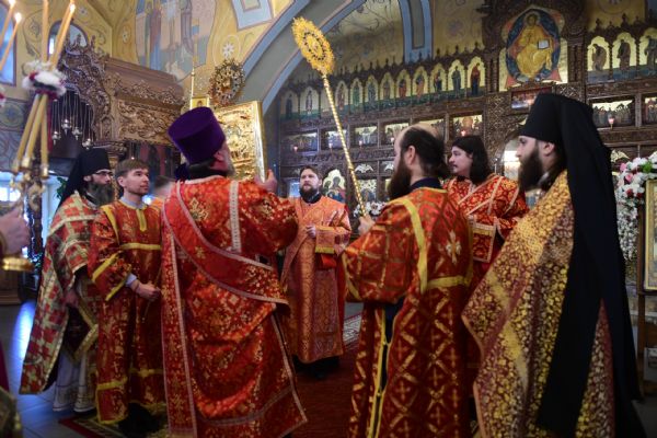 На мирной и сугубой ектениях были вознесены молитвы о мире и о Российском воинстве. По запричастном стихе проповедь произнёс игумен Пимен (Ивентьев). В завершение архипастырь, духовенство и верующие пропели величание чествуемым ныне мученикам Казанским.