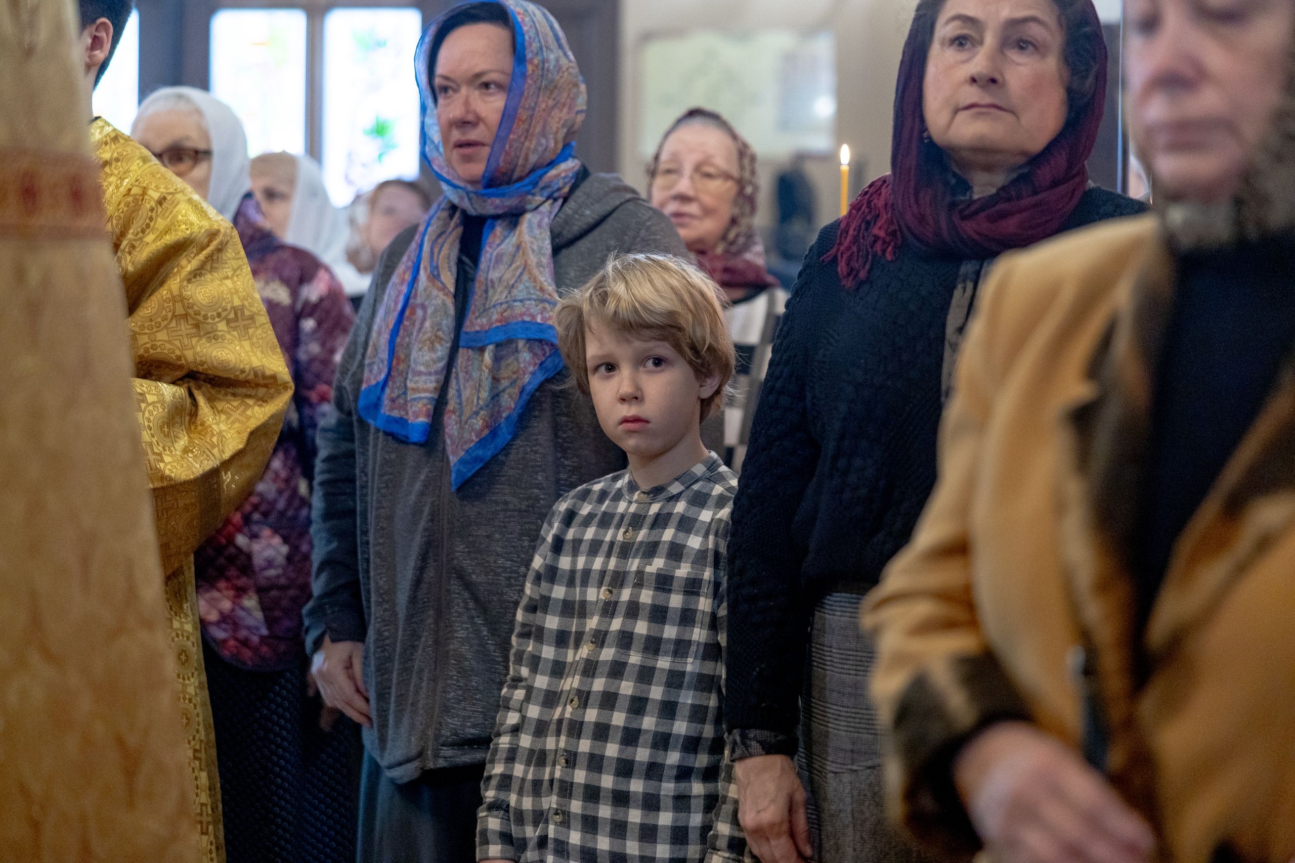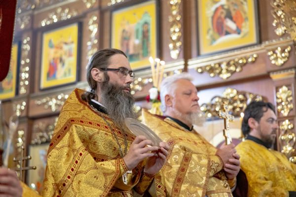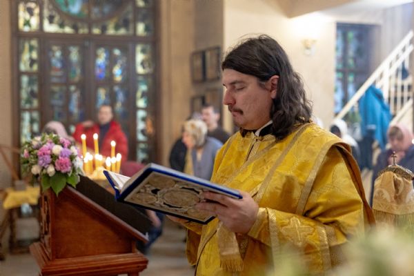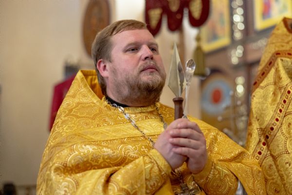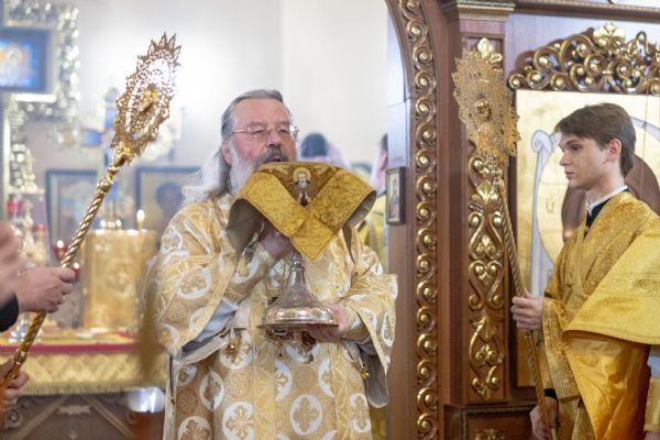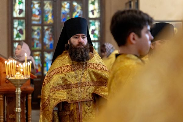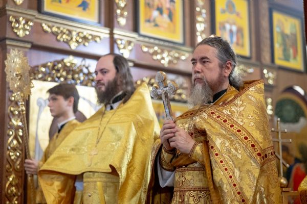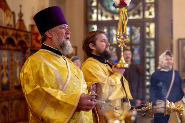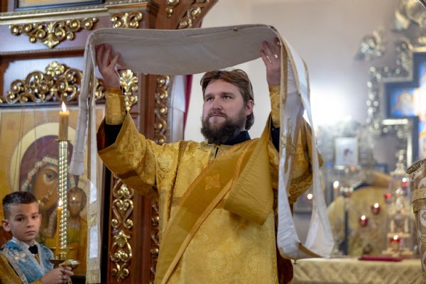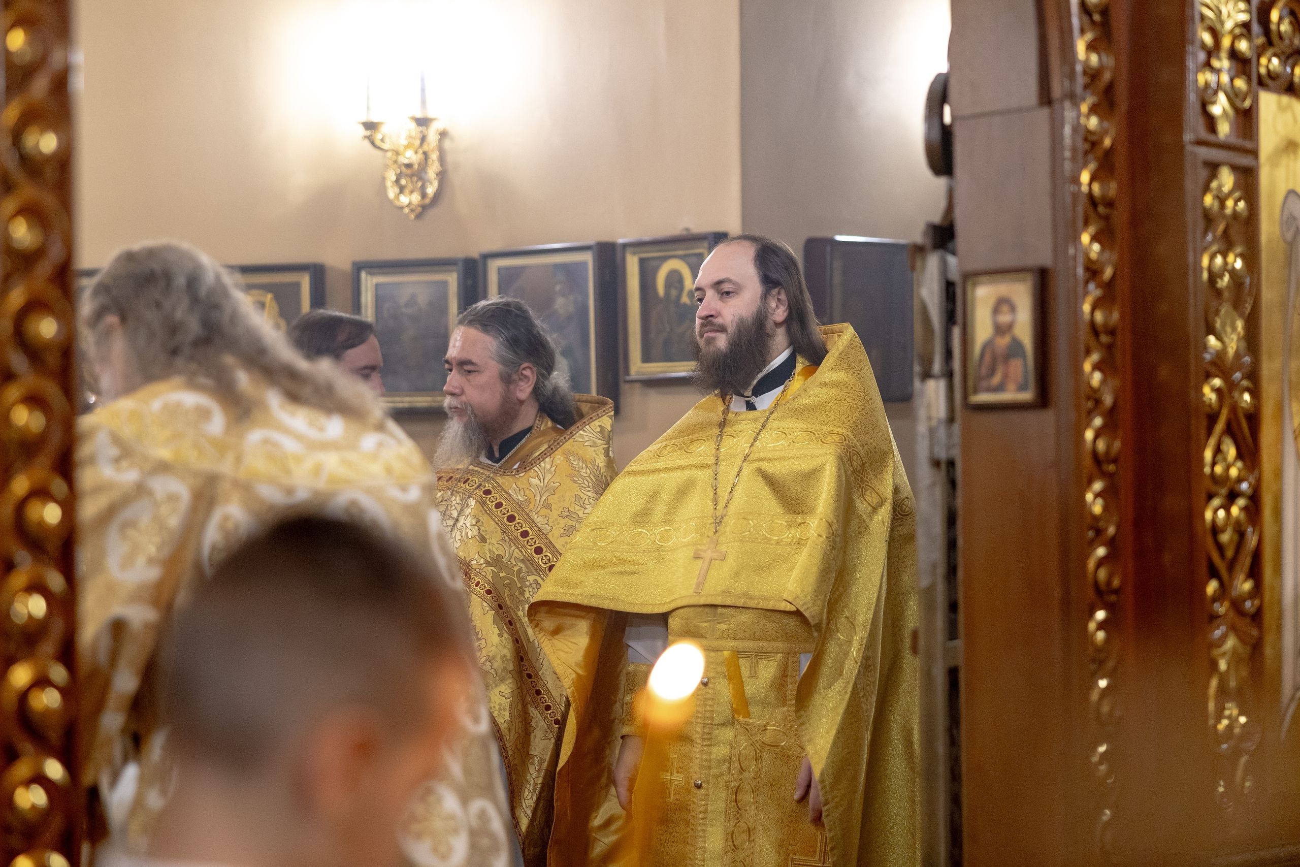 На мирной и сугубой ектениях были вознесены молитвы о Российском воинстве и о мире. По запричастном стихе проповедь произнёс протоиерей Владимир Самойленко.