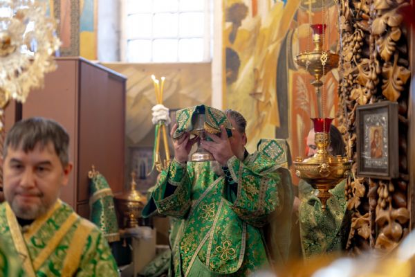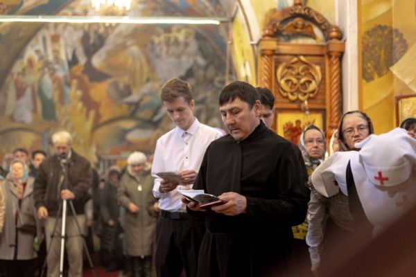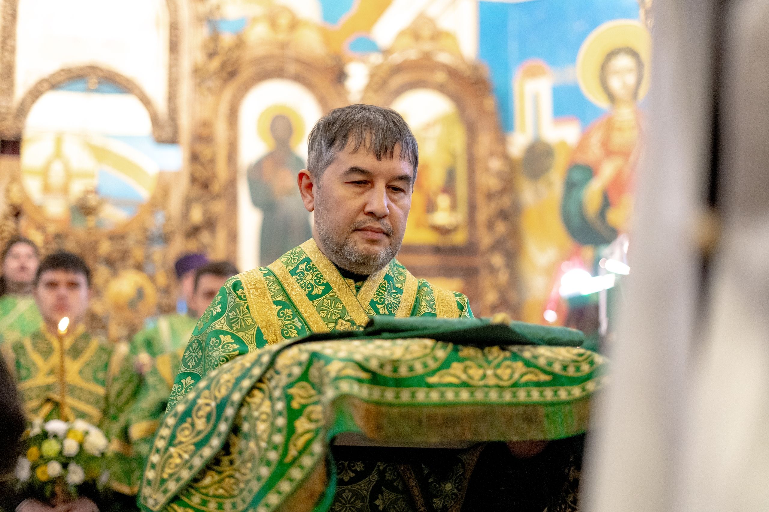 На мирной и сугубой ектениях были вознесены молитвы о Российском воинстве и о мире. Проповедь по запричастном стихе произнёс настоятель Петропавловского храма села Шильнебаш иерей Александр Миронов.