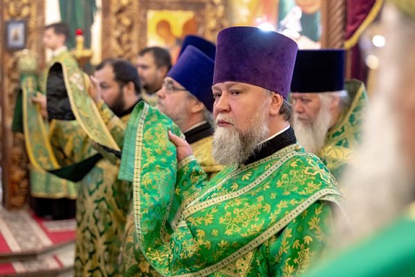Архипастырям сослужили секретарь Татарстанской митрополии иеромонах Кирилл (Корытко), секретарь Набережночелнинской епархии, настоятель храма протоиерей Андрей Лосык, благочинный Закамского церковного округа протоиерей Андрей Дубровин, благочинный Елабужского церковного округа иеромонах Кирилл (Забавнов), духовенство Набережночелнинской епархии.