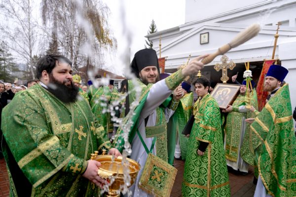 В завершение состоялся крестный ход вокруг храма. По окончании молитвенного шествия было освящено коливо и пропето славление чествуемым ныне угодникам Божиим.