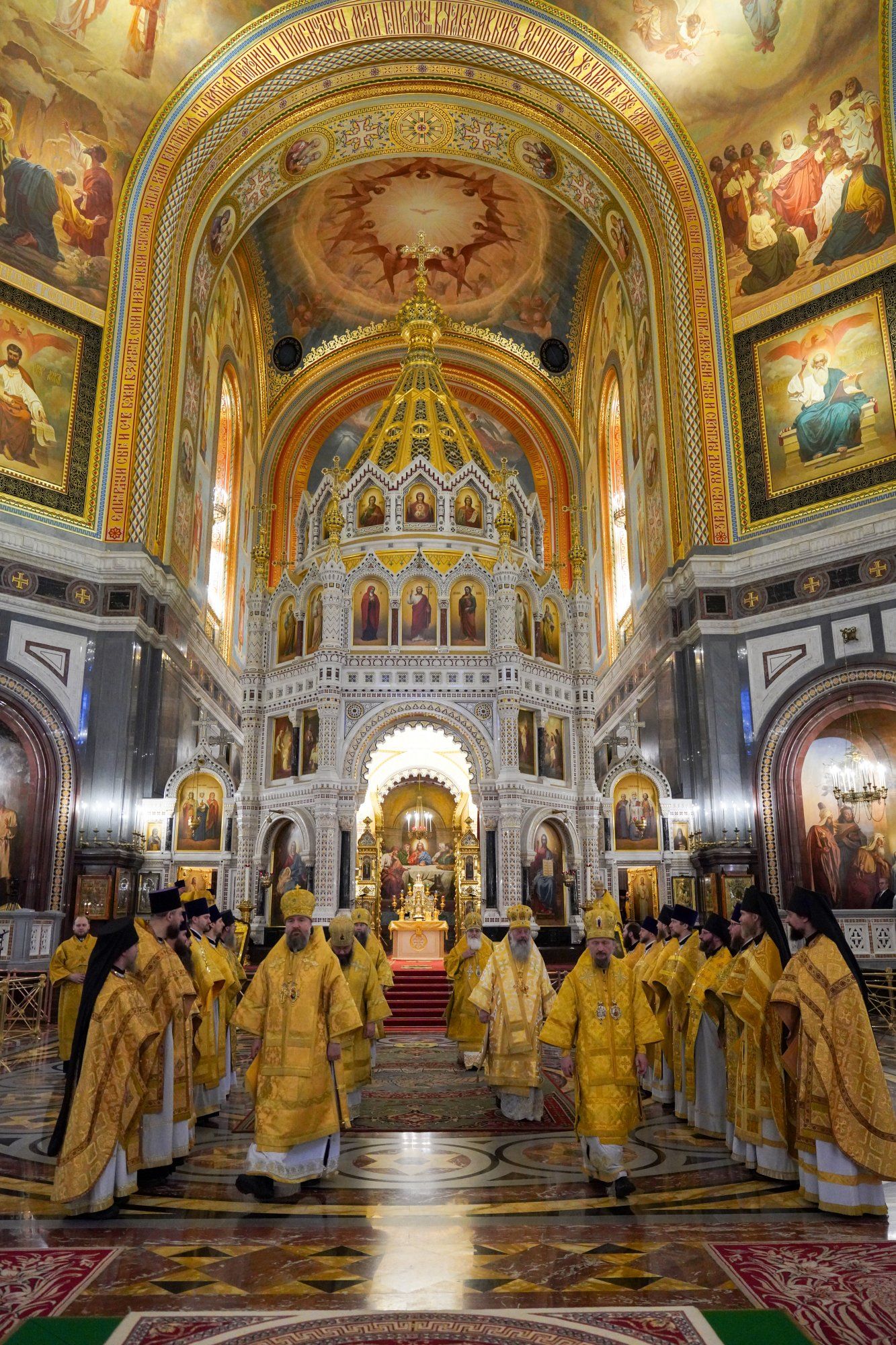 Его Святейшеству сослужили Патриарший Экзарх всея Беларуси митрополит Минский и Заславский Вениамин, первый викарий Святейшего Патриарха Московского и всея Руси по городу Москве митрополит Воскресенский Григорий, митрополит Казанский и Татарстанский Кирилл, митрополит Псковский и Порховский Матфей, епископ Тихвинский и Лодейнопольский Мстислав, епископ Сергиево-Посадский и Дмитровский Кирилл, викарий Святейшего Патриарха епископ Раменский Алексий, викарий Святейшего Патриарха епископ Егорьевский Мефодий, а также ключарь Храма Христа Спасителя протоиерей Михаил Рязанцев, клирик Храма Христа Спасителя протоиерей Андрей Марущак, наместник Святогорского Свято-Успенского монастыря в Пушкинских горах (Псковская митрополия) игумен Василий (Бурков), благочинный монастырей Гомельской епархии Белорусского экзархата игумен Феодорит (Золотарев), помощник управляющего делами Московской Патриархии иеромонах Мисаил (Сарафанов), столичное духовенство, клирики ряда епархий Русской Православной Церкви.