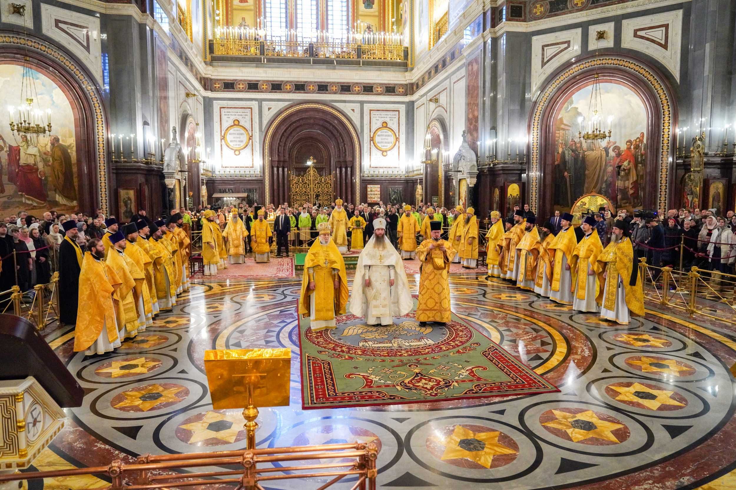 Богослужебные песнопения исполнил Патриарший хор Храма Христа Спасителя (регент — И.Б. Толкачев).