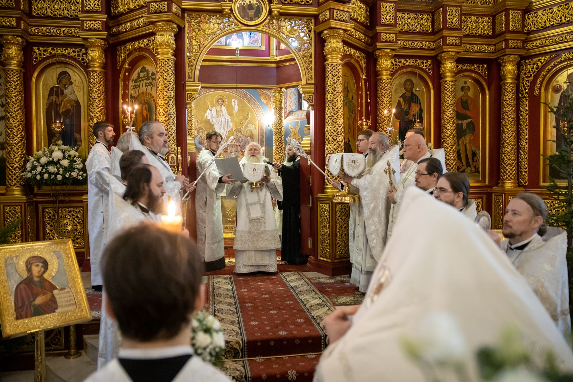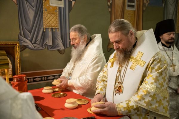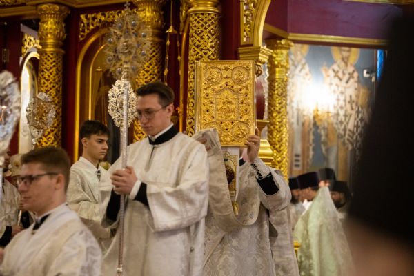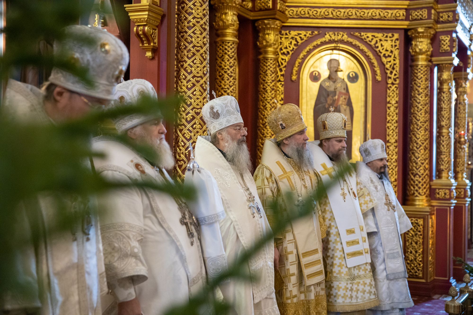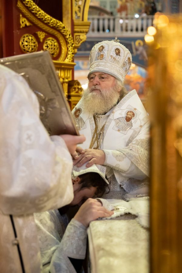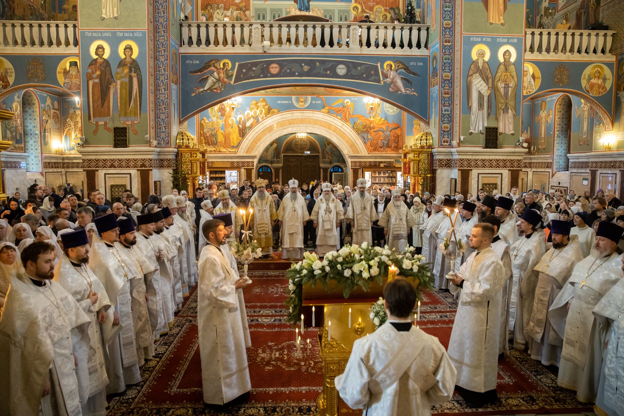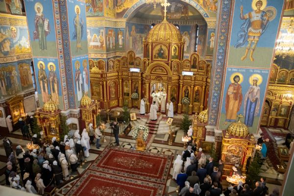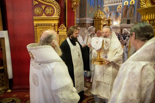 Божественную литургию совершили митрополит Ханты-Мансийский и Сургутский Павел, митрополит Казанский и Татарстанский Кирилл, митрополит Сингапурский и Юго-Восточно-Азиатский Сергий, митрополит Екатеринбургский и Верхотурский Евгений, архиепископ Салехардский и Ново-Уренгойский Николай, епископ Тихвинский и Лодейнопольский Мстислав, епископ Югорский и Няганский Михаил.