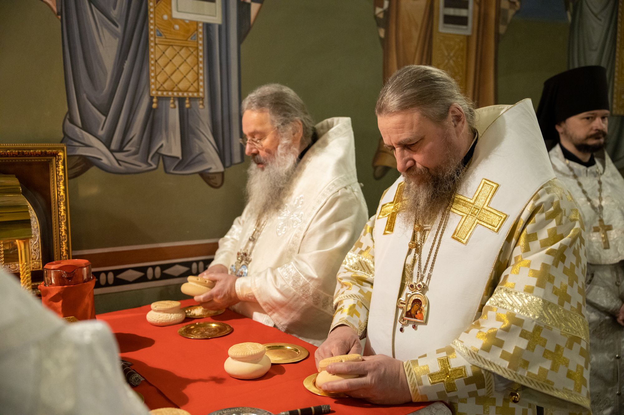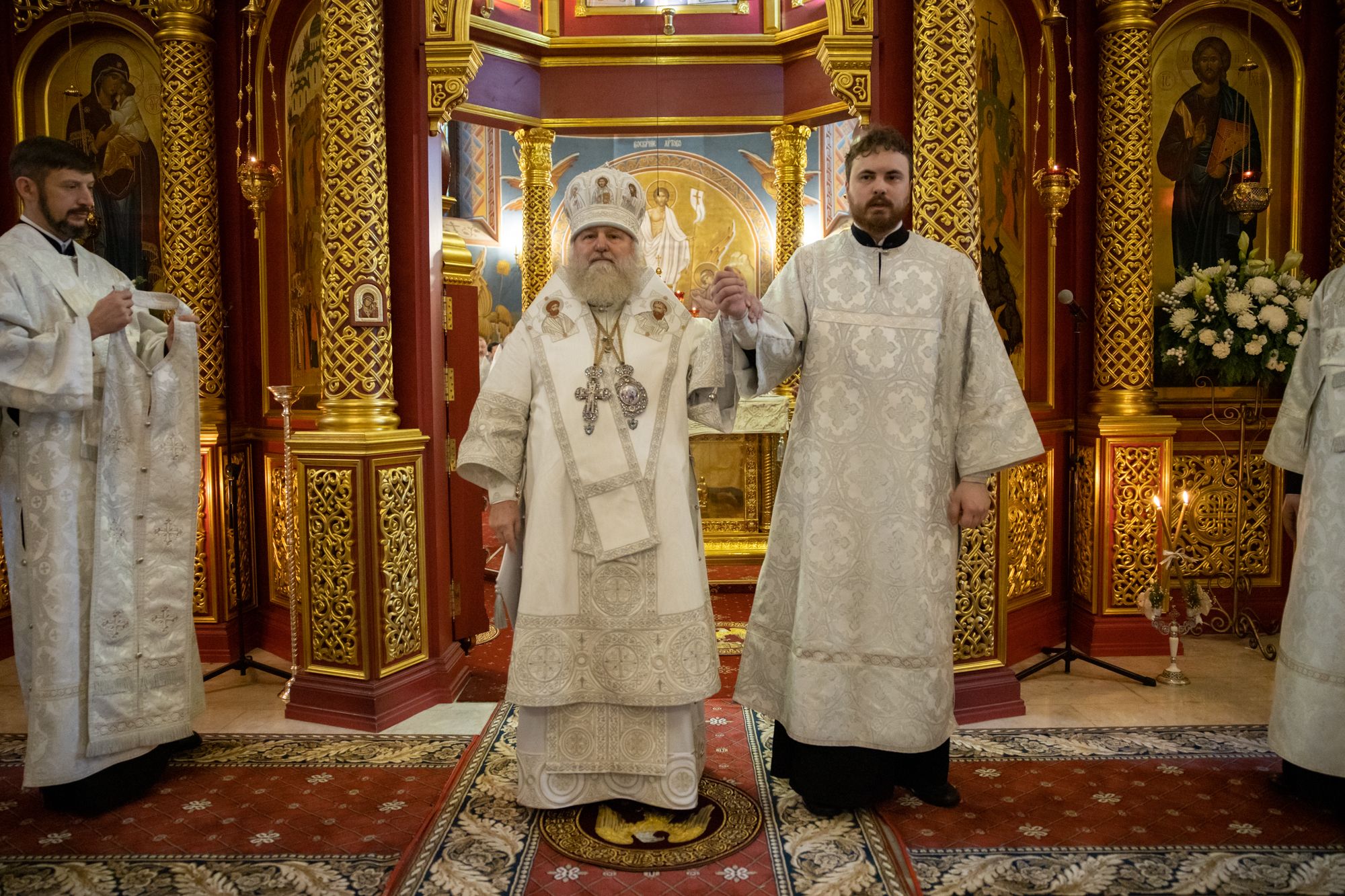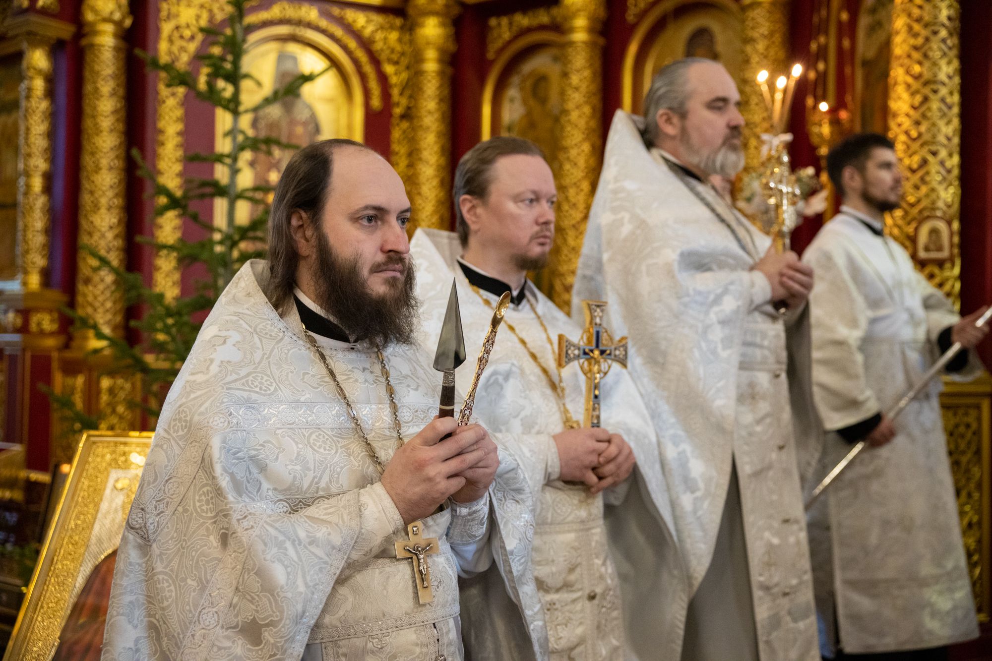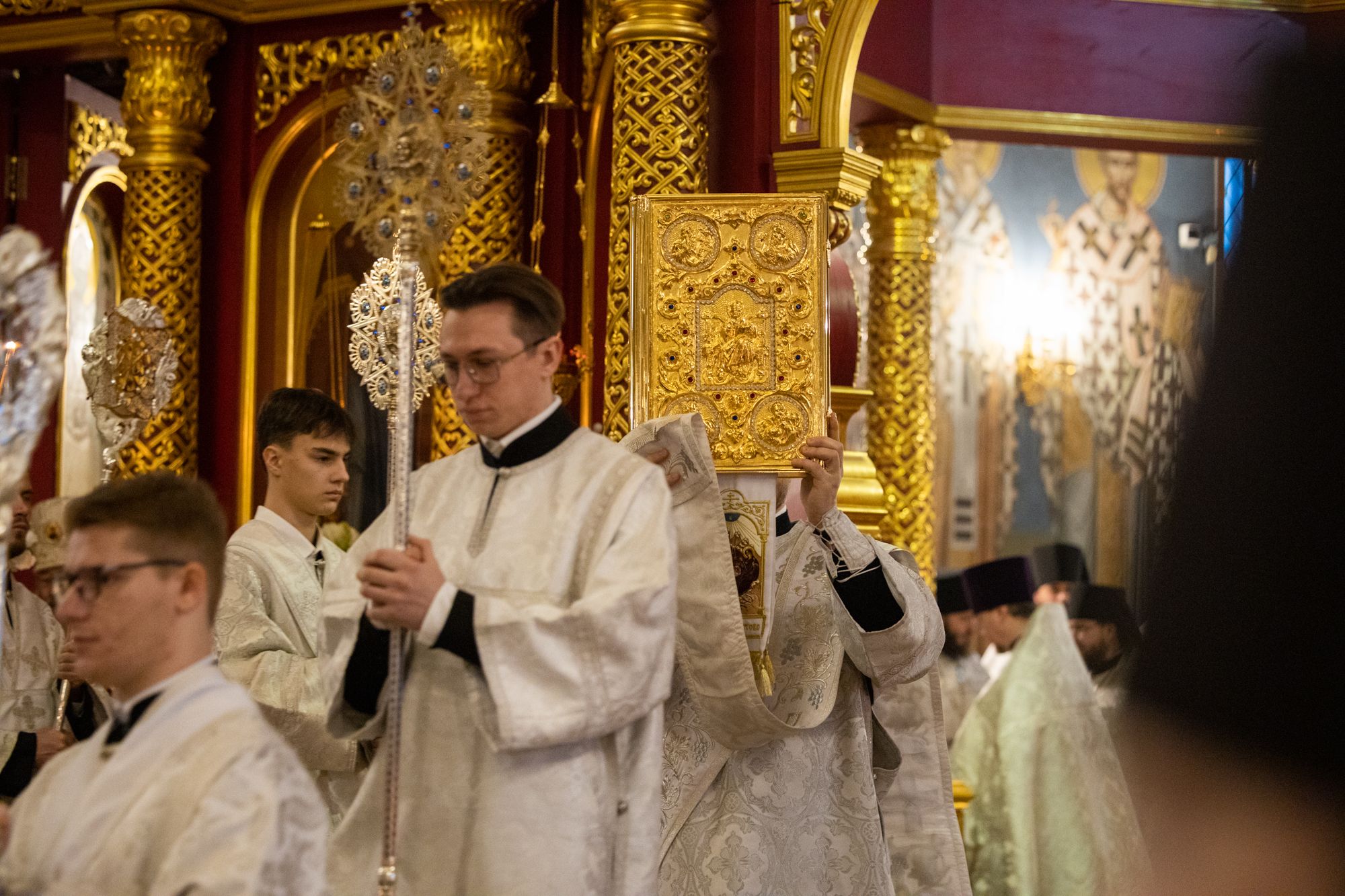 Божественную литургию совершили митрополит Ханты-Мансийский и Сургутский Павел, митрополит Казанский и Татарстанский Кирилл, митрополит Сингапурский и Юго-Восточно-Азиатский Сергий, митрополит Екатеринбургский и Верхотурский Евгений, архиепископ Салехардский и Ново-Уренгойский Николай, епископ Тихвинский и Лодейнопольский Мстислав, епископ Югорский и Няганский Михаил.