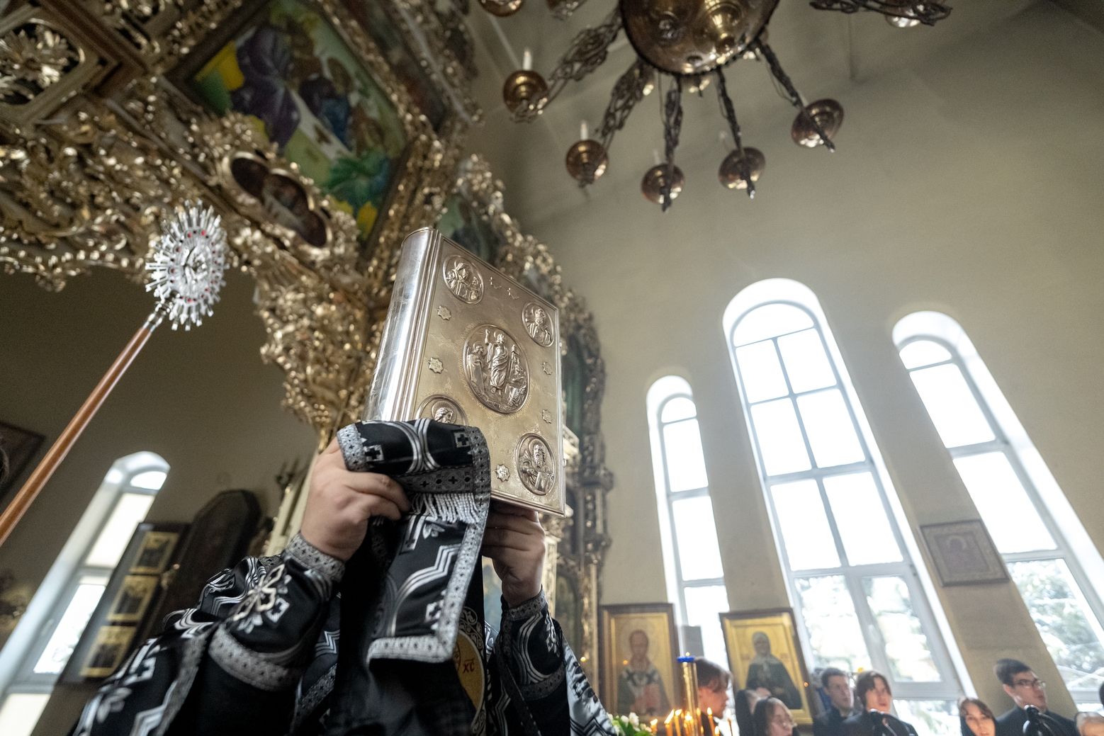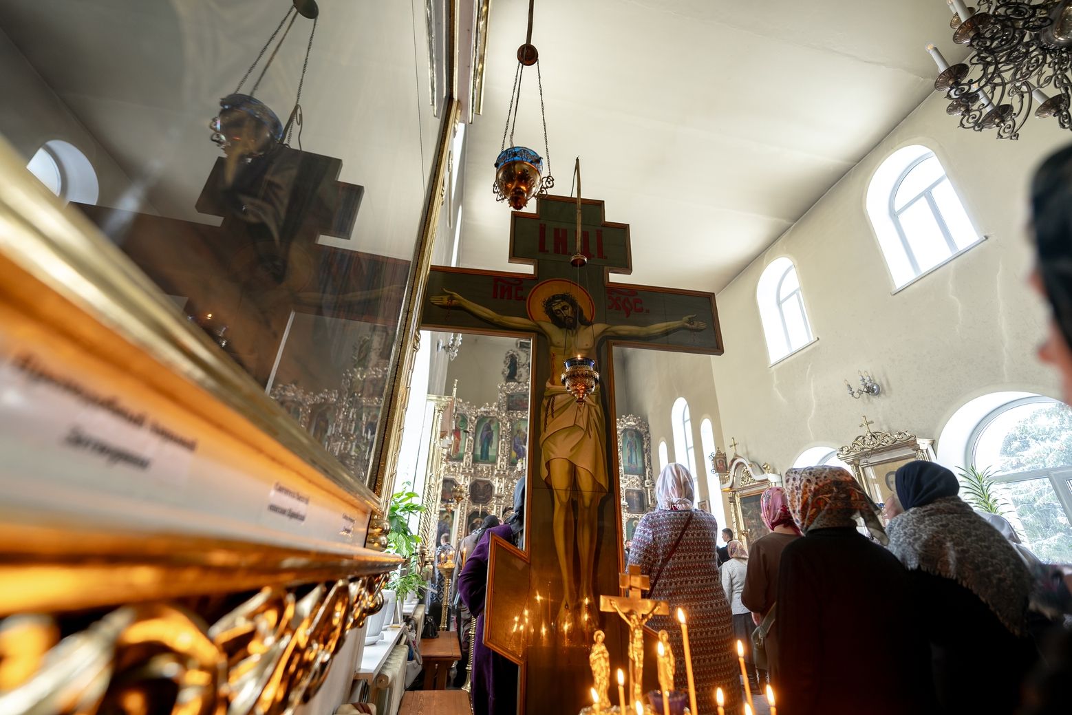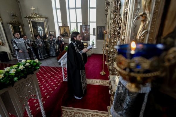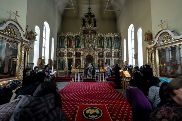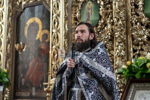 На мирной и сугубой ектениях были вознесены молитвенные прошения о Российском воинстве и молитва о мире. По запричастном стихе проповедь произнёс иерей Иоанн Куликов.