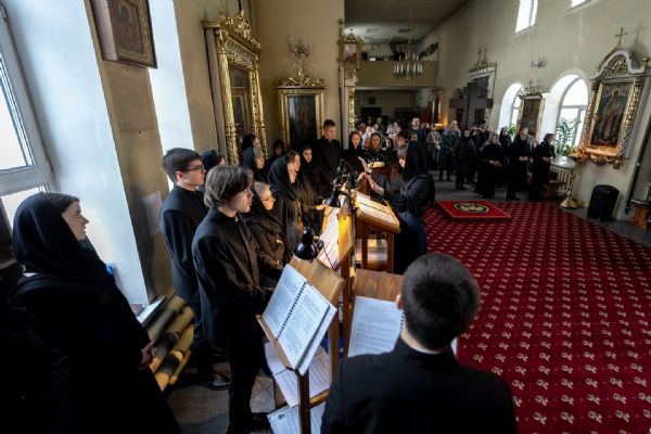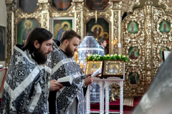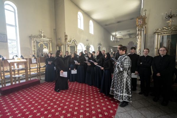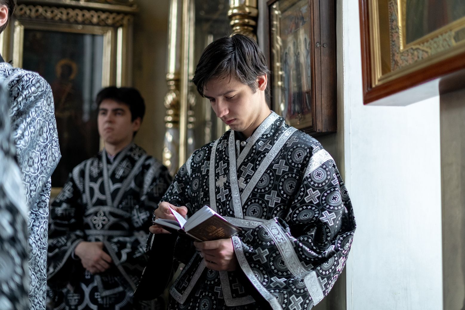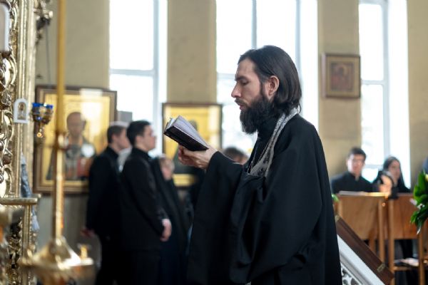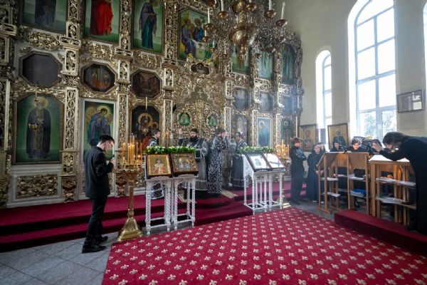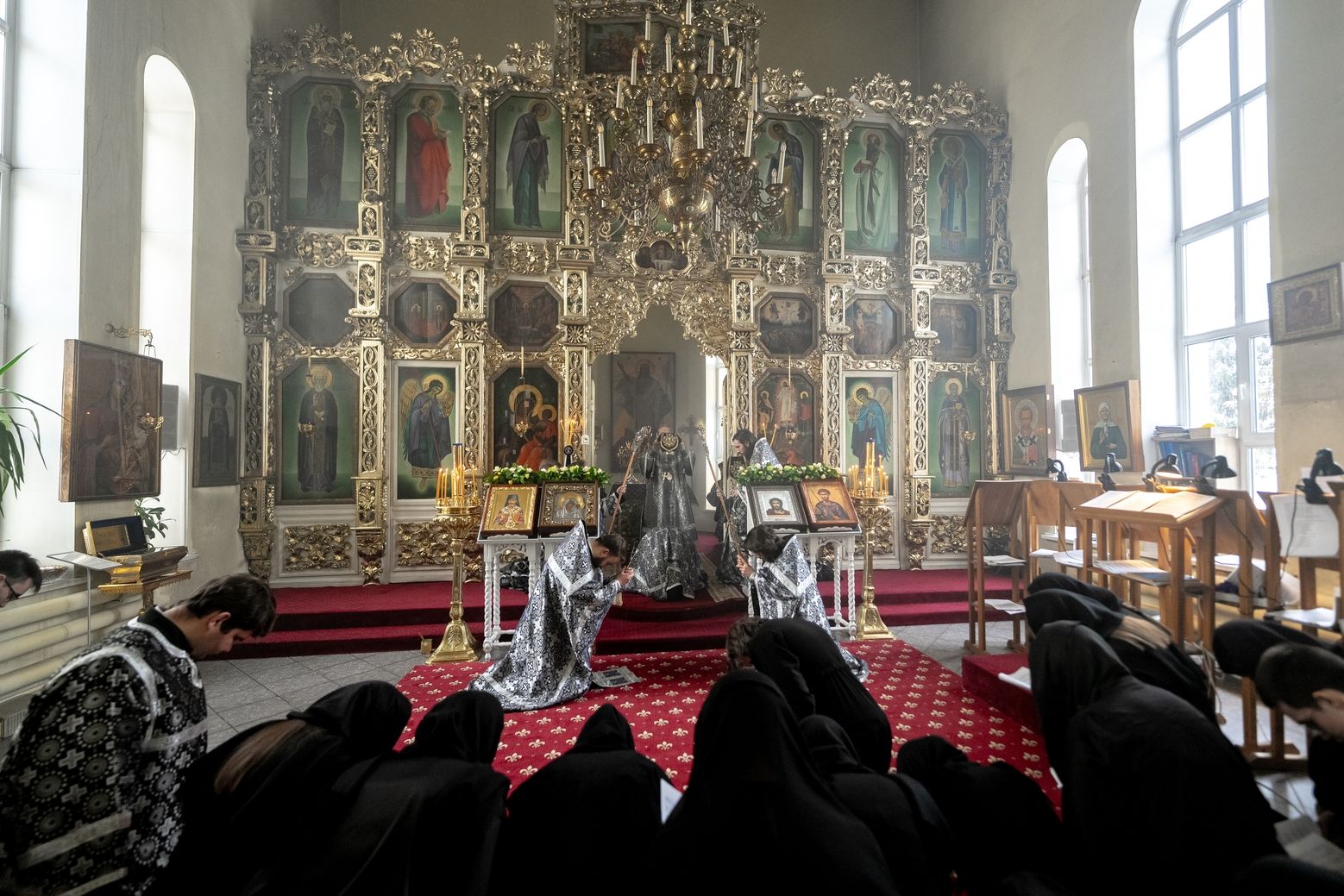 Песнопения исполнил хор воспитанников семинарии под управлением Дениса Рогова. За богослужением молились преподаватели и учащиеся духовной школы, прихожане семинарского храма.