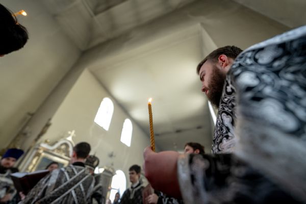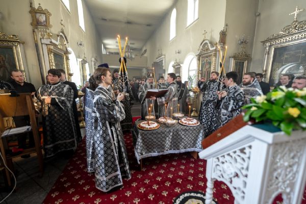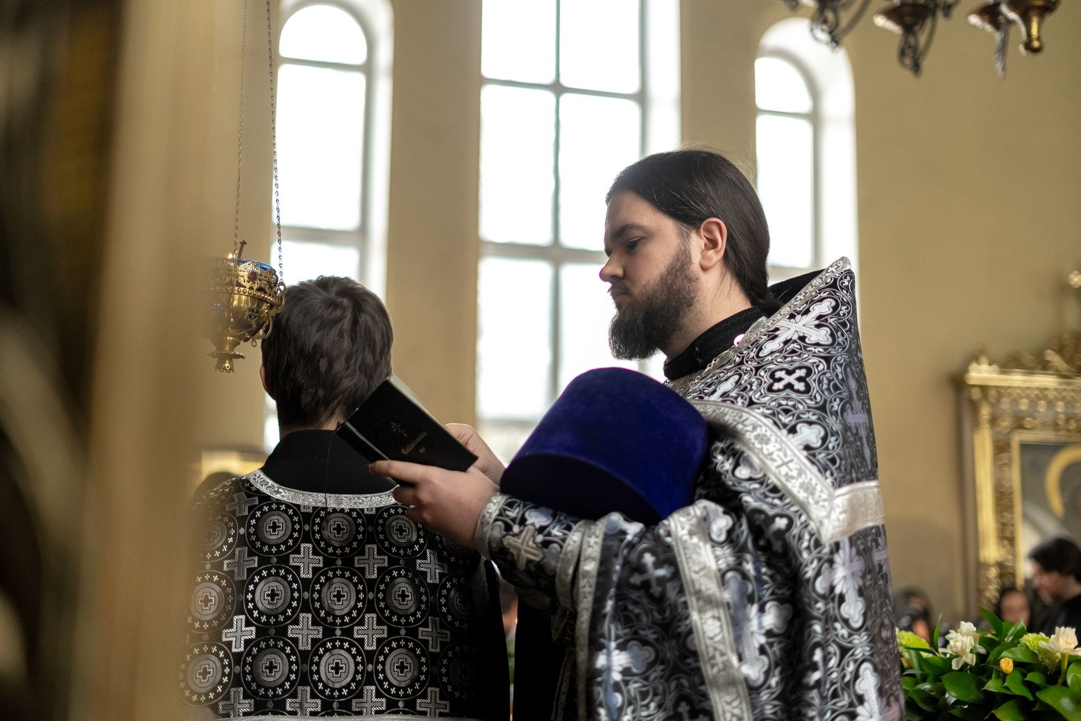 27 февраля 2026 года, в пятницу первой седмицы Великого поста, день памяти равноапостольного Кирилла, учителя Словенского, священномученика Павла пресвитера и сыновей его мучеников Бориса, Григория и Симеона Елабужских, митрополит Казанский и Татарстанский Кирилл совершил Литургию Преждеосвящённых Даров в храме праведного Иоанна Кронштадтского при Казанской духовной семинарии.