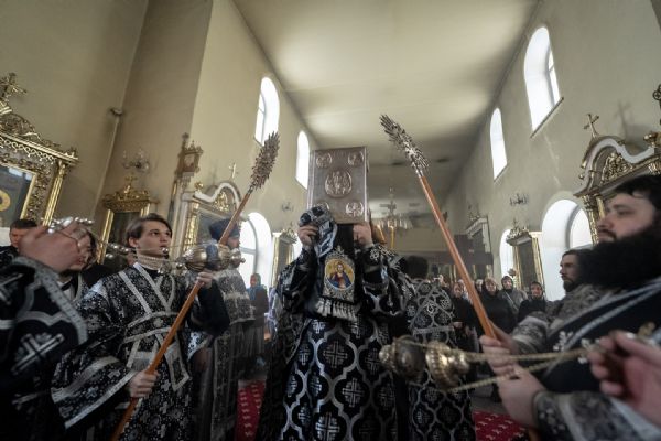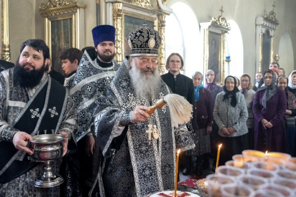 По окончании Литургии митрополит Кирилл совершил молебное пение великомученику Феодору Тирону и освятил коливо. Затем архипастырь обратился к верующим со словом: