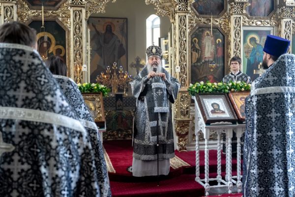 Его Высокопреосвященству сослужили ректор КазДС, настоятель прихода иерей Никита Кузнецов, клирики семинарского храма иерей Иоанн Куликов и иерей Павел Рыбочкин, клирик храма преподобного Серафима Саровского города Казани иерей Роман Ермолаев.