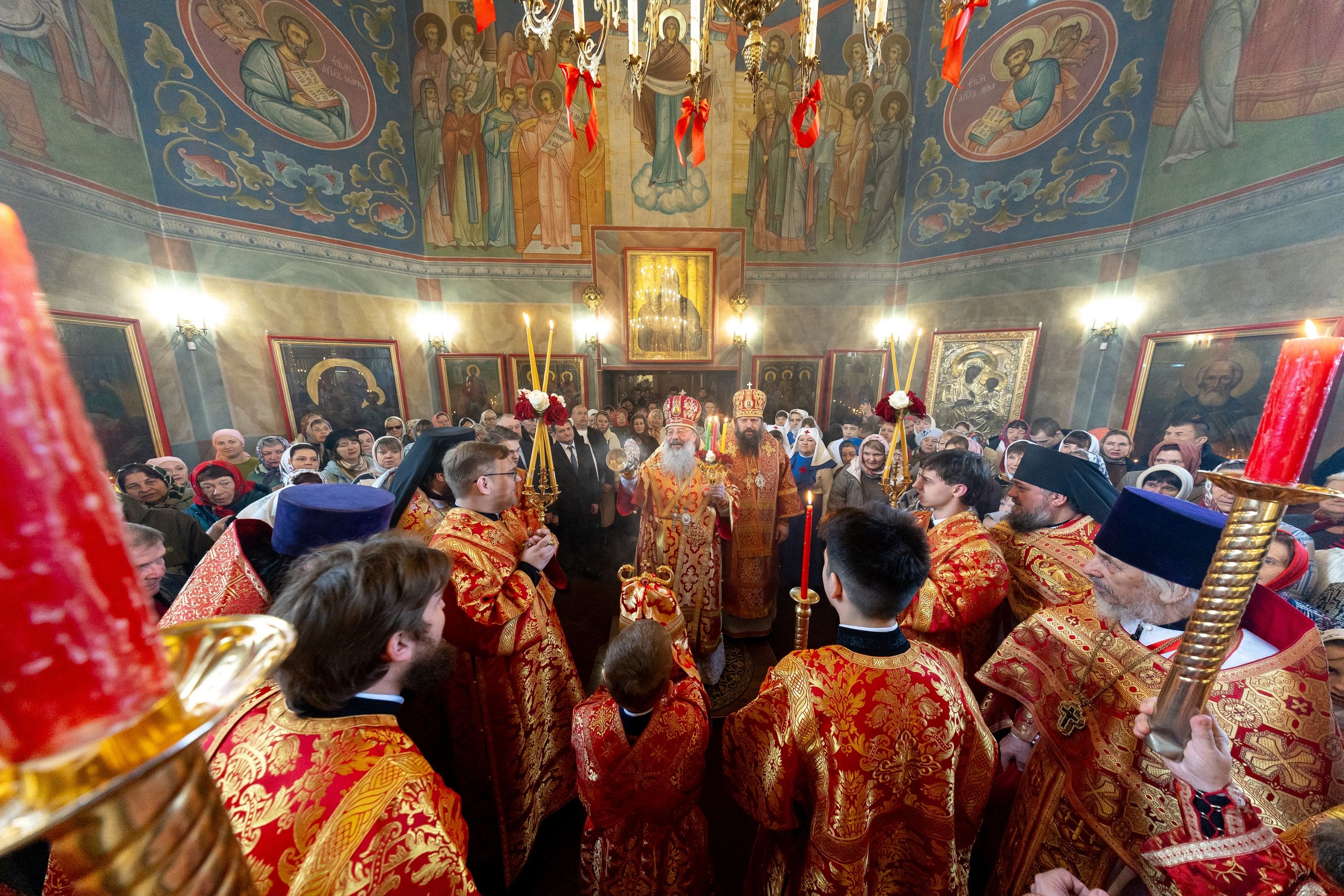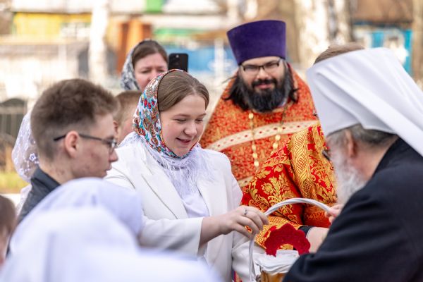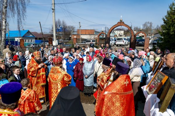 18 апреля 2026 года, в субботу Светлой седмицы, митрополит Казанский и Татарстанский Кирилл и епископ Набережночелнинский и Елабужский Гавриил совершили Божественную литургию пасхальным чином в храме преподобной Ксении Римляныни города Мамадыш.