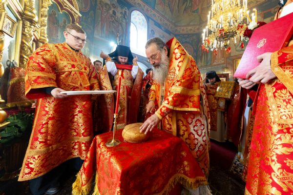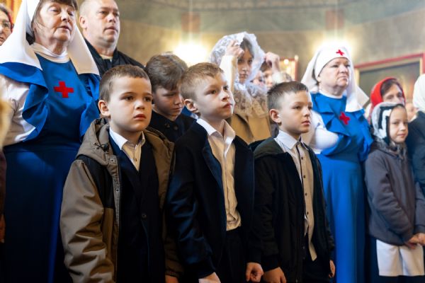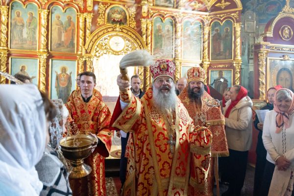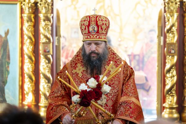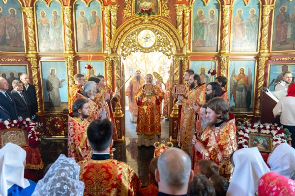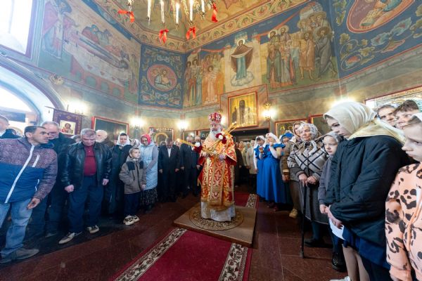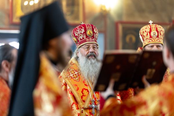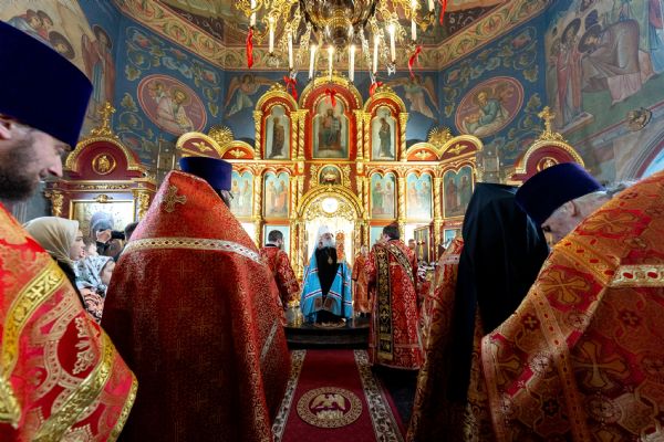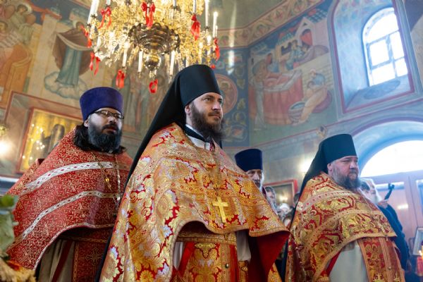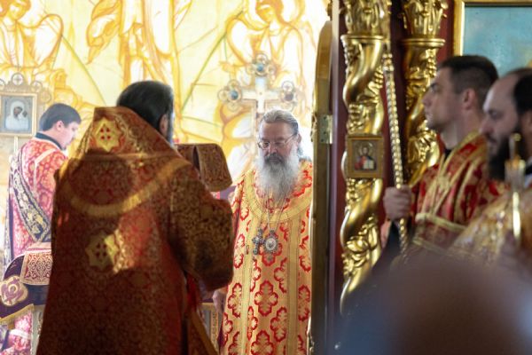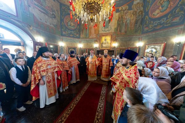 На мирной и сугубой ектениях были вознесены молитвы о Российском воинстве и о мире. Часть молитвословий возносились на кряшенском языке. По запричастном стихе проповедь произнёс игумен Никодим (Шушмарченко).