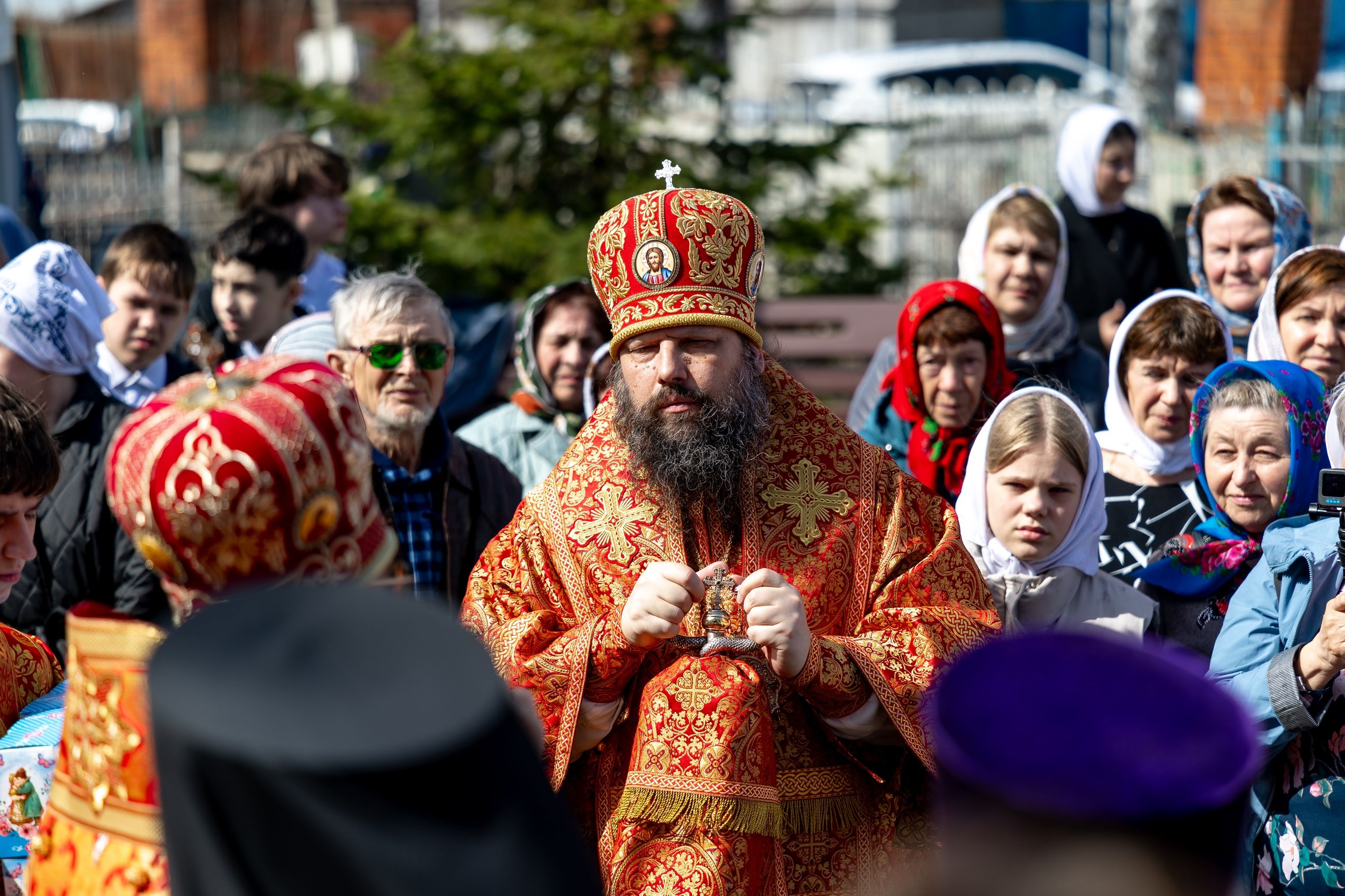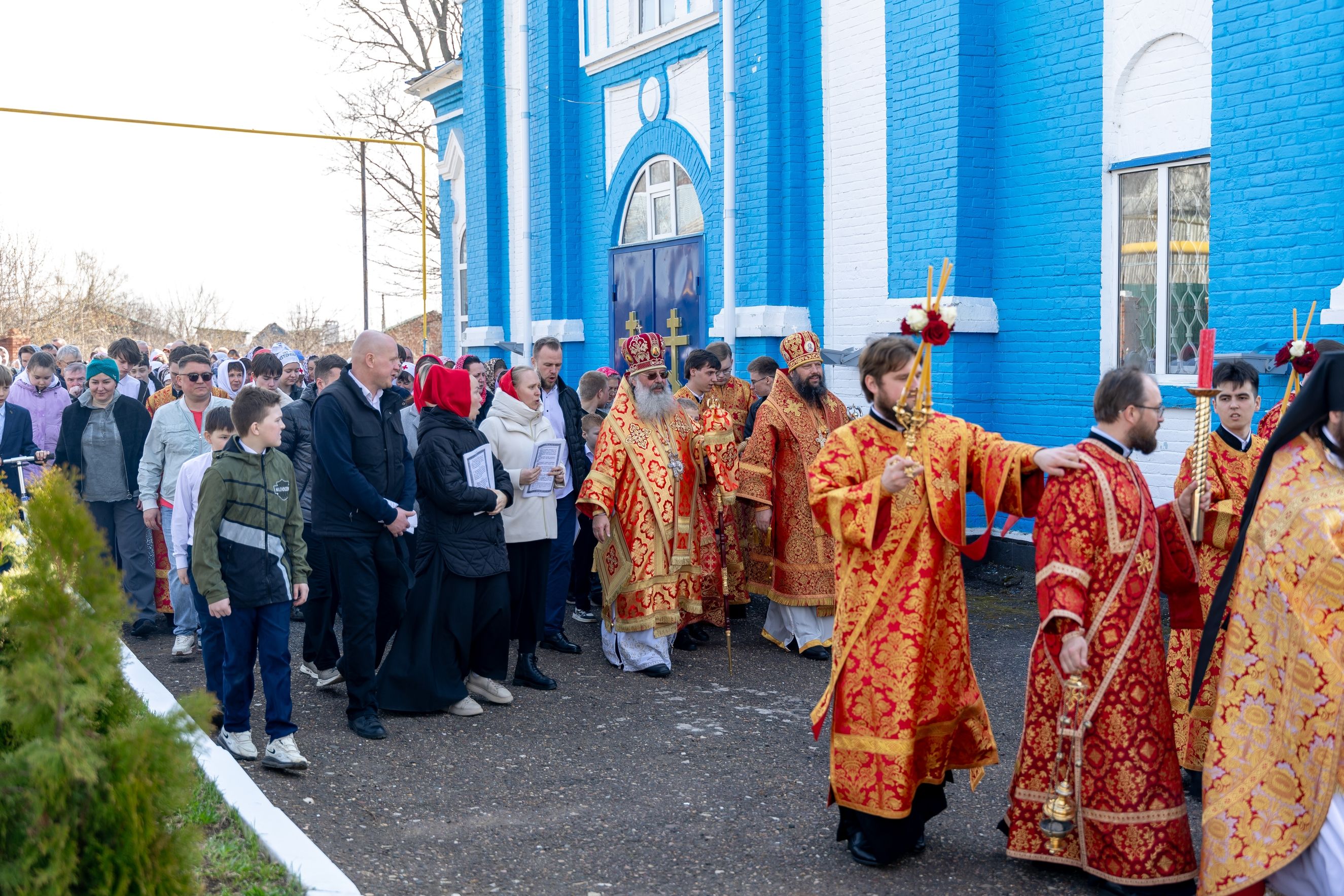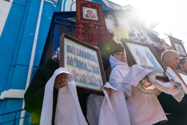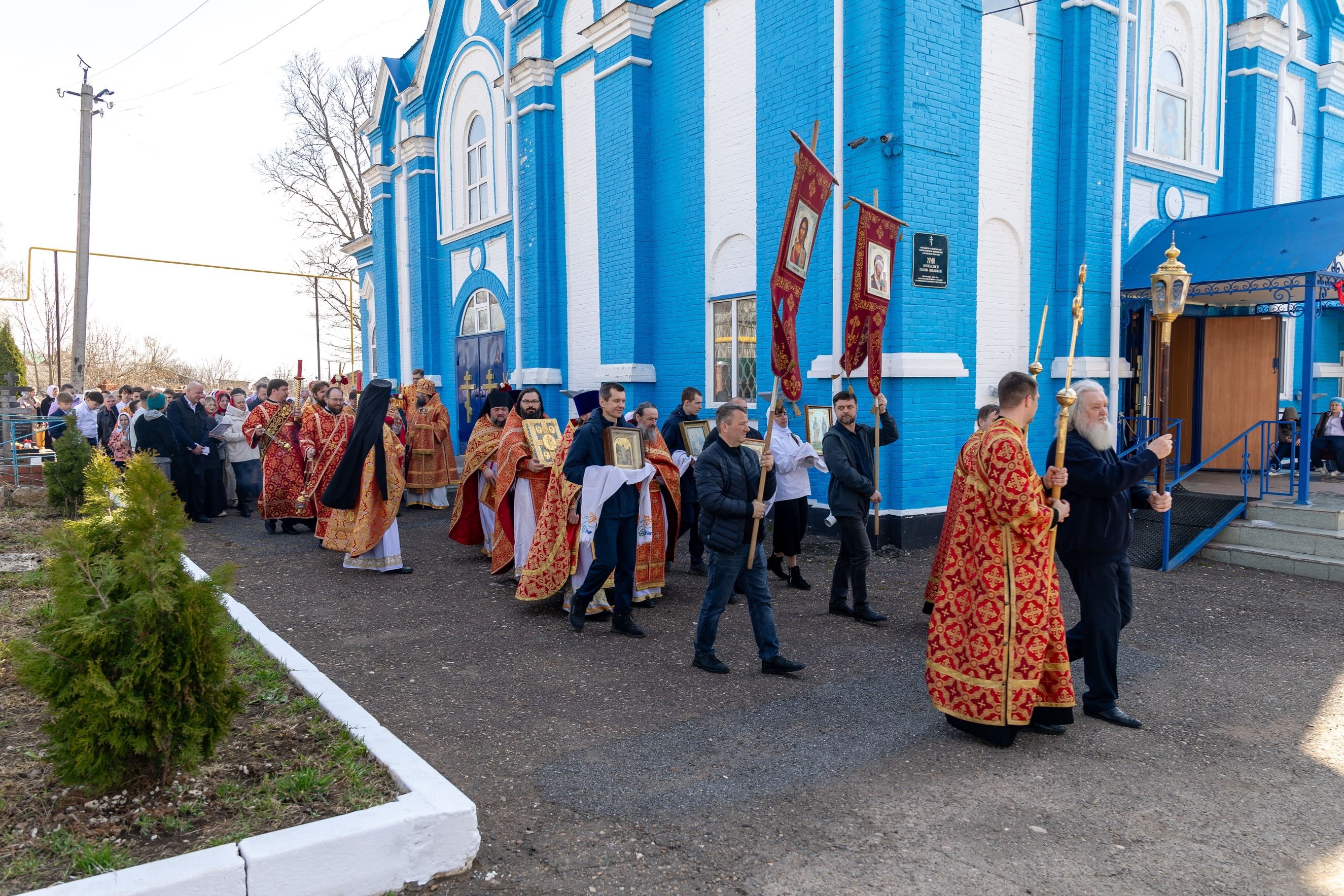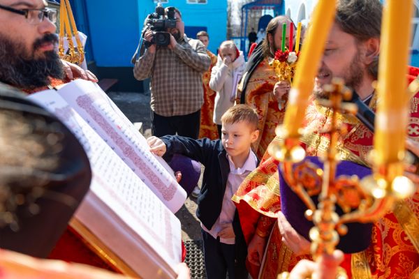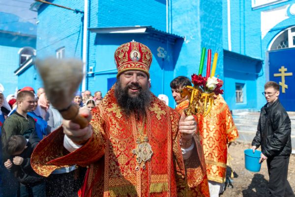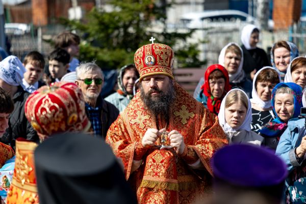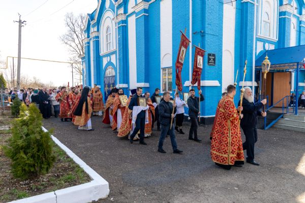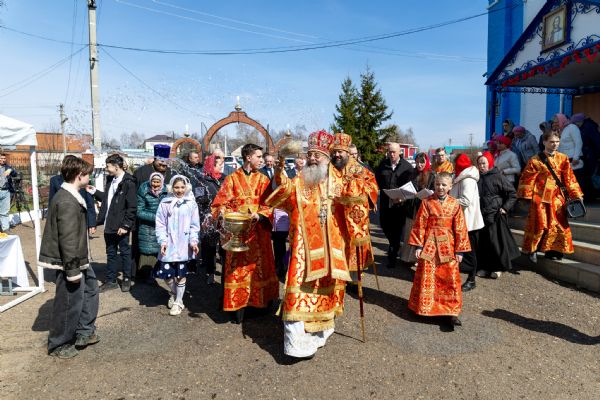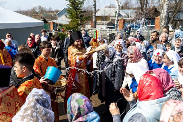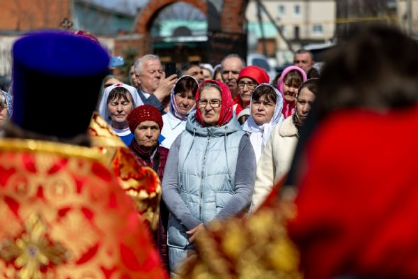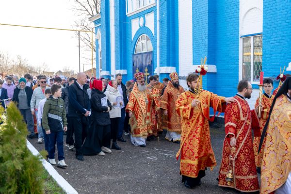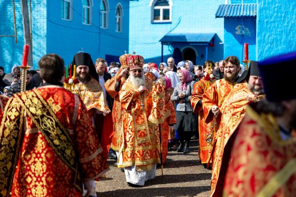 В завершение богослужения духовенство и миряне совершили крестный ход вокруг храма.