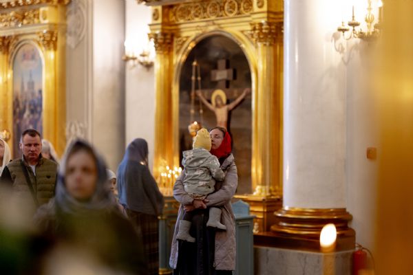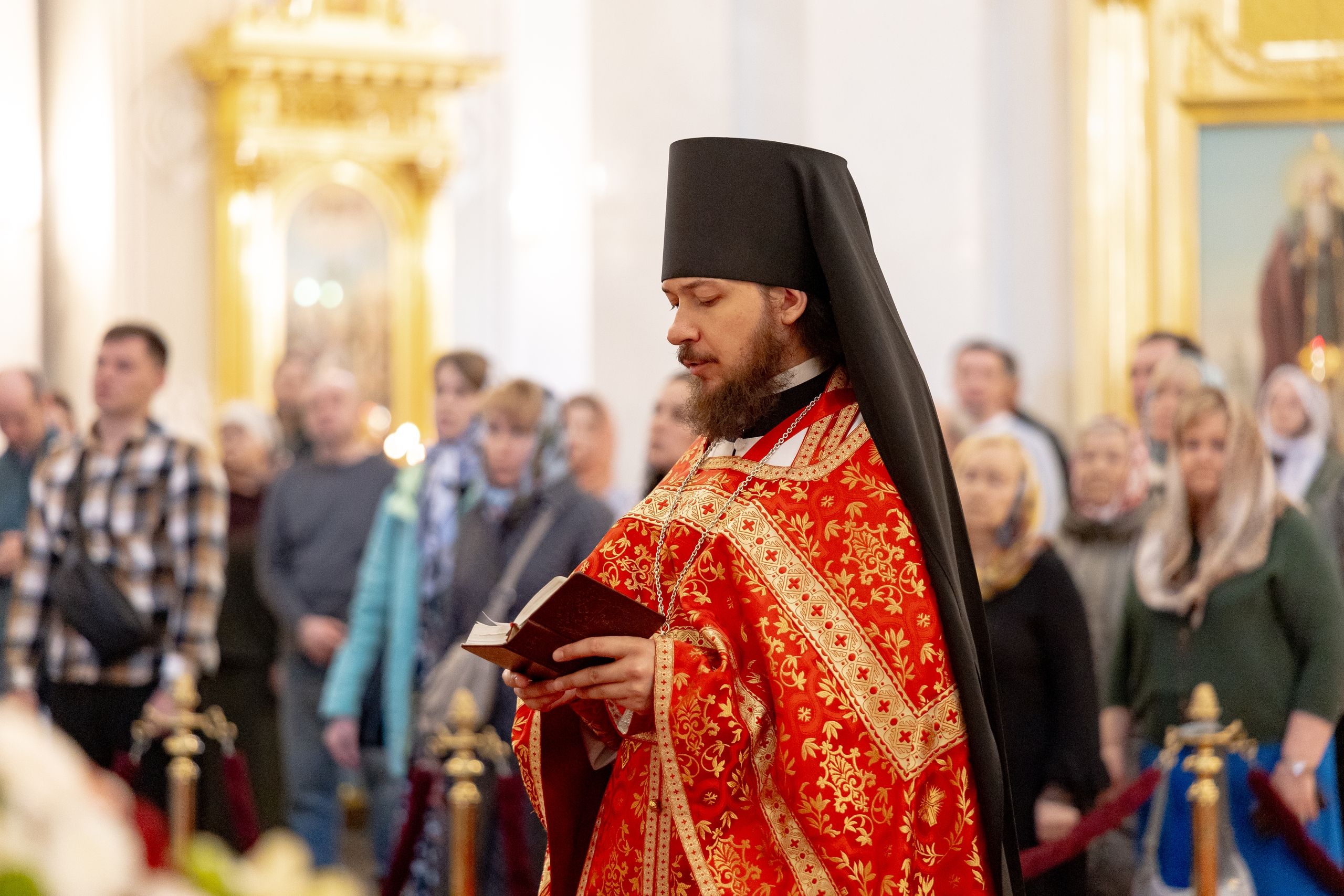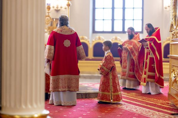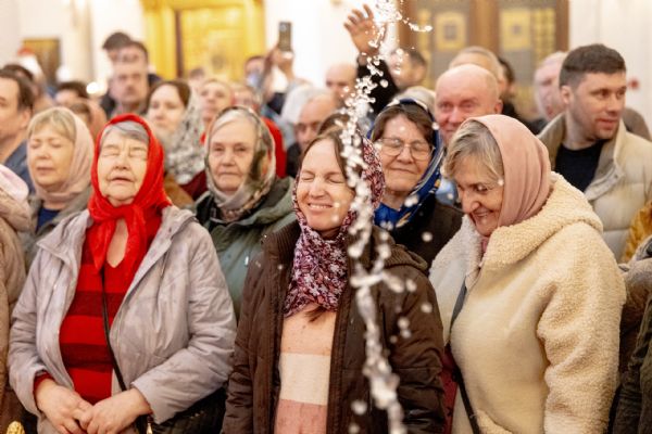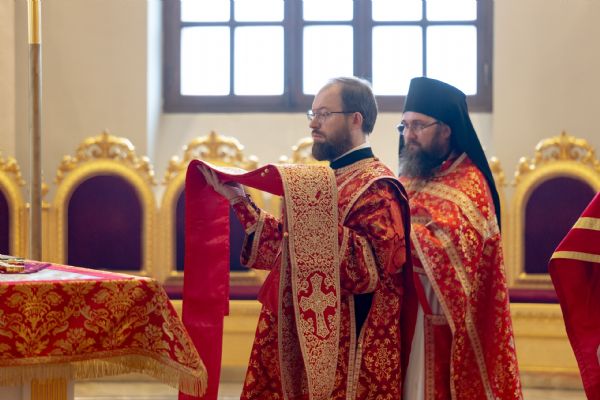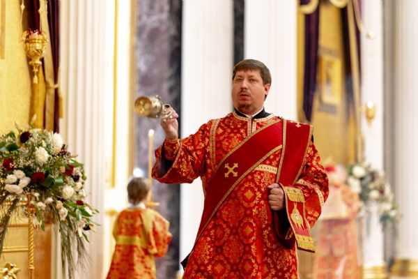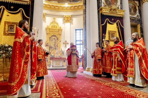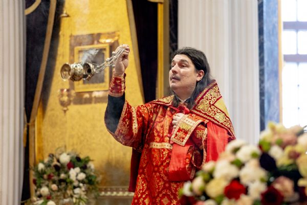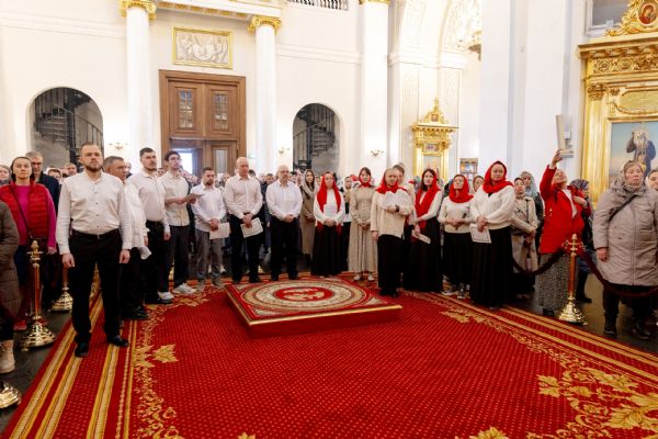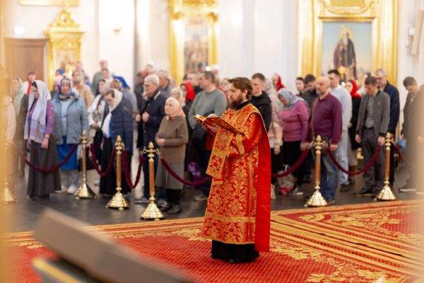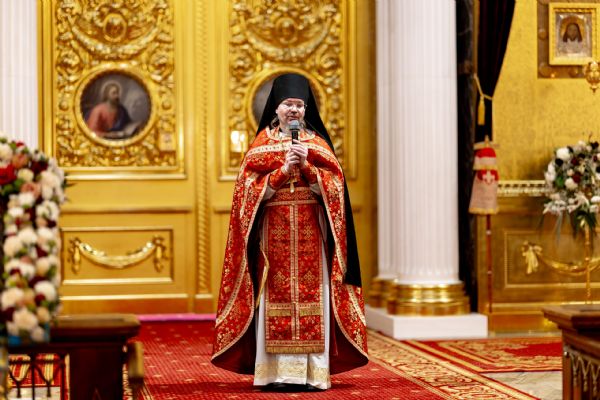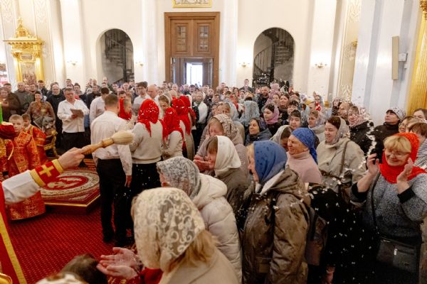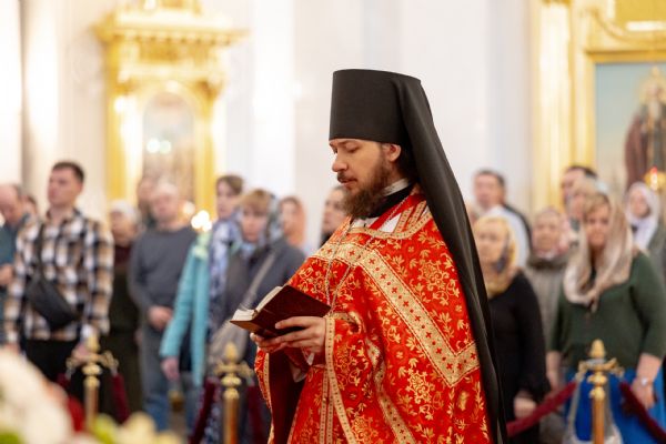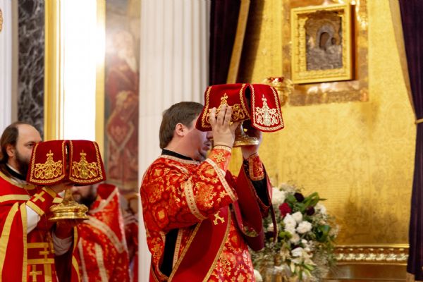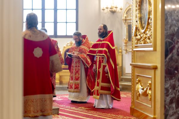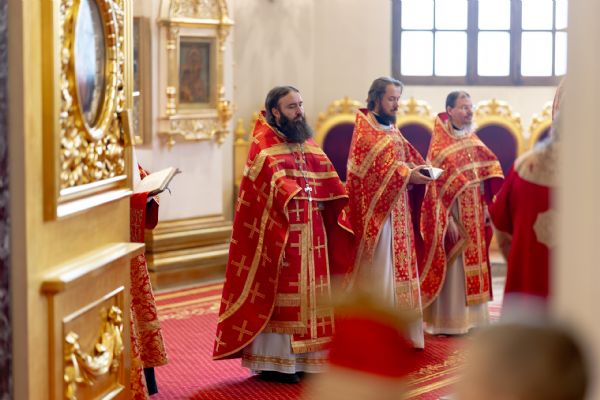На мирной и сугубой ектениях были вознесены молитвы о Российском воинстве и о мире. По запричастном стихе проповедь произнёс иеромонах Гермоген (Рубан).
