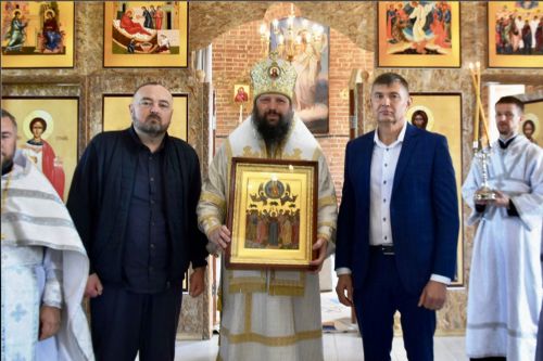 «В первую очередь хочется отметить огромный труд Олега Михайловича, который он вложил в восстановление этого храма. Многие из вас, местные жители, прекрасно помнят, как было раньше: здесь были ямы, ничего не было — ни окон, ни дверей, ни пола, ни потолка. Но пришел Олег Михайлович и заболело его сердце об этом святом храме. В Евангелии сказано: «Если в святом месте мерзость запустения, то это знак приближения времени Антихриста» (См. Мф. 24, 14). Но, слава Богу за таких людей, у которых болит сердце за святые Божии храмы. Олег Михайлович — человек деятельный и делающий. Благодаря ему мы можем теперь служить здесь, комфортно и уютно», — сказал правящий архиерей.