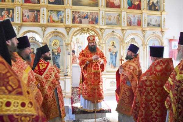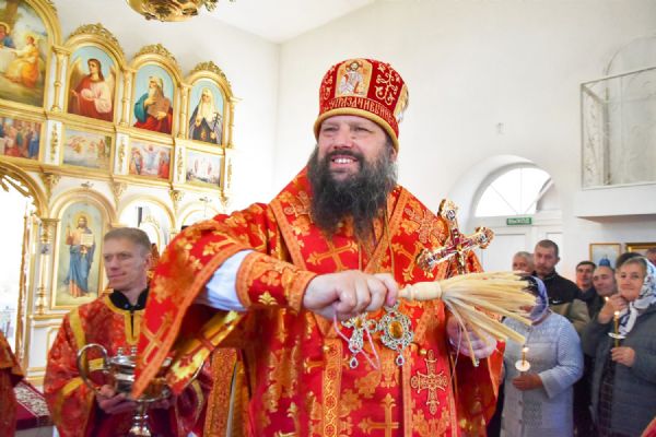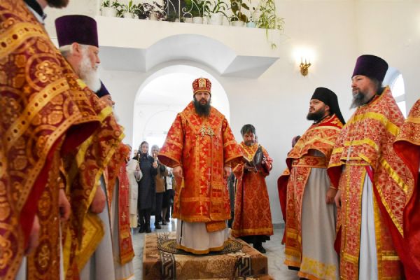 В завершение богослужения архипастырь с духовенством совершили поклонение Кресту, после чего он был занесен в алтарь. Епископ Гавриил обратился к верующим со словом: