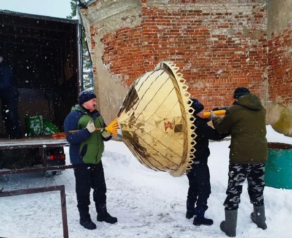 После завершения чина освящения купола и кресты были установлены на возрождающийся храм.