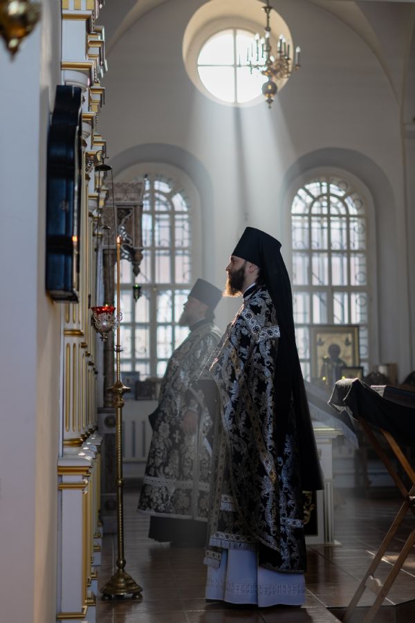 Песнопения исполнил архиерейский мужской хор под управлением Дениса Рогова.
