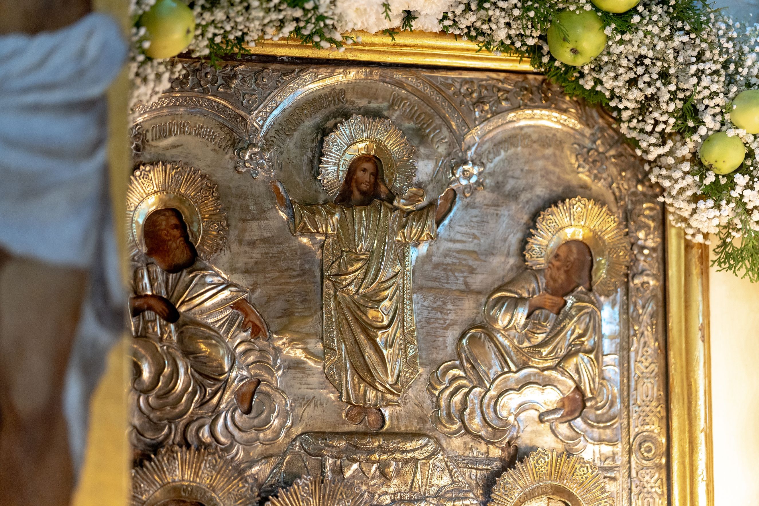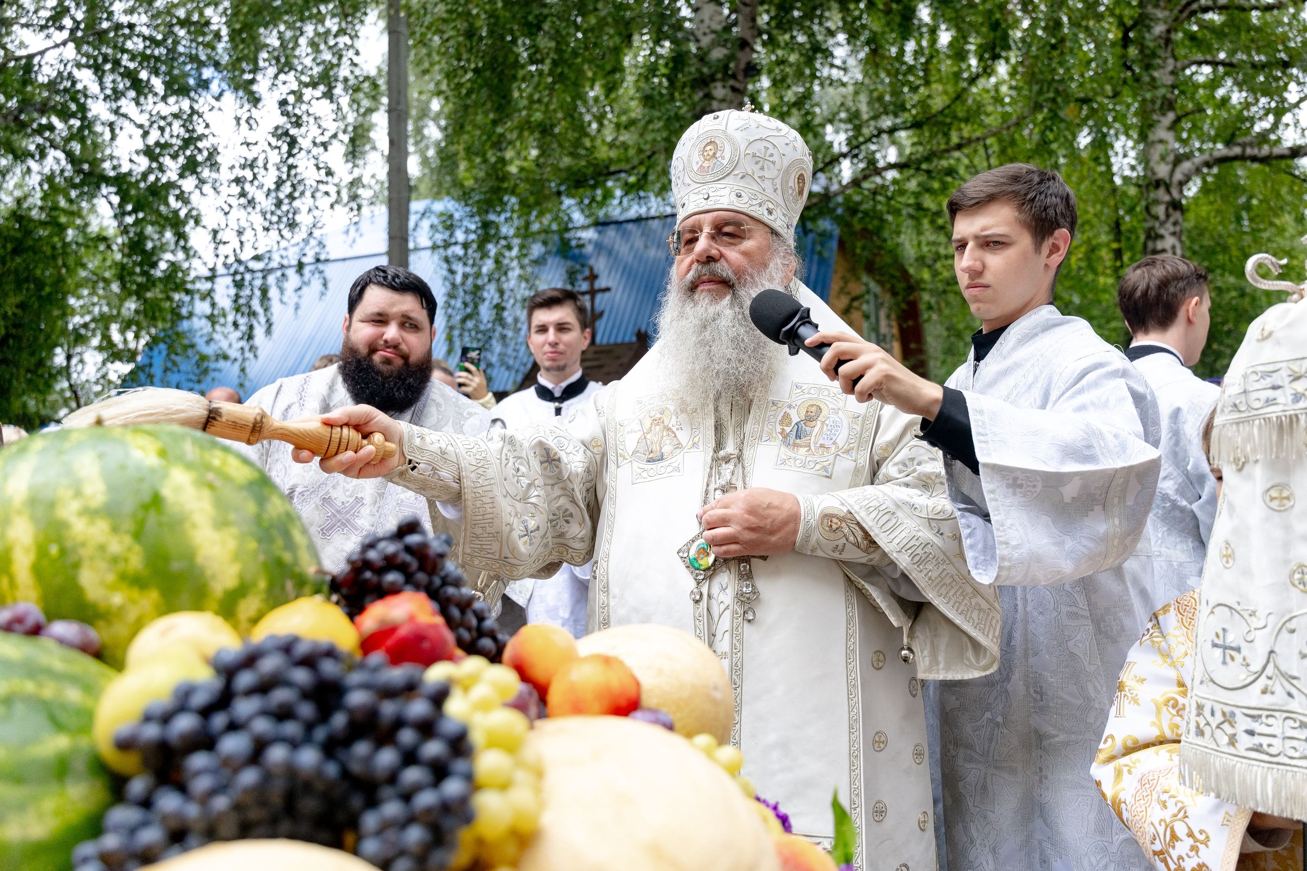 Но Христос Спаситель пришёл в этот мир, чтобы вернуть нас обратно и даровать нам полноту благодати и радости. Он пощадил нас и дал нам утешение, которое мы получаем особенно в праздничные дни, когда в храме освящаются вода и плоды. Сегодняшнее освящение плодов — отголосок той сладкой райской жизни, которой мы лишились, но которую Господь возвращает нам через труд, молитву, пост и всё то, через что человек должен пройти на этой земле.