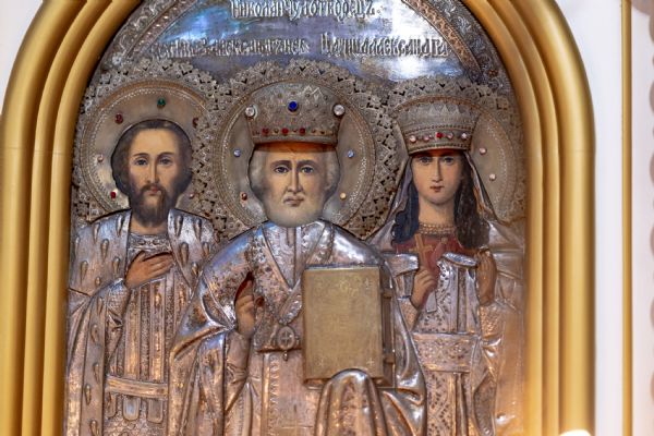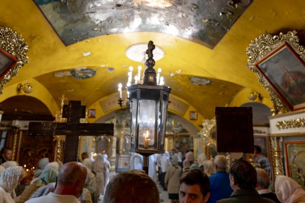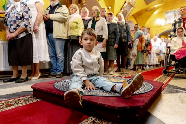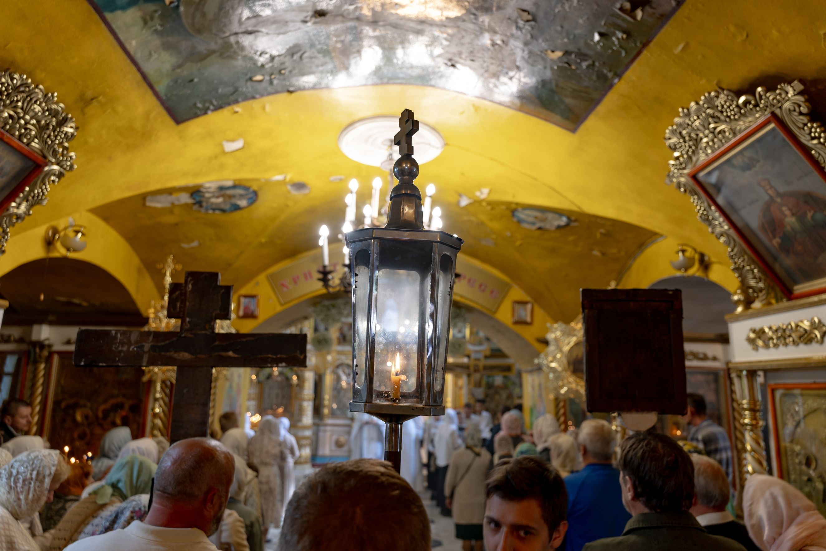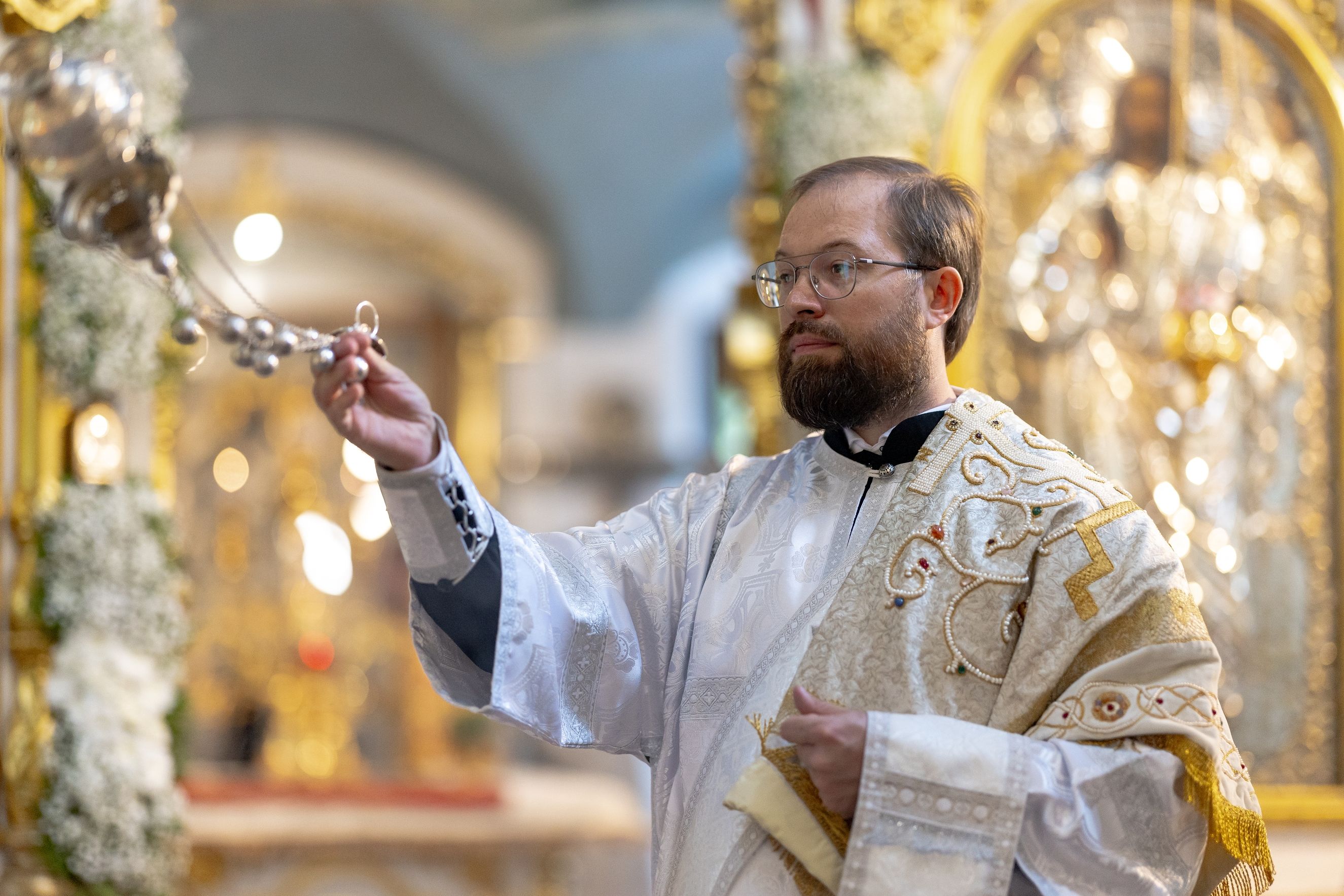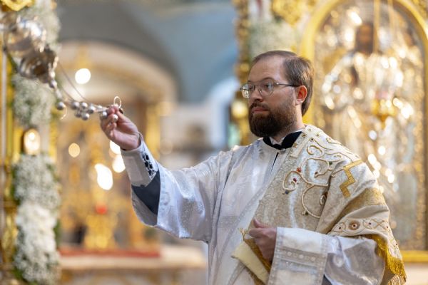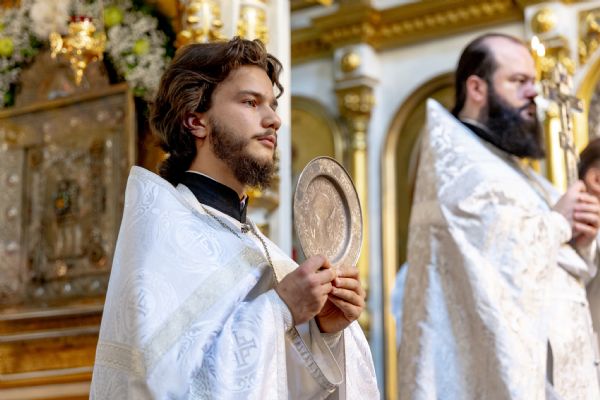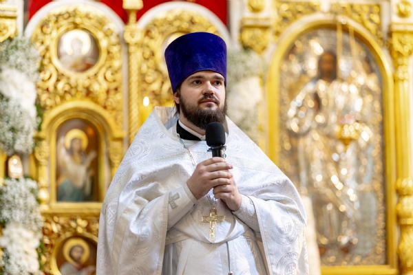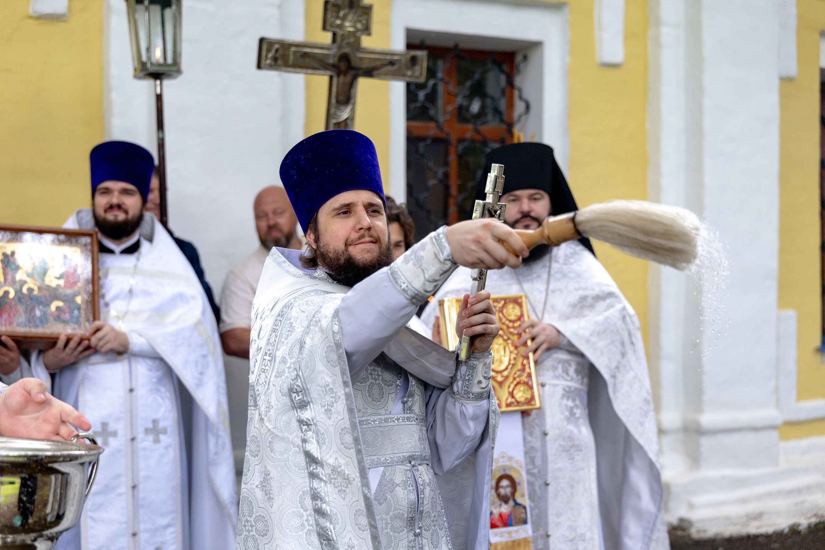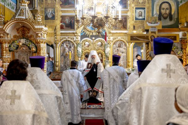 На мирной и сугубой ектениях были вознесены молитвы о мире и о Российском воинстве. По запричастном стихе проповедь произнёс иерей Никита Кузнецов. В завершение на территории храма состоялся крестный ход.