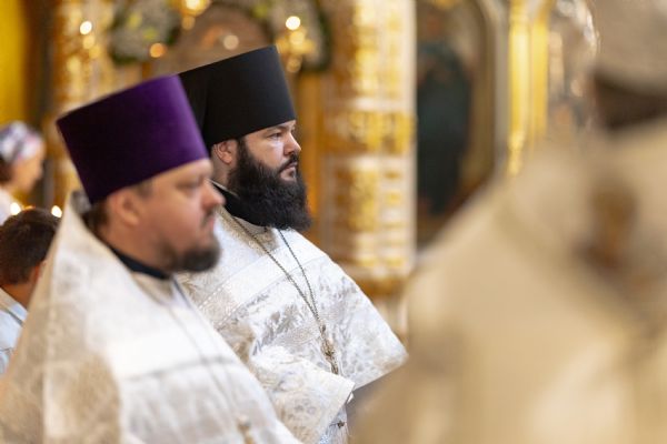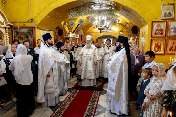 За Литургией Его Высокопреосвященству сослужили секретарь Татарстанской митрополии иеромонах Кирилл (Корытко), благочинный Лаишевского округа протоиерей Алексий Державин, ректор Казанской духовной семинарии иерей Никита Кузнецов, наместник Казанского Богородицкого монастыря игумен Марк (Виленский), настоятель Преображенского прихода иерей Роман Цвигуненко, клирик храма праведного Иоанна Кронштадтского при Казанской духовной семинарии иерей Павел Рыбочкин.