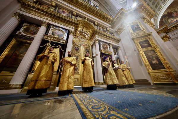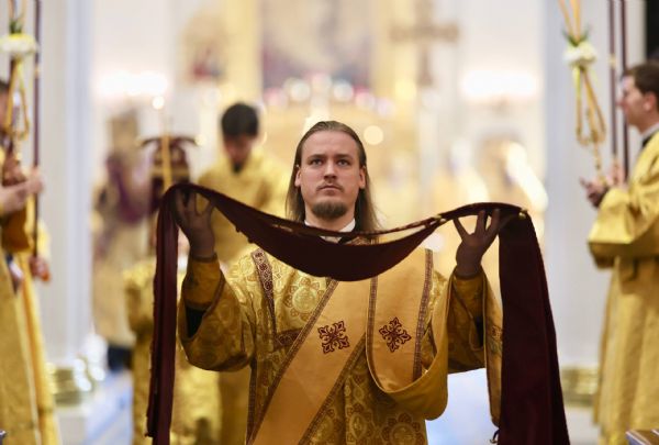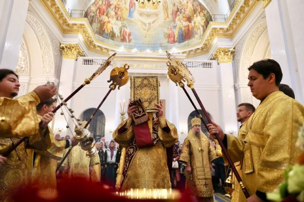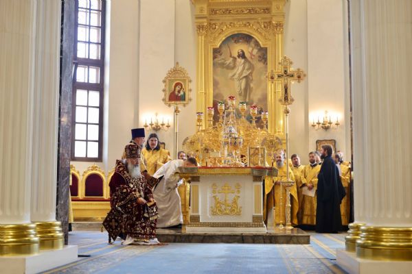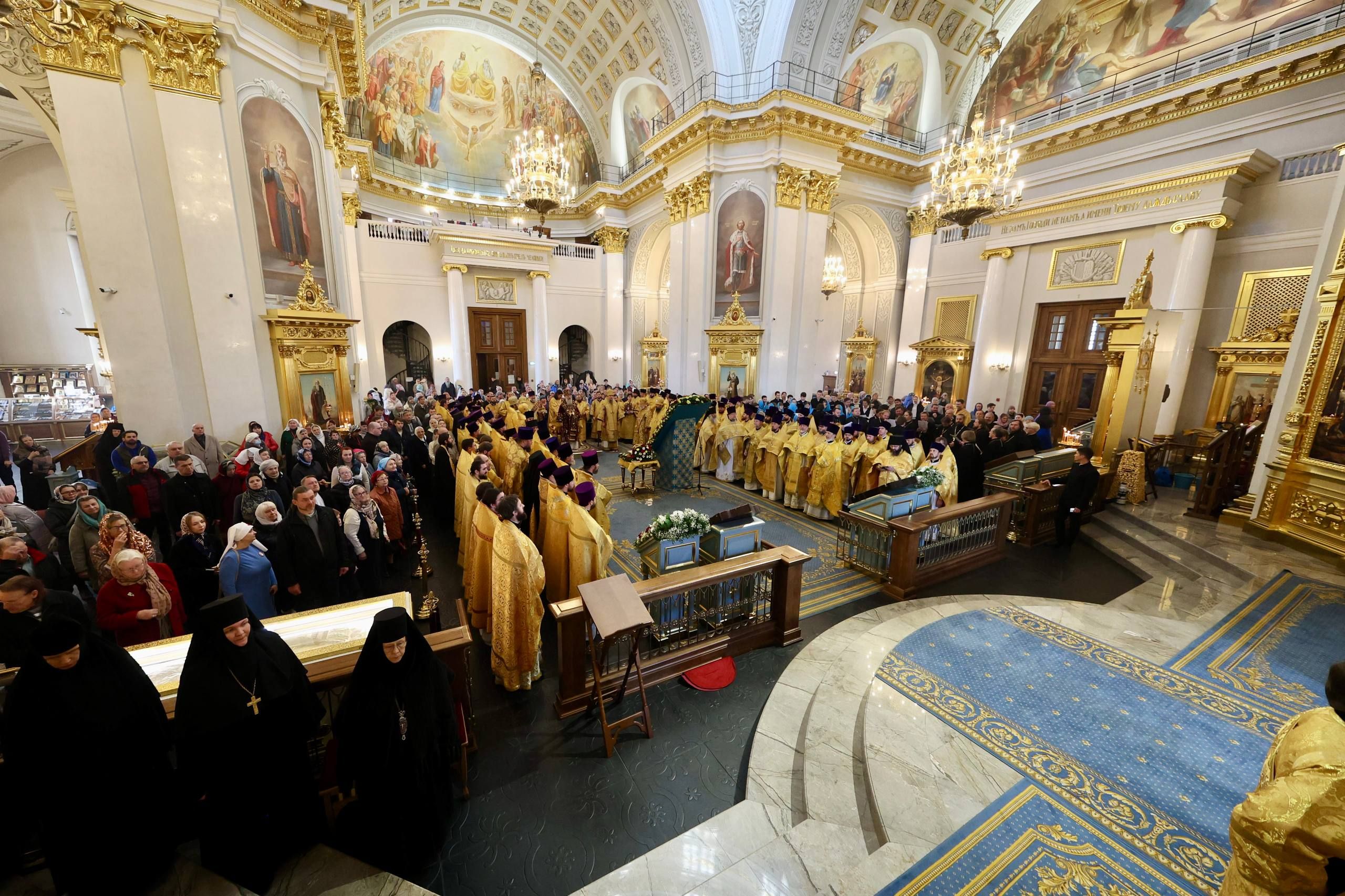 На середине храма для молитвенного поклонения верующих был установлен ковчег с частицей мощей святителя Луки Крымского, принесённый накануне в Казанский собор.