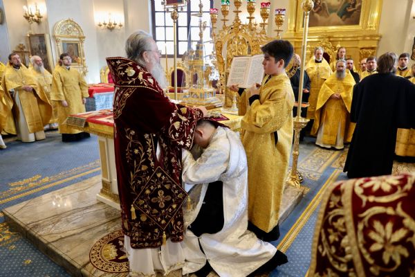 Владыка Кирилл сугубо поздравил диакона Романа Ермолаева с принятием священного сана и пожелал ему помощи Божией в несении церковных трудов.