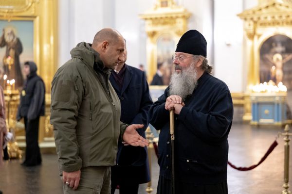 В сопровождении правящего архиерея политический деятель посетил кафедральный собор Казанской иконы Божией Матери. Владыка рассказал высокому гостю об истории собора и основных этапах его воссоздания. Артем Жога ознакомился с убранством храма, помолился перед чудотворной Казанской иконой Божией Матери и приложился к окладу первоявленного образа Царицы Небесной. Представитель власти также посетил Пещерный храм в честь Рождества Пресвятой Богородицы в подземной части Казанского собора.