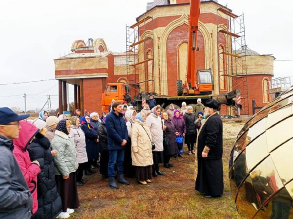 После завершения чина освящения купола и кресты были установлены на строящиеся храм.