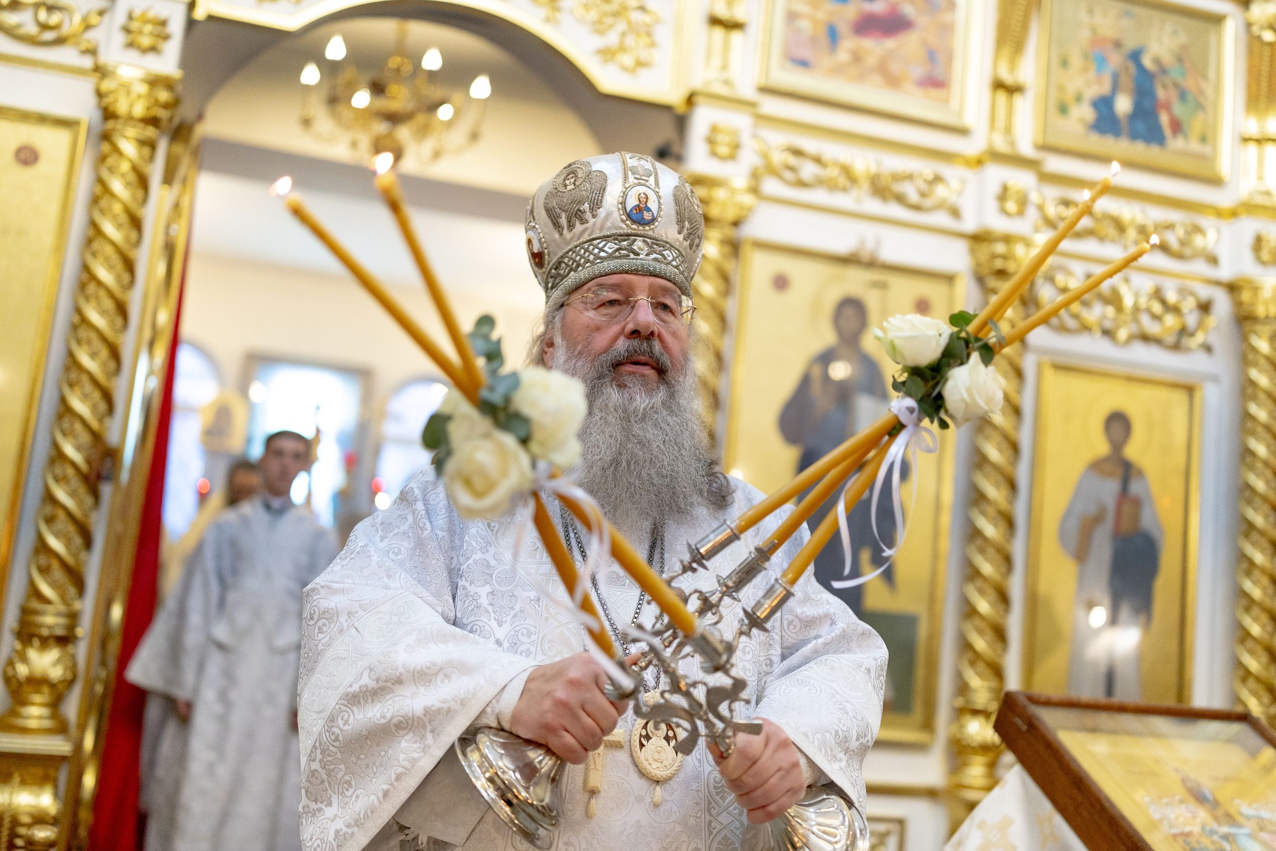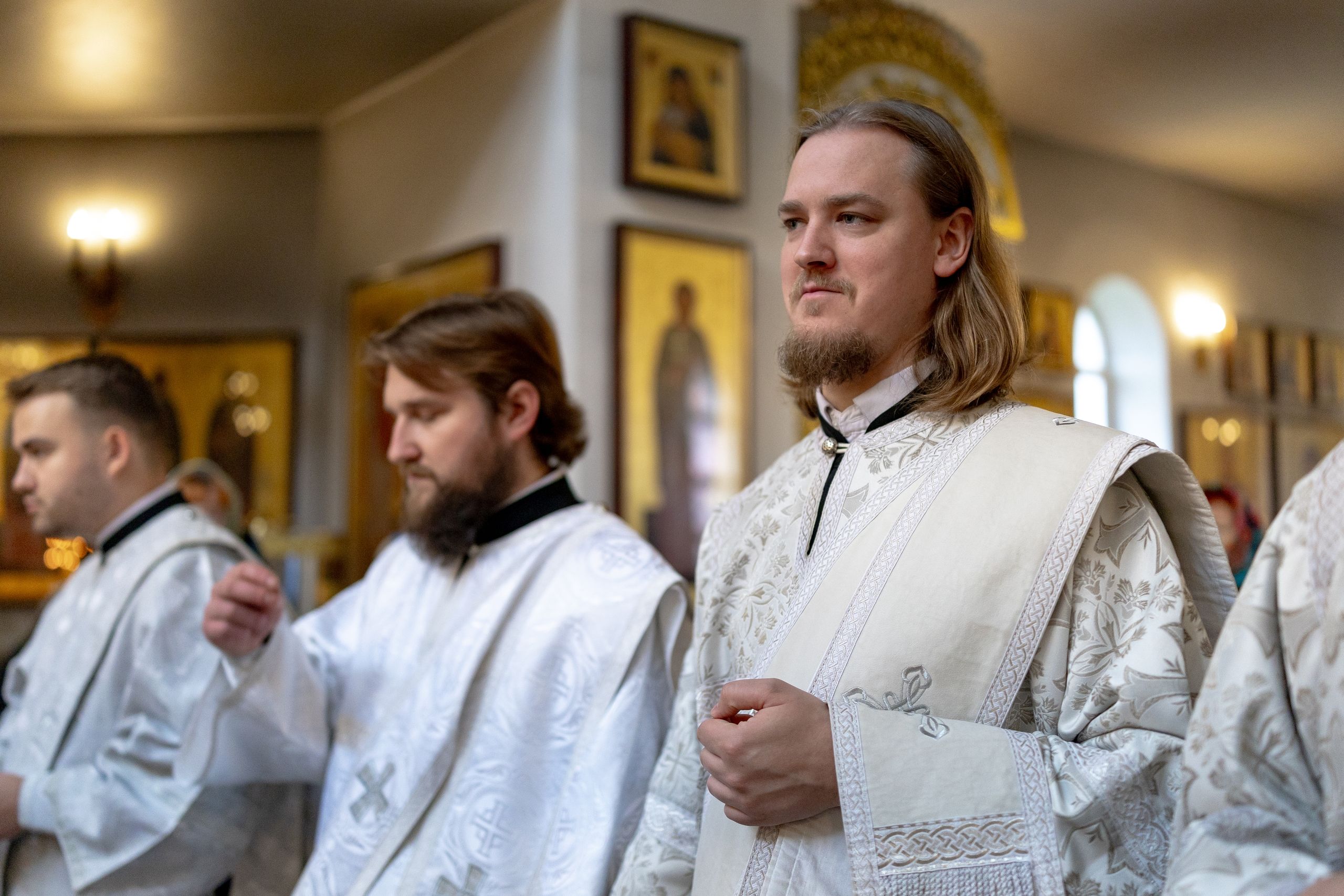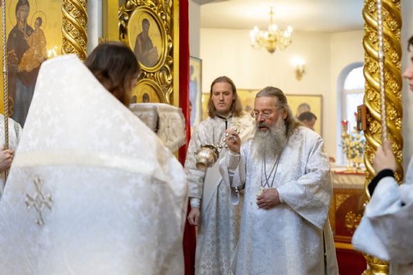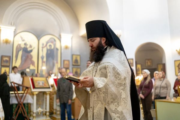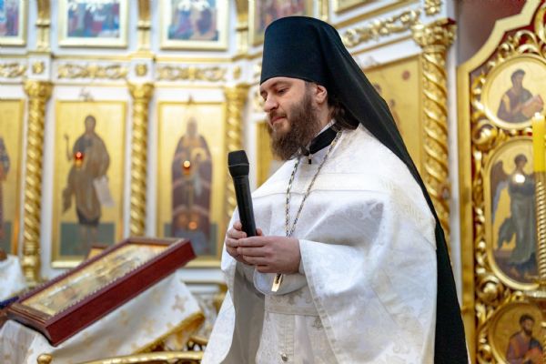 По запричастном стихе иеромонах Кирилл (Корытко) произнёс проповедь, посвящённую жизни и служению архиепископа Михея.