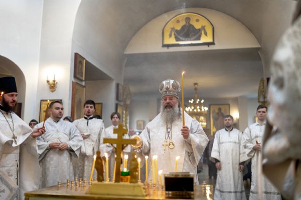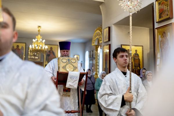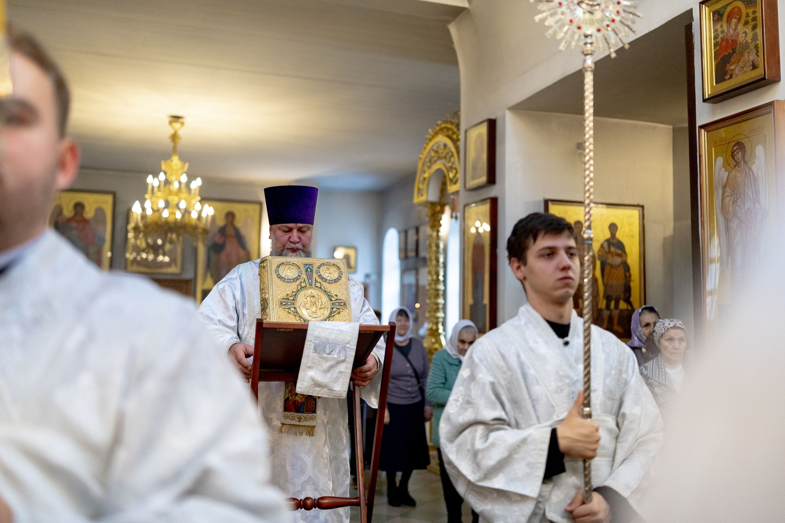 На мирной и сугубой ектениях были вознесены молитвы о Российском воинстве и о мире. Также за богослужением возносились сугубые молитвы об упокоении души приснопамятного архиепископа Михея (Хархарова), который отошёл ко Господу ровно 20 лет назад.