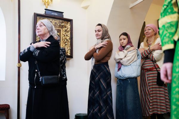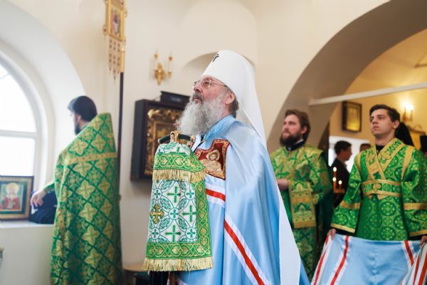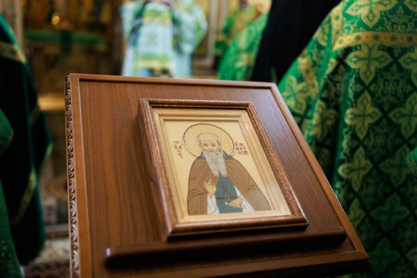 На мирной и сугубой ектениях были вознесены молитвы о Российском воинстве и о мире. По запричастном стихе проповедь произнёс насельник монастыря иеромонах Вадим (Чинилкин). В завершение было совершено славление чествуемому ныне угоднику Божию.