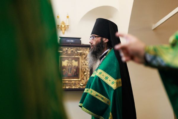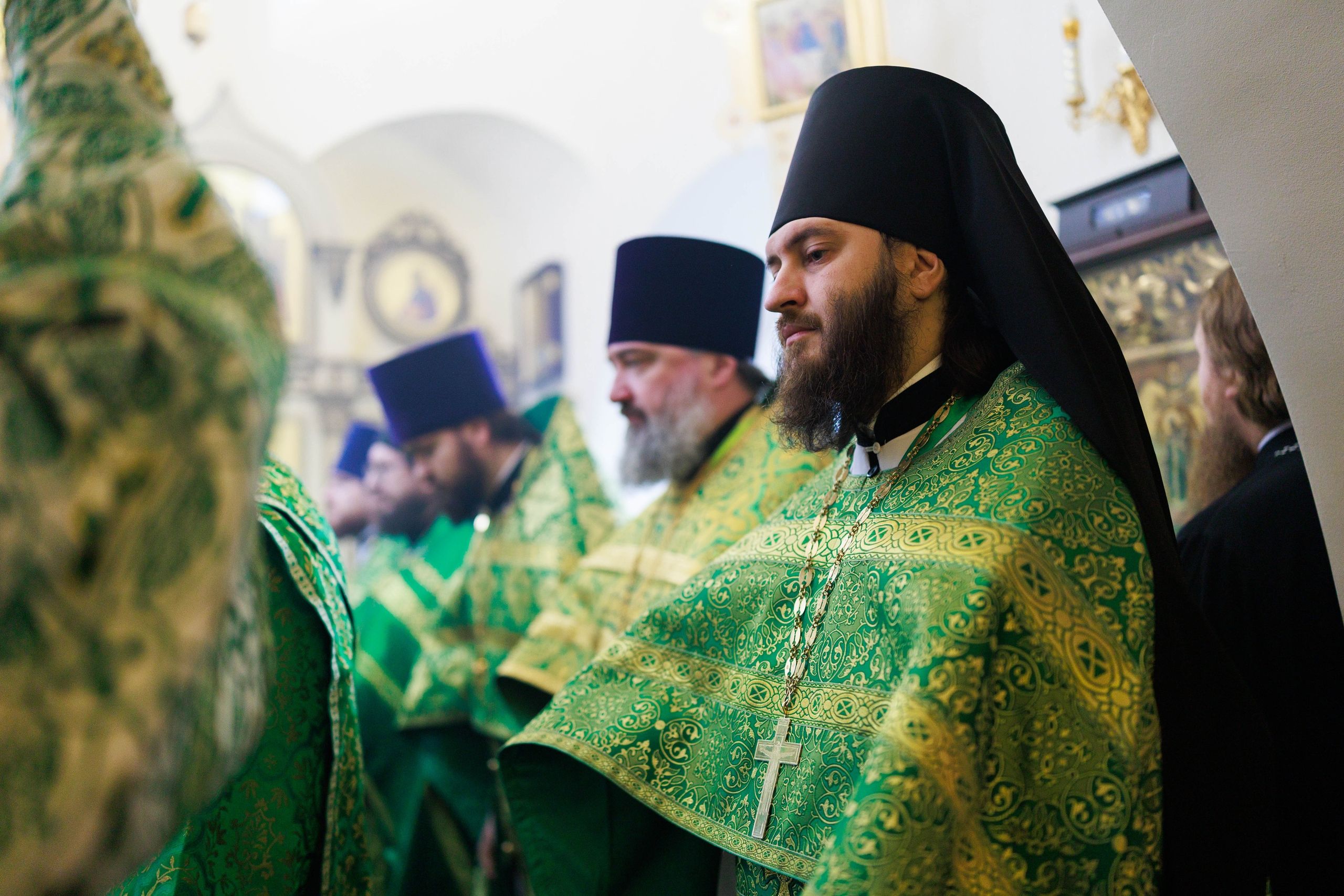 Архипастырям сослужили секретарь Татарстанской митрополии иеромонах Кирилл (Корытко), настоятель обители игумен Пимен (Ивентьев), настоятель Иоанно-Предтеченского монастыря города Казани игумен Алексий (Яцейко), председатель межъепархиального отдела Московской митрополии по взаимодействию с Вооруженными силами и правоохранительными органами протоиерей Марк Ермолаев, заместитель благочинного Богородского церковного округа Балашихинской епархии протоиерей Сергий Макаров, ректор Казанской духовной семинарии иерей Никита Кузнецов, руководитель отдела по социальному служению и благотворительности Альметьевской епархии иерей Константин Петряев, насельники обители в священном сане.