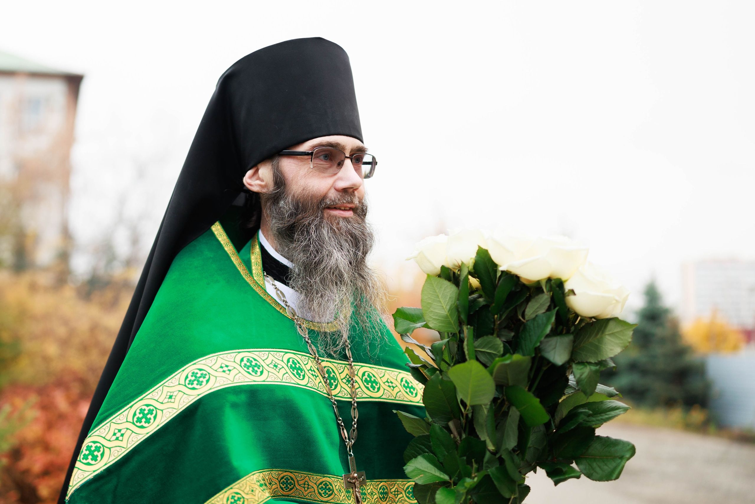 Также Преосвященного владыку Николая приветствовал настоятель Кизического монастыря игумен Пимен (Ивентьев). Отец Пимен поблагодарил архипастыря за радость совместной молитвы в 15-ю годовщину со дня великого освящения Князь-Владимирского храма. На молитвенную память священник передал высокому гостю образ святителя Гурия Казанского.