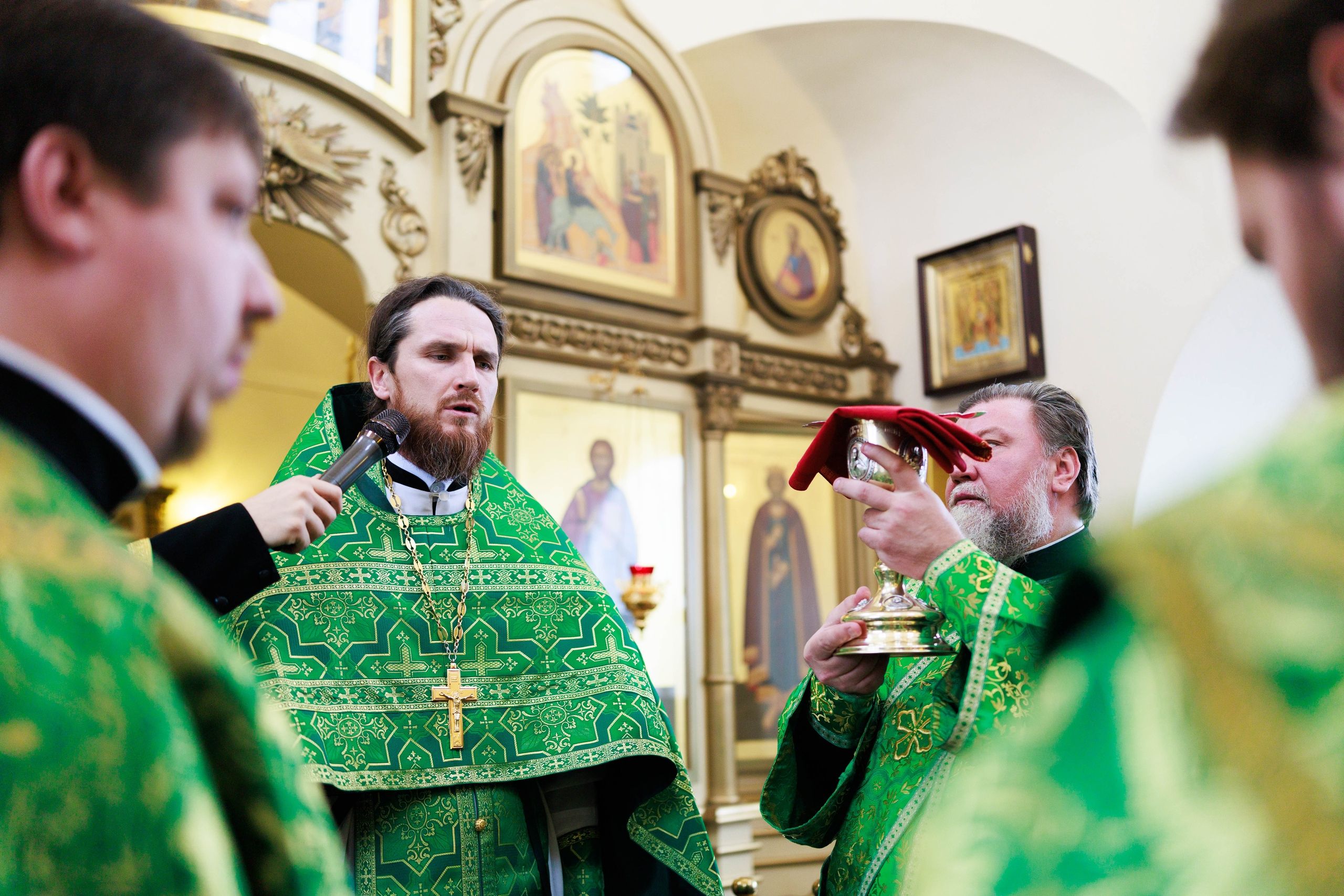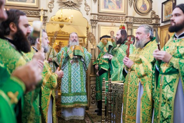 Песнопения исполнил архиерейский мужской хор под управлением Дениса Рогова.