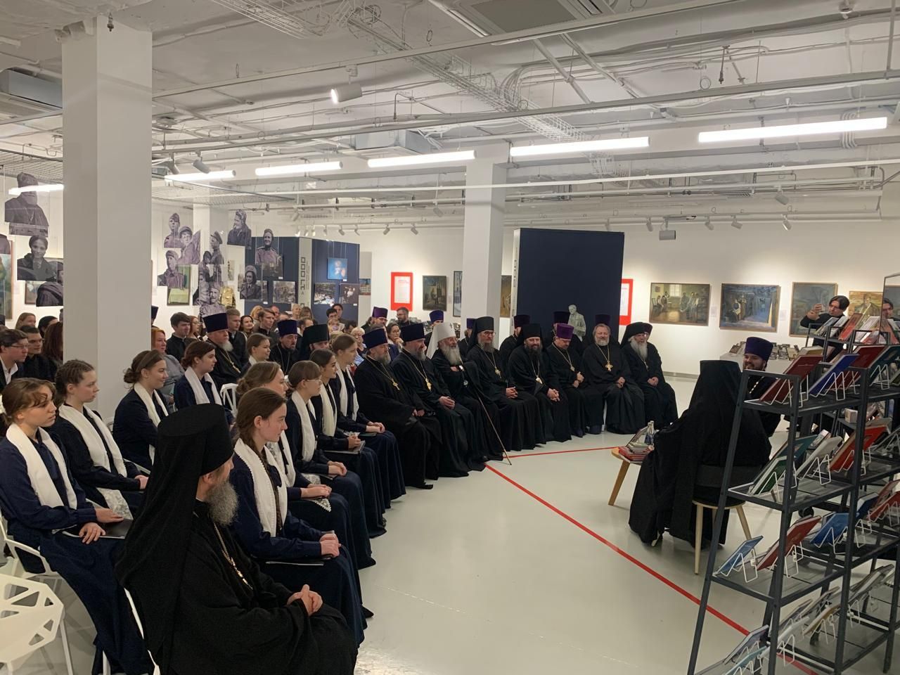 Перед началом презентации хор воспитанников духовной школы под управлением Дениса Рогова исполнил тропарь Казанской иконе Божией Матери.