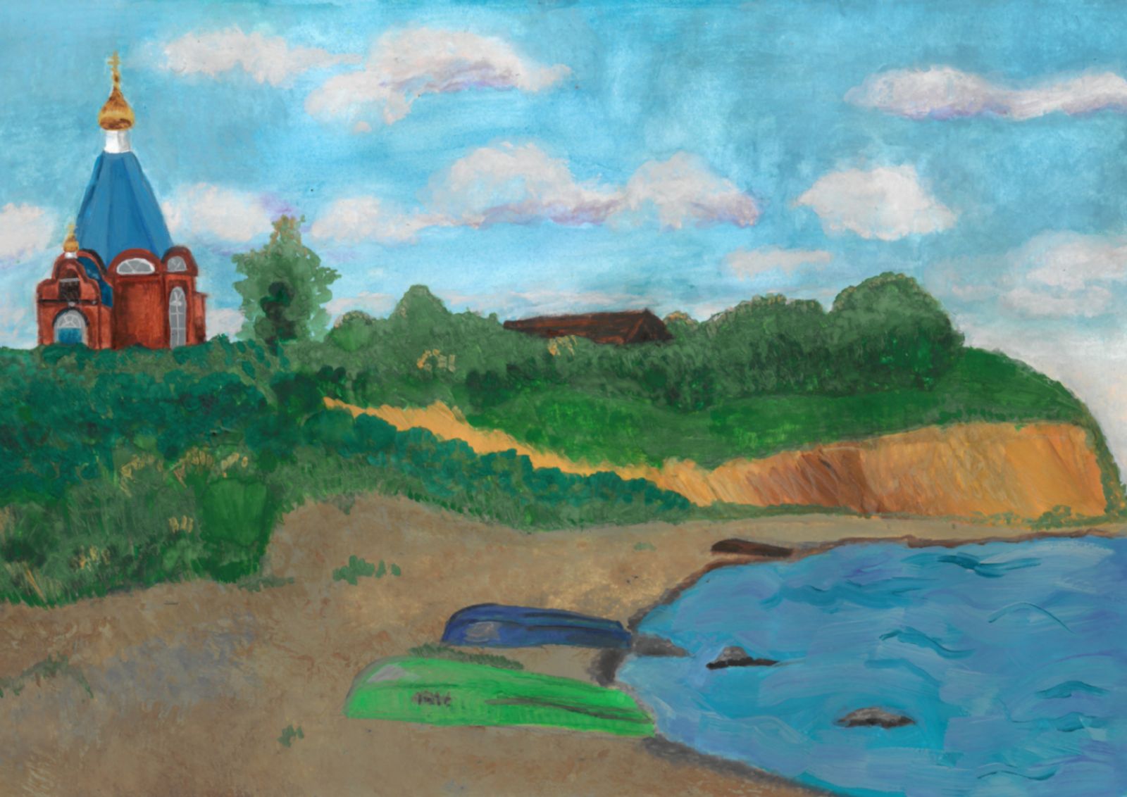 3-е место – Андреев Ярослав, «Любимый храм» (Воскресная школа при храме Казанской иконы Божией Матери пгт. Рыбная Слобода, педагог Габитова Т.М.).