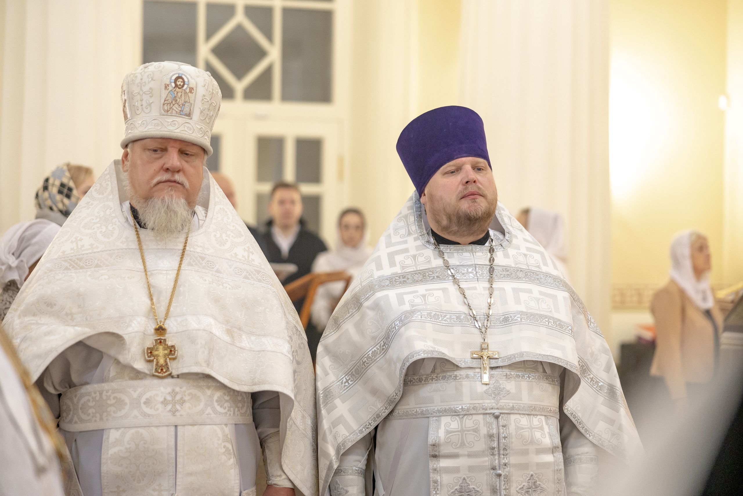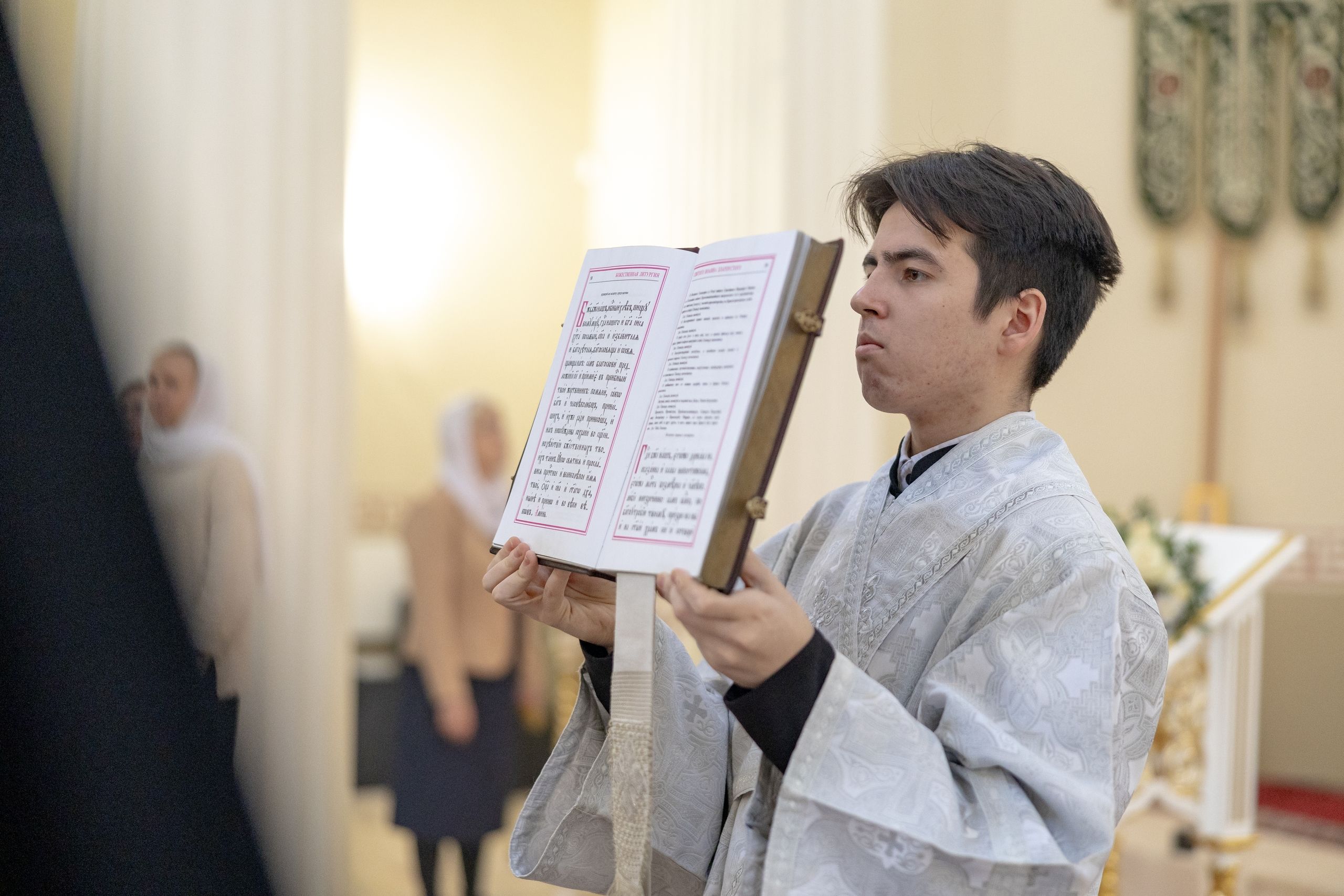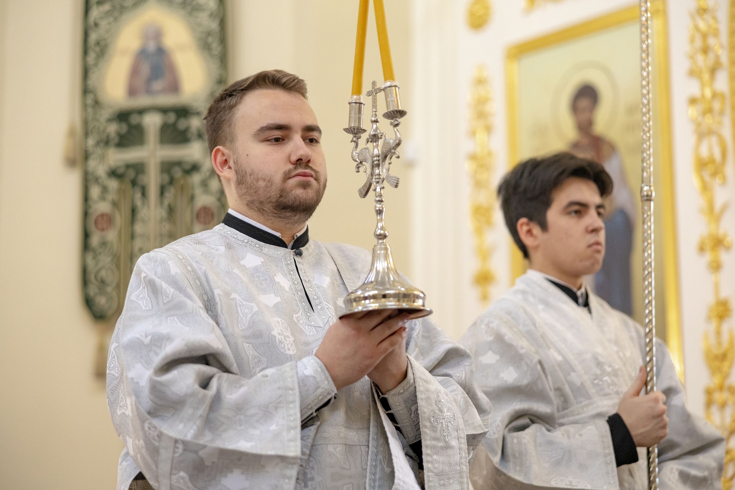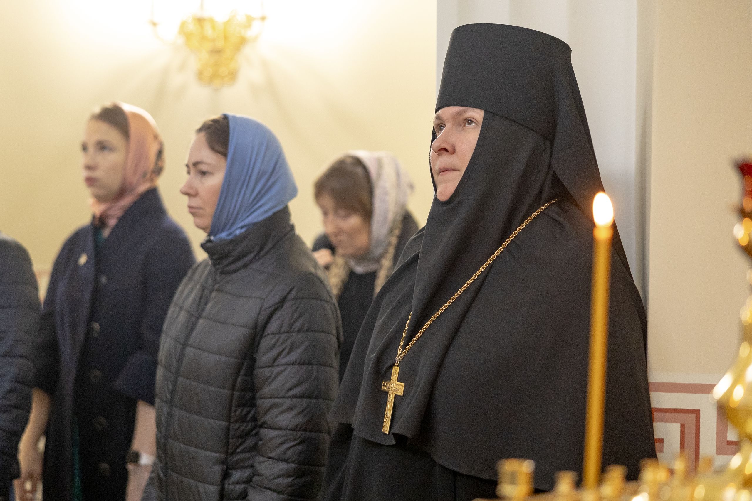 Песнопения исполнил архиерейский смешанный хор под управлением Марины Литвиненко. На мирной и сугубой ектениях были вознесены молитвы о Российском воинстве и о мире. За богослужением также возносились сугубые прошения об упокоении душ вождей и воинов, за веру и Отечество жизнь положивших.