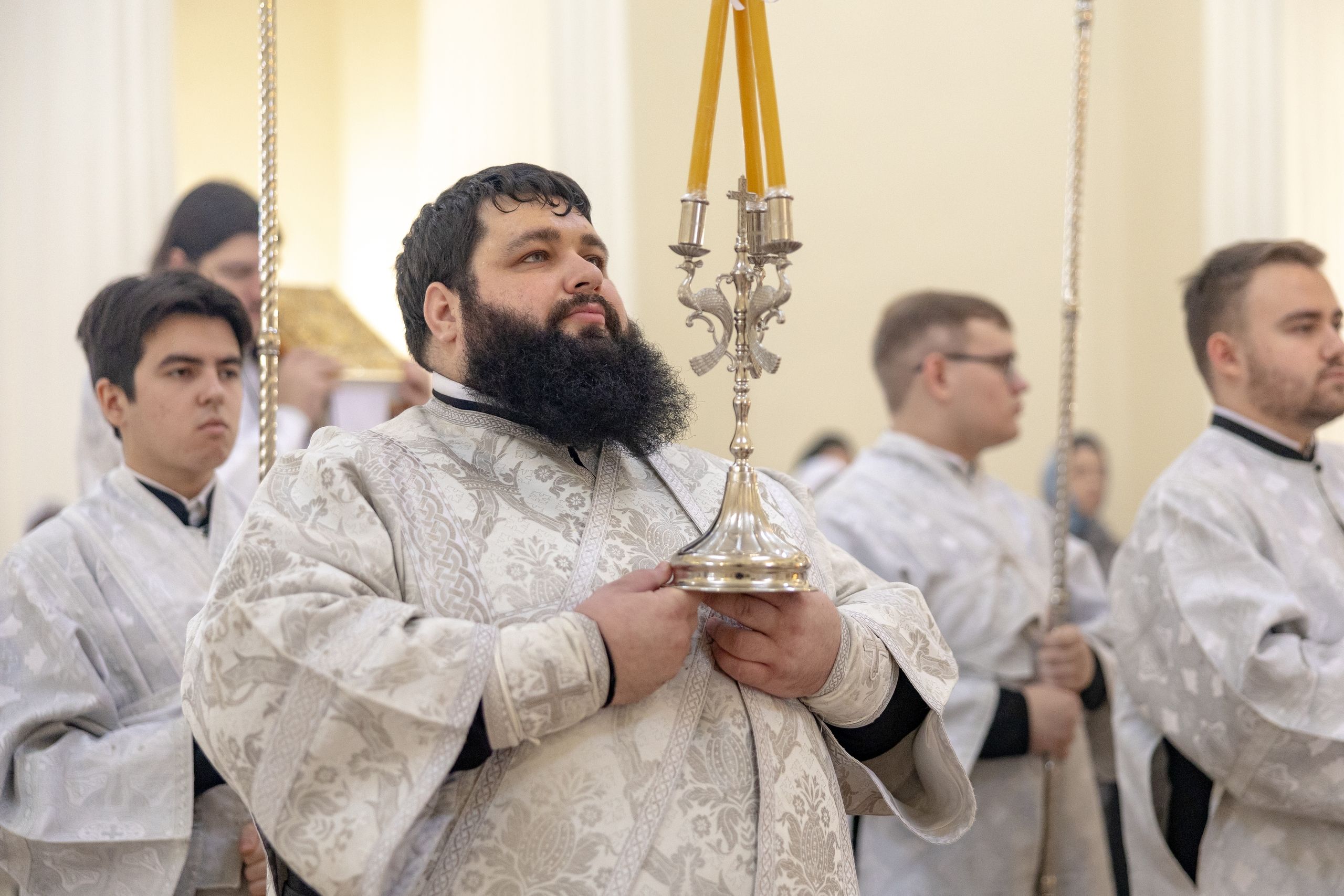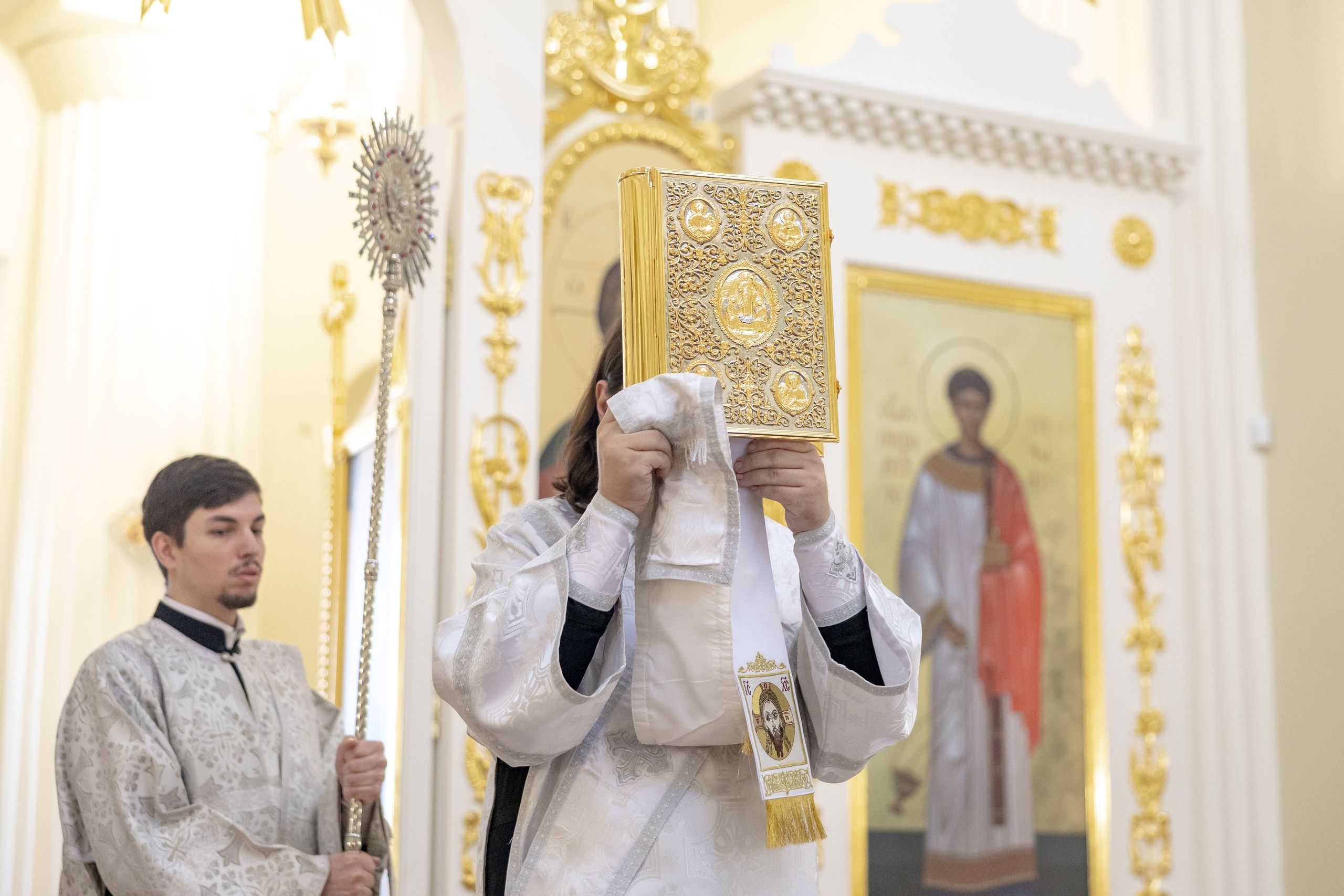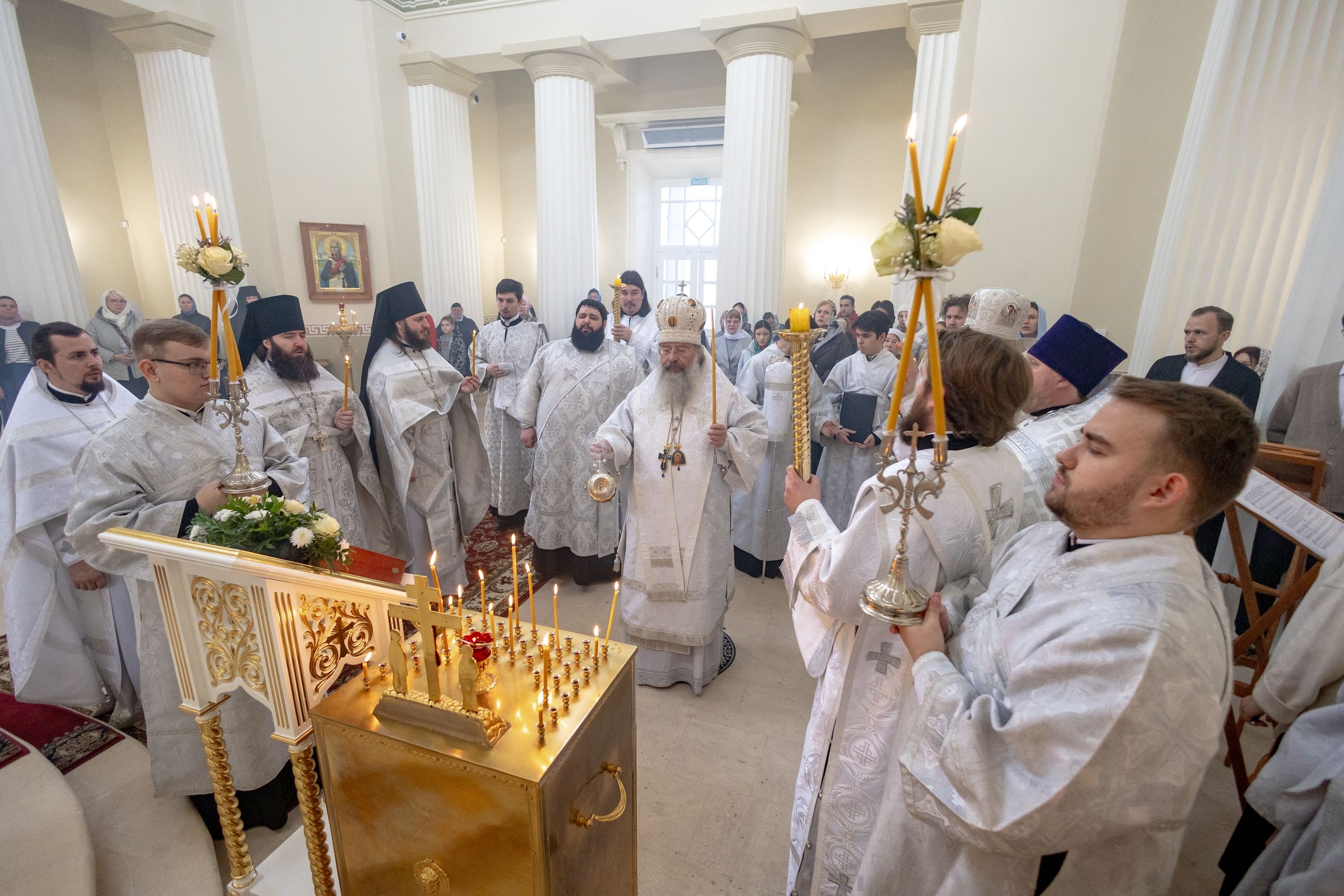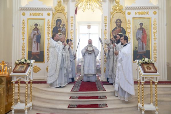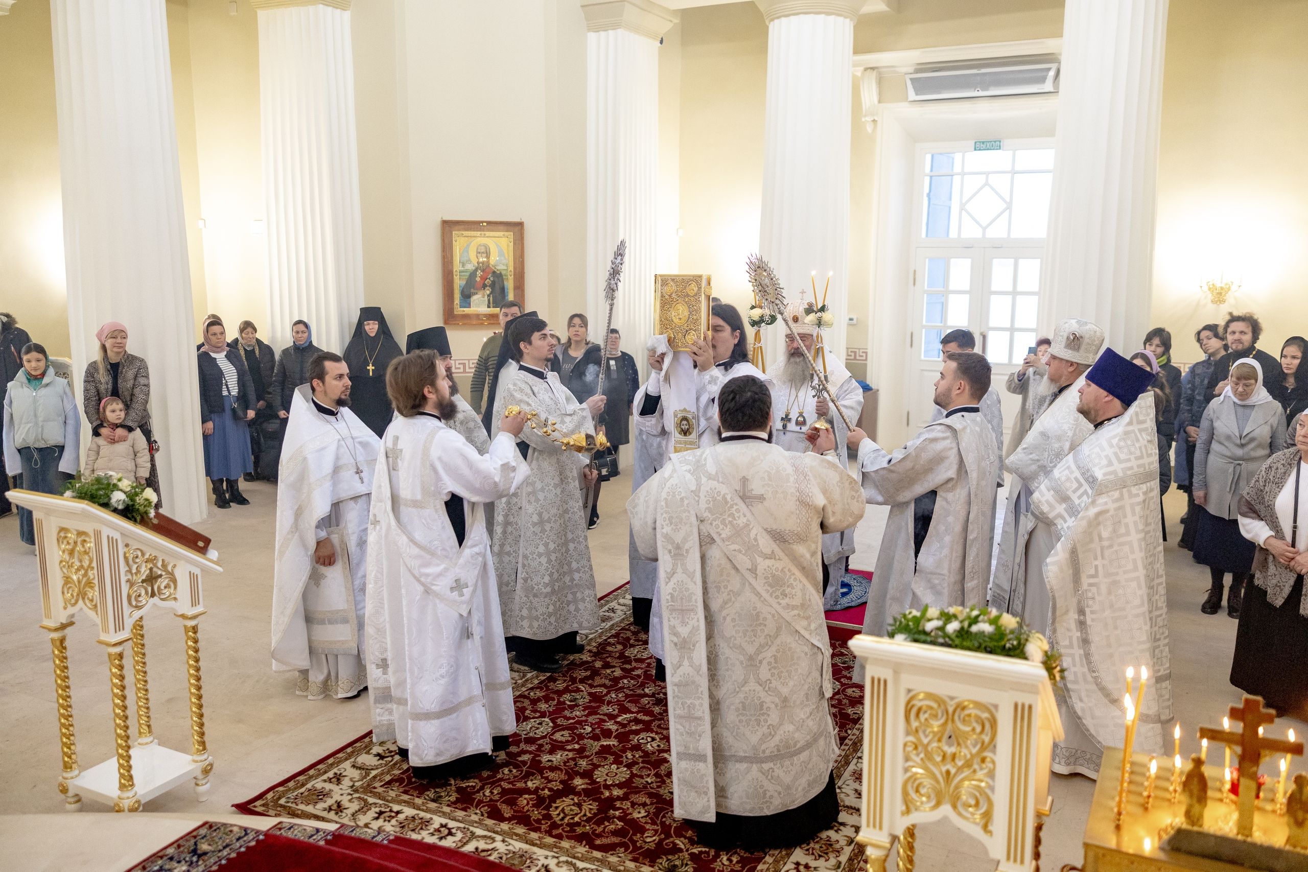 Песнопения исполнил архиерейский смешанный хор под управлением Марины Литвиненко. На мирной и сугубой ектениях были вознесены молитвы о Российском воинстве и о мире. За богослужением также возносились сугубые прошения об упокоении душ вождей и воинов, за веру и Отечество жизнь положивших.
