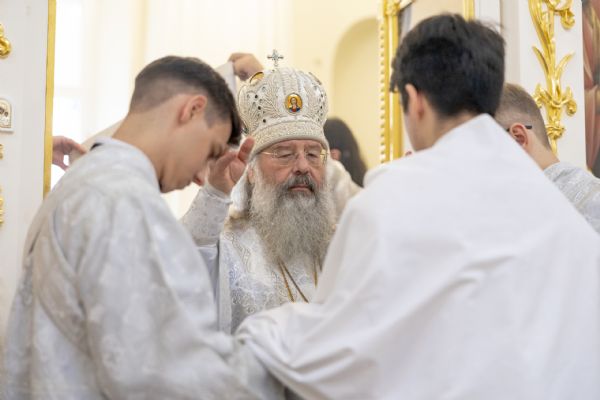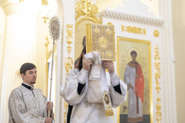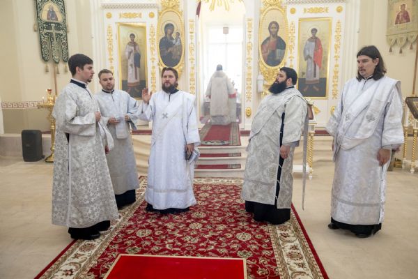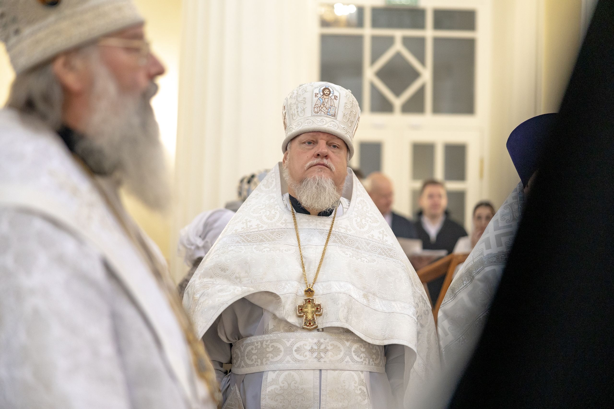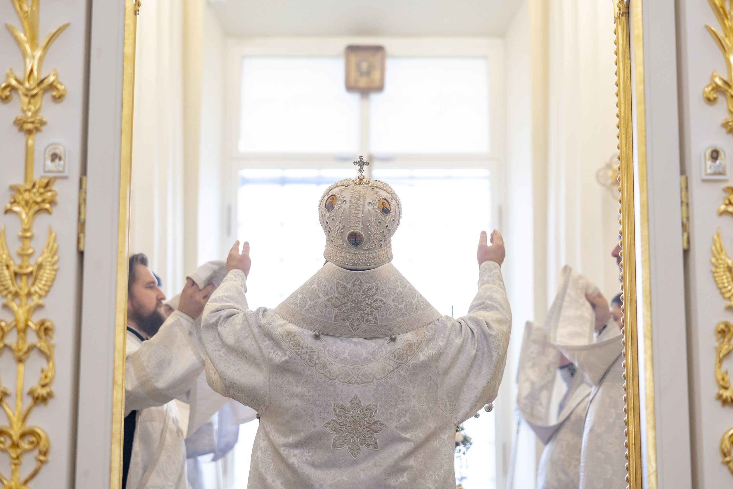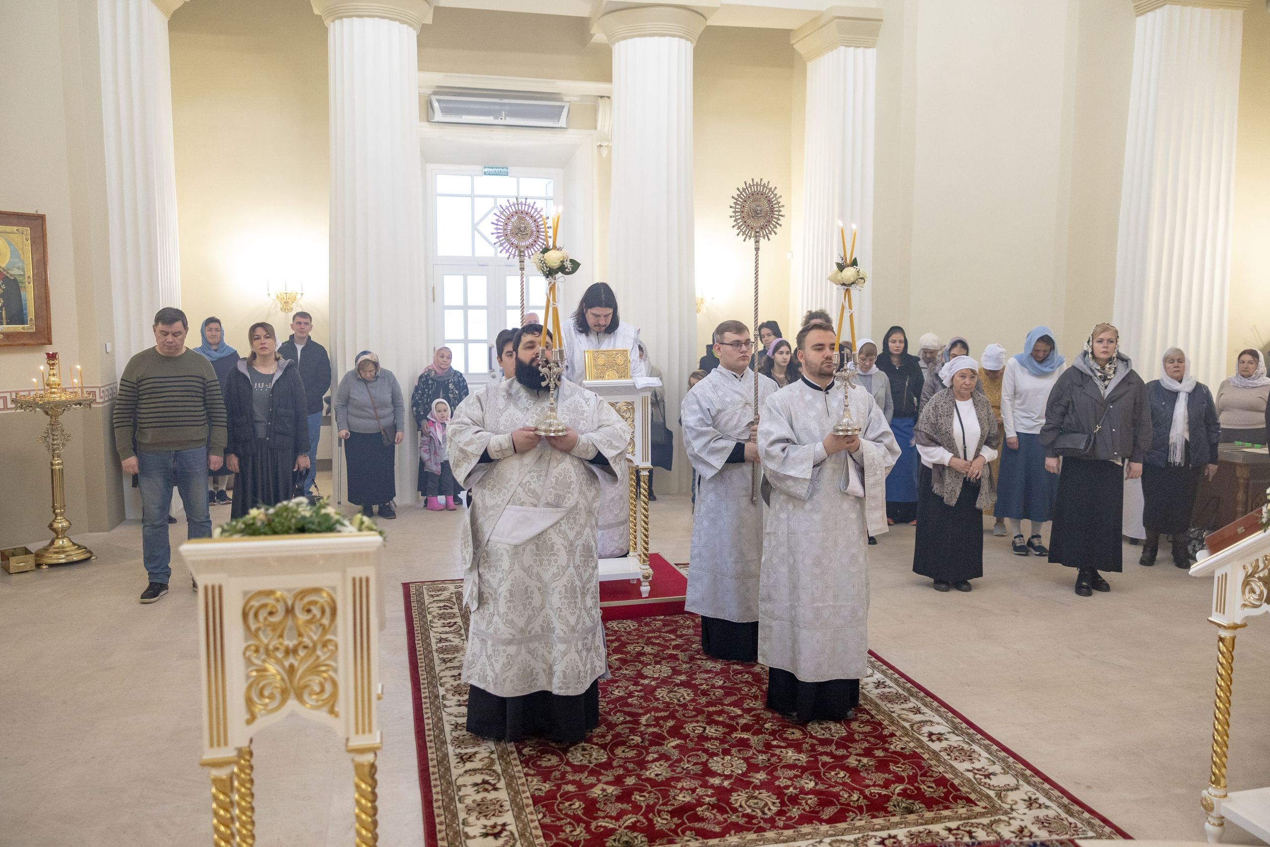 Песнопения исполнил архиерейский смешанный хор под управлением Марины Литвиненко. На мирной и сугубой ектениях были вознесены молитвы о Российском воинстве и о мире. За богослужением также возносились сугубые прошения об упокоении душ вождей и воинов, за веру и Отечество жизнь положивших.