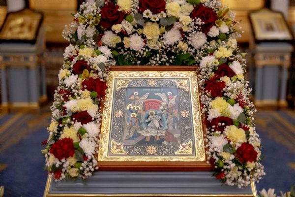 Всех вас поздравляю с воскресным днем и с праздником в память обновления храма великомученика Георгия Победоносца в Лидде – городе, неподалеку от Иерусалима. В этот день поблагодарим Бога за возможность быть в святом храме. Спаси вас Господь, что вы сегодня собрались и помолились здесь, в доме Божией Матери.
