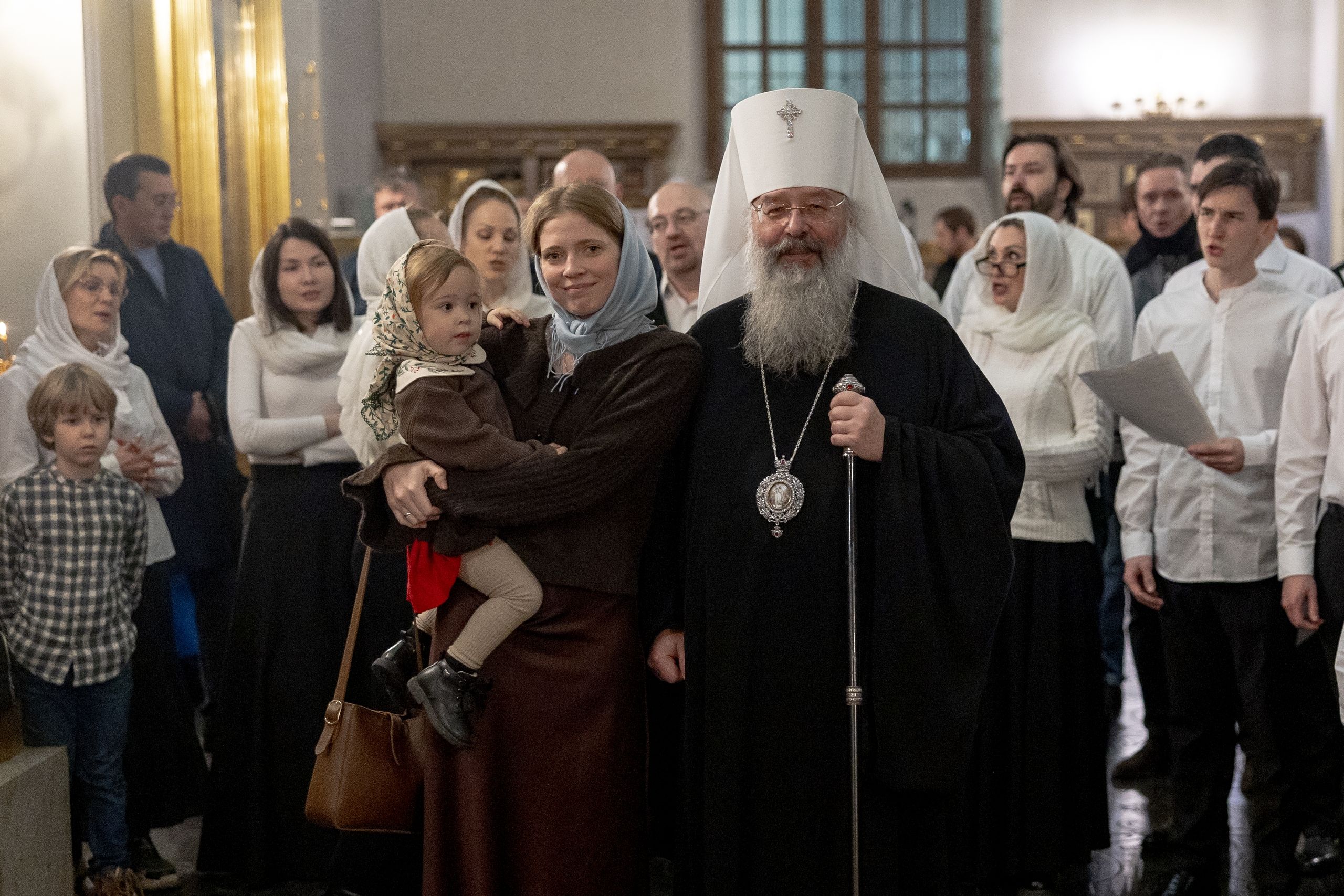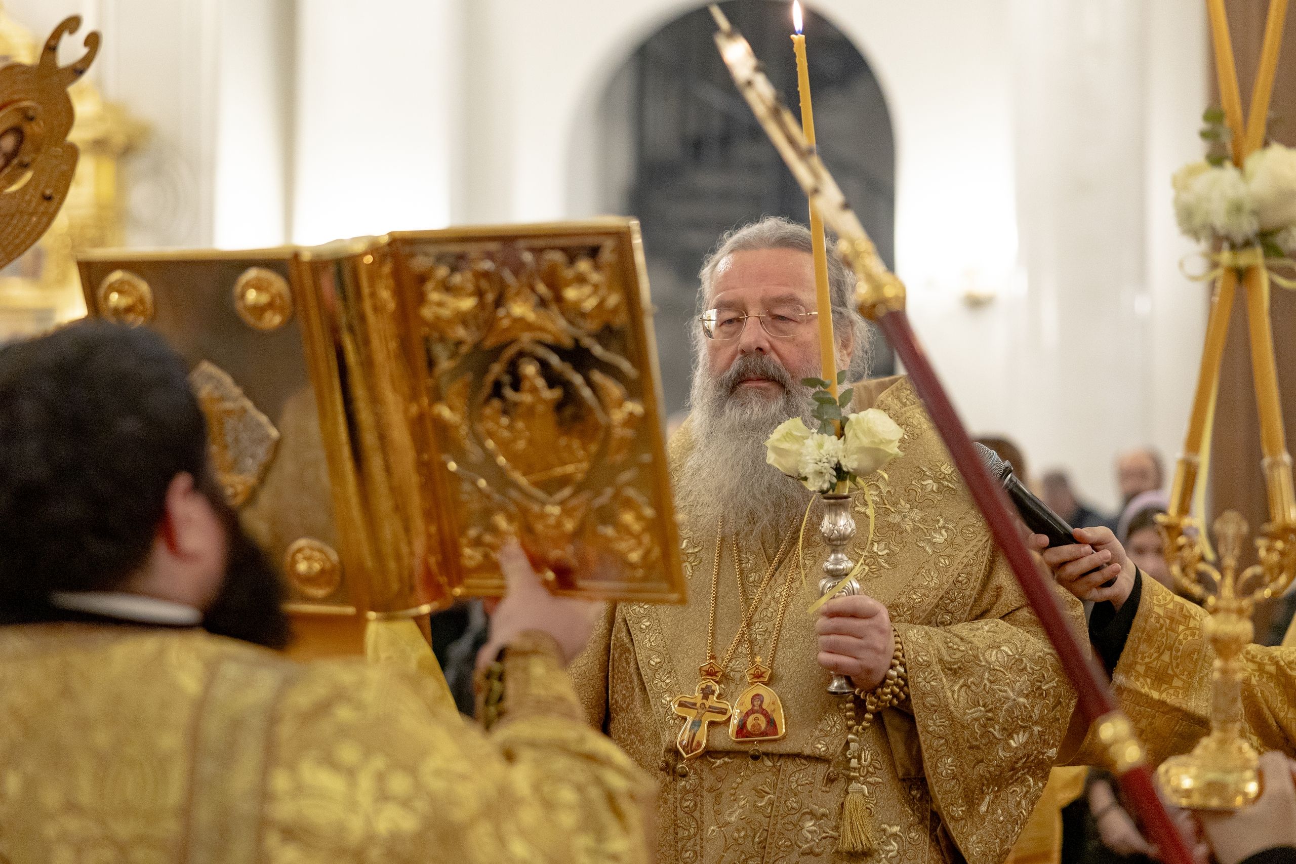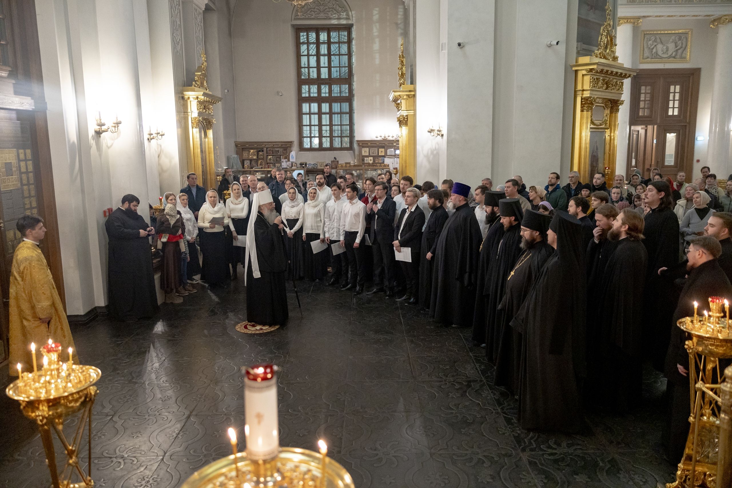Песнопения исполнили два архиерейских хора: смешанный под управлением Марины Литвиненко и мужской под управлением Дениса Рогова.