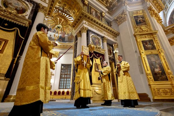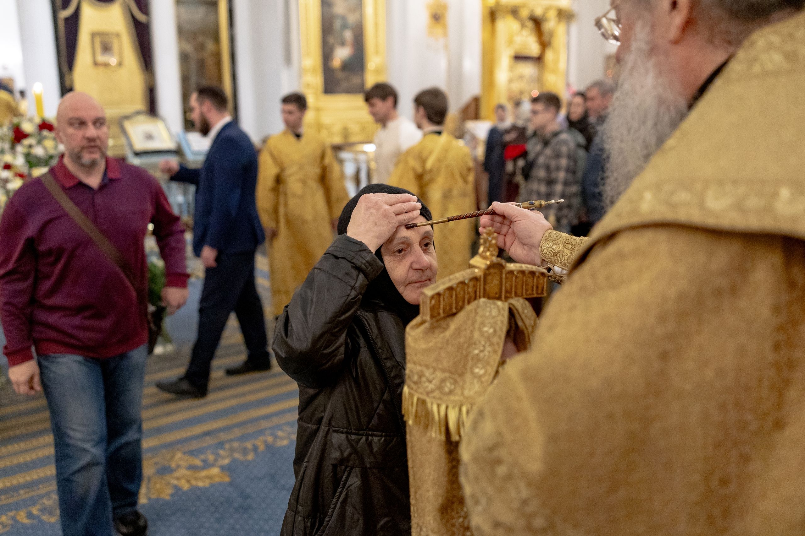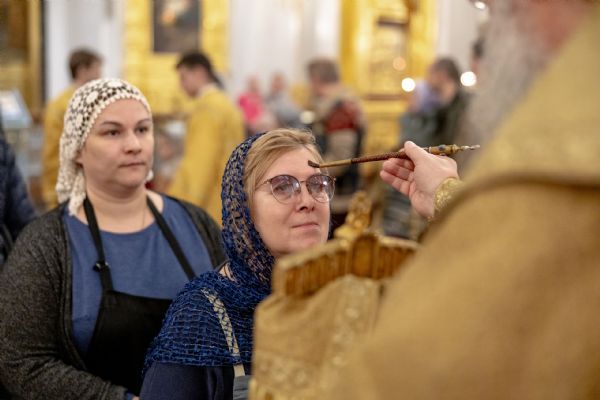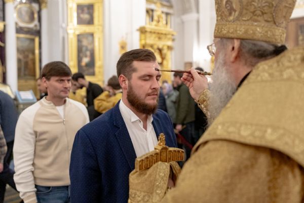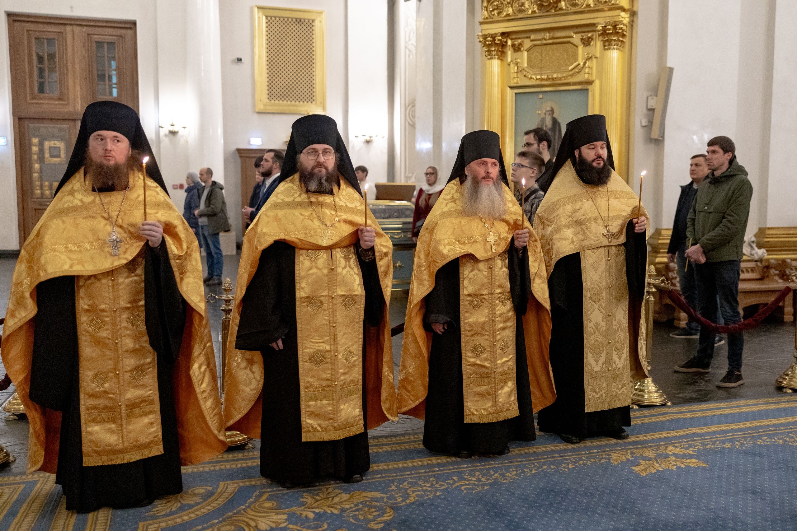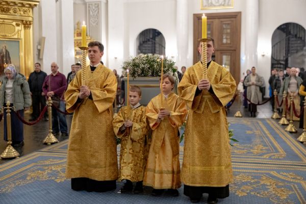 Песнопения исполнили два архиерейских хора: смешанный под управлением Марины Литвиненко и мужской под управлением Дениса Рогова.
