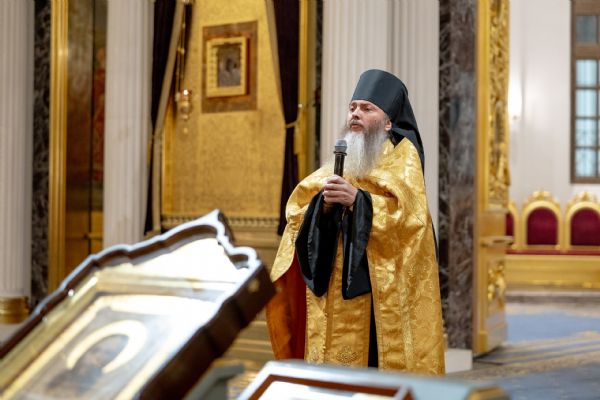 После чтения Евангелия на полиелее проповедь произнёс иеромонах Андрей (Сироткин). В завершение было совершено славление Божией Матери перед Её чтимым Казанским образом.