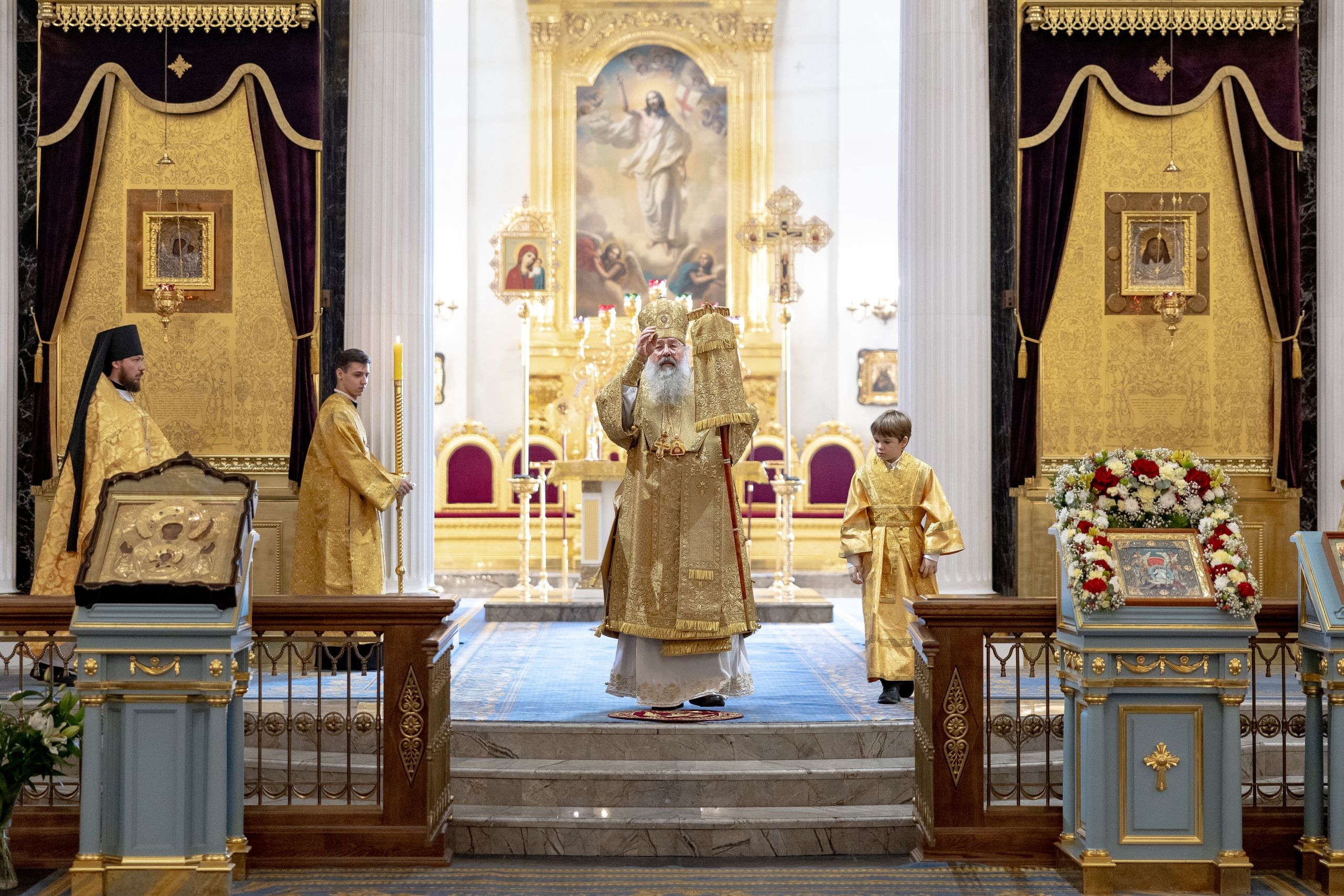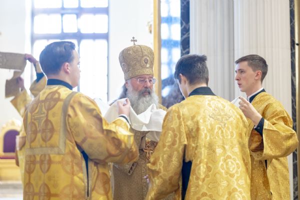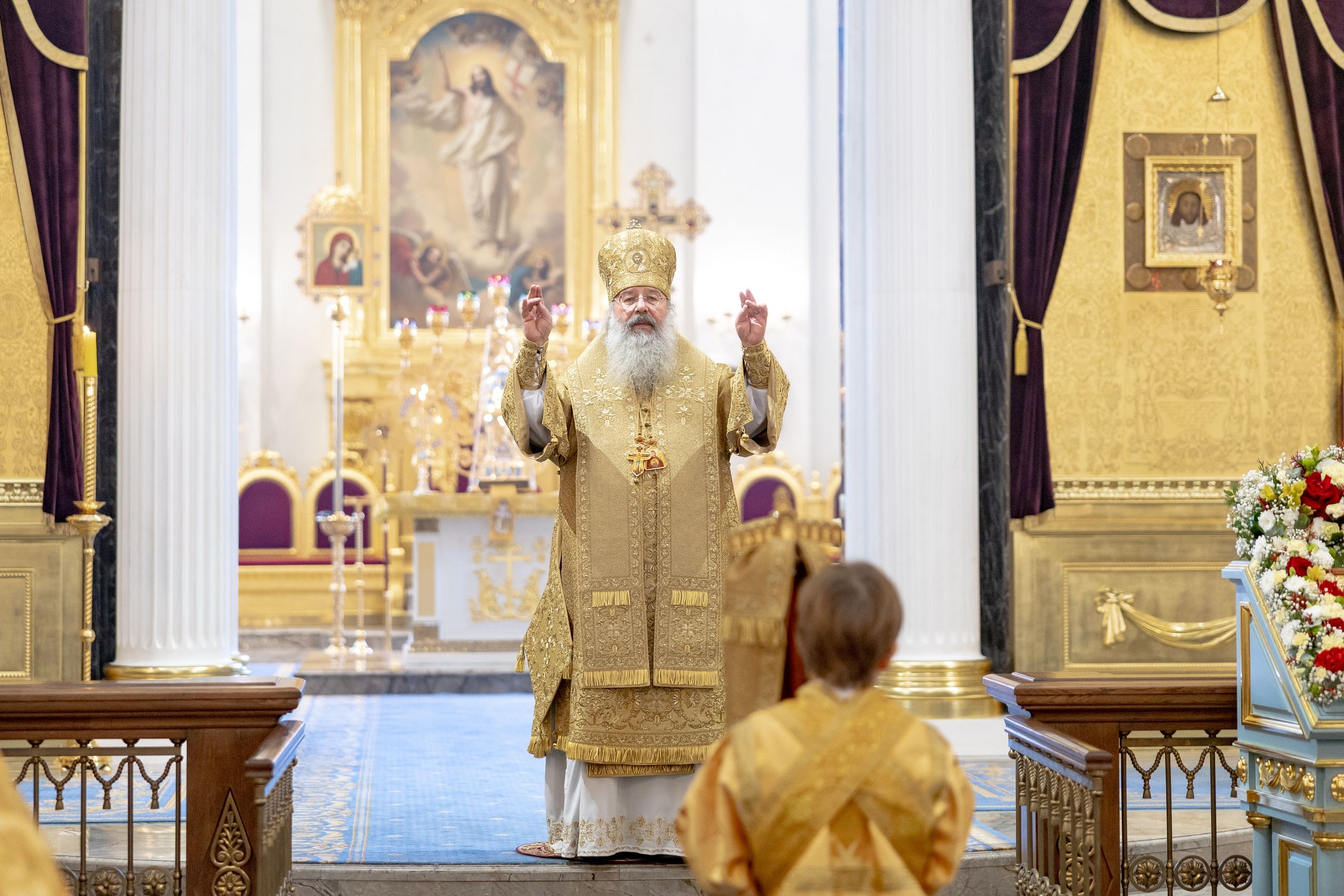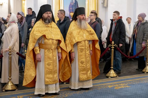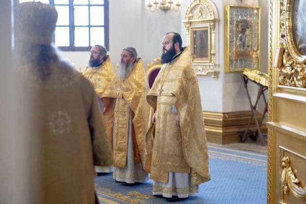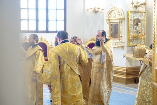 Его Высокопреосвященству сослужили наместник игумен Марк (Виленский) и братия обители в священном сане. Песнопения исполнил архиерейский смешанный хор под управлением Марины Литвиненко.